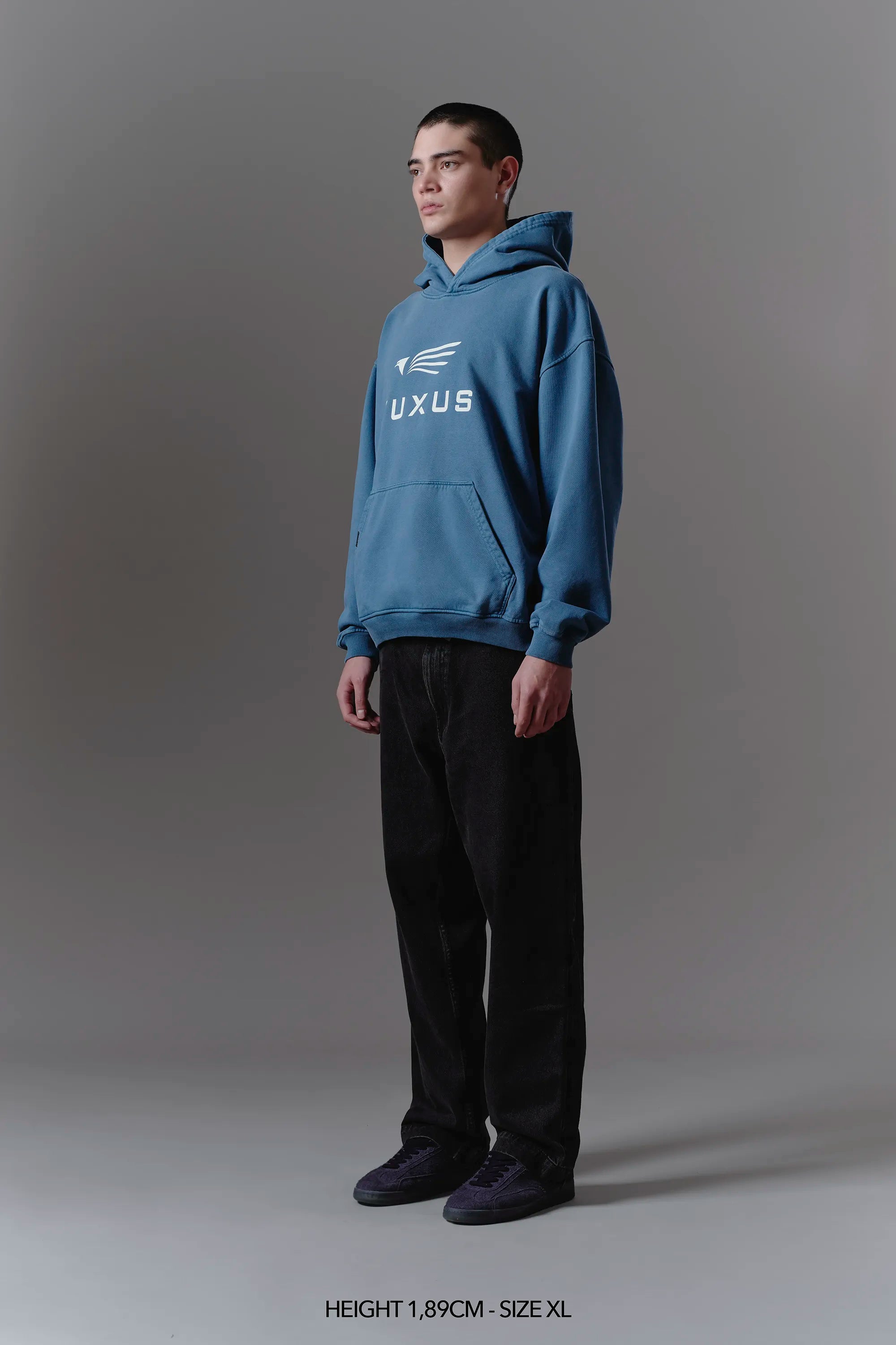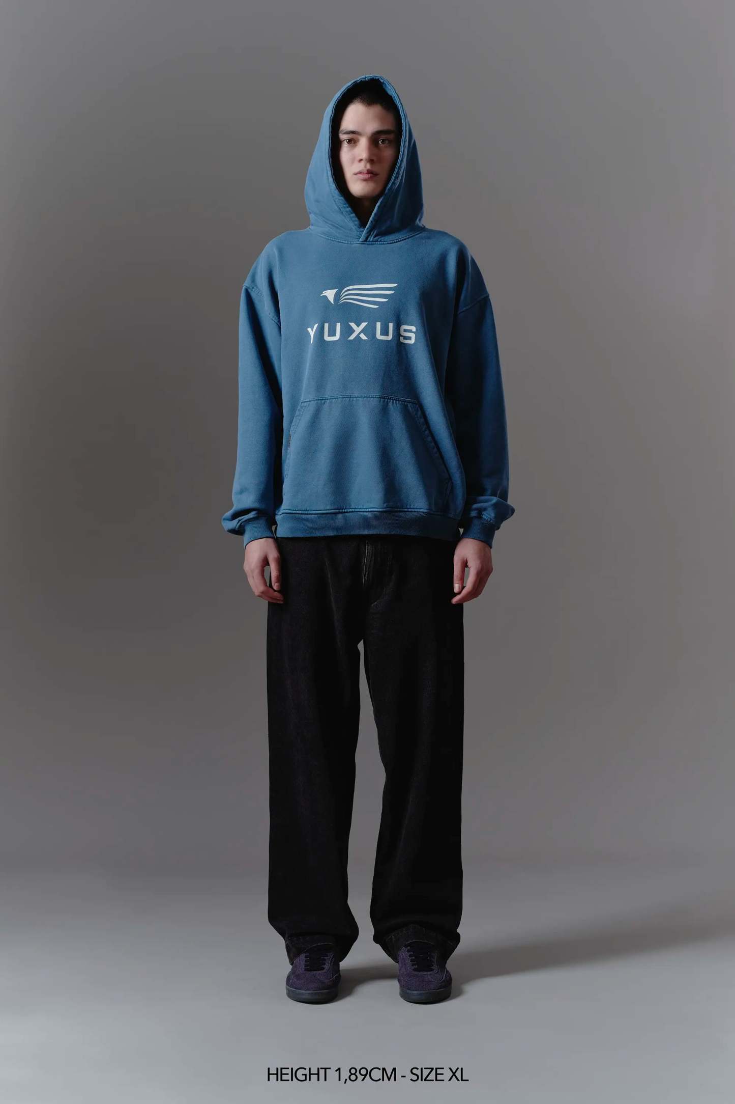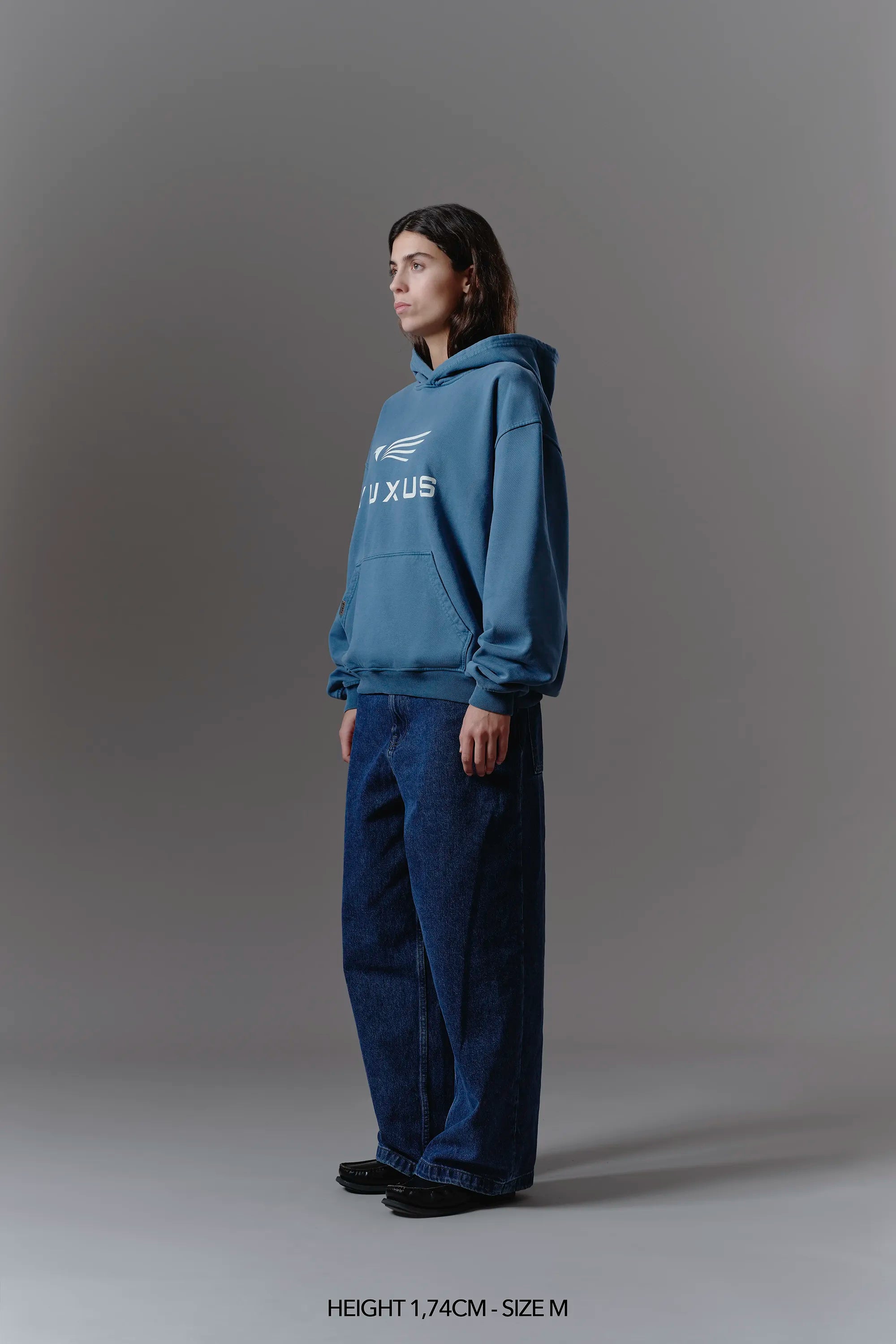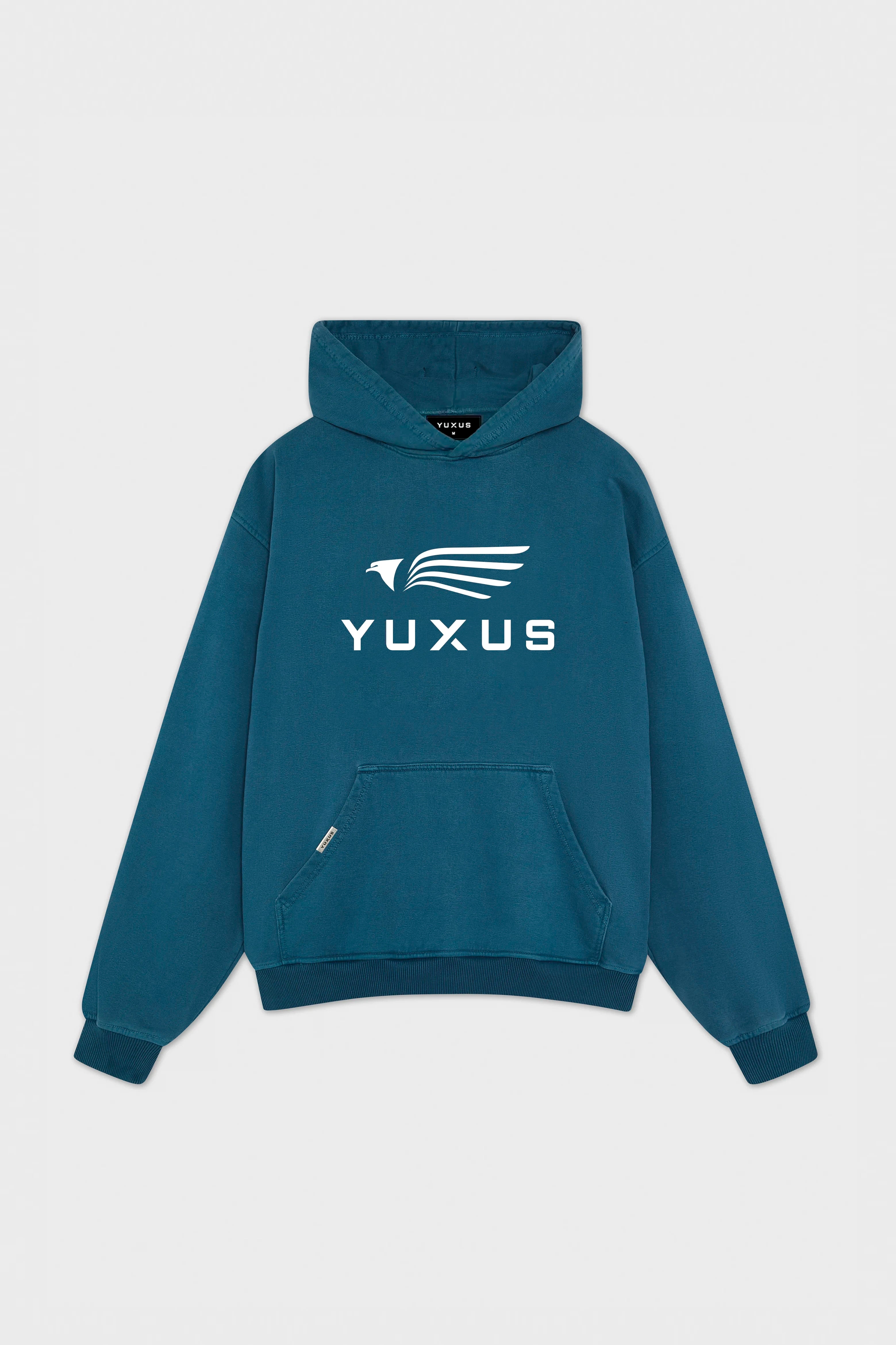 The journey begins here. Introducing the Voyager hoodie in basil blue, designed with a global vision to accompany you anywhere. Crafted from premium materials with oversized embroidered details and vibrant tones, this piece redefines functionality and style.