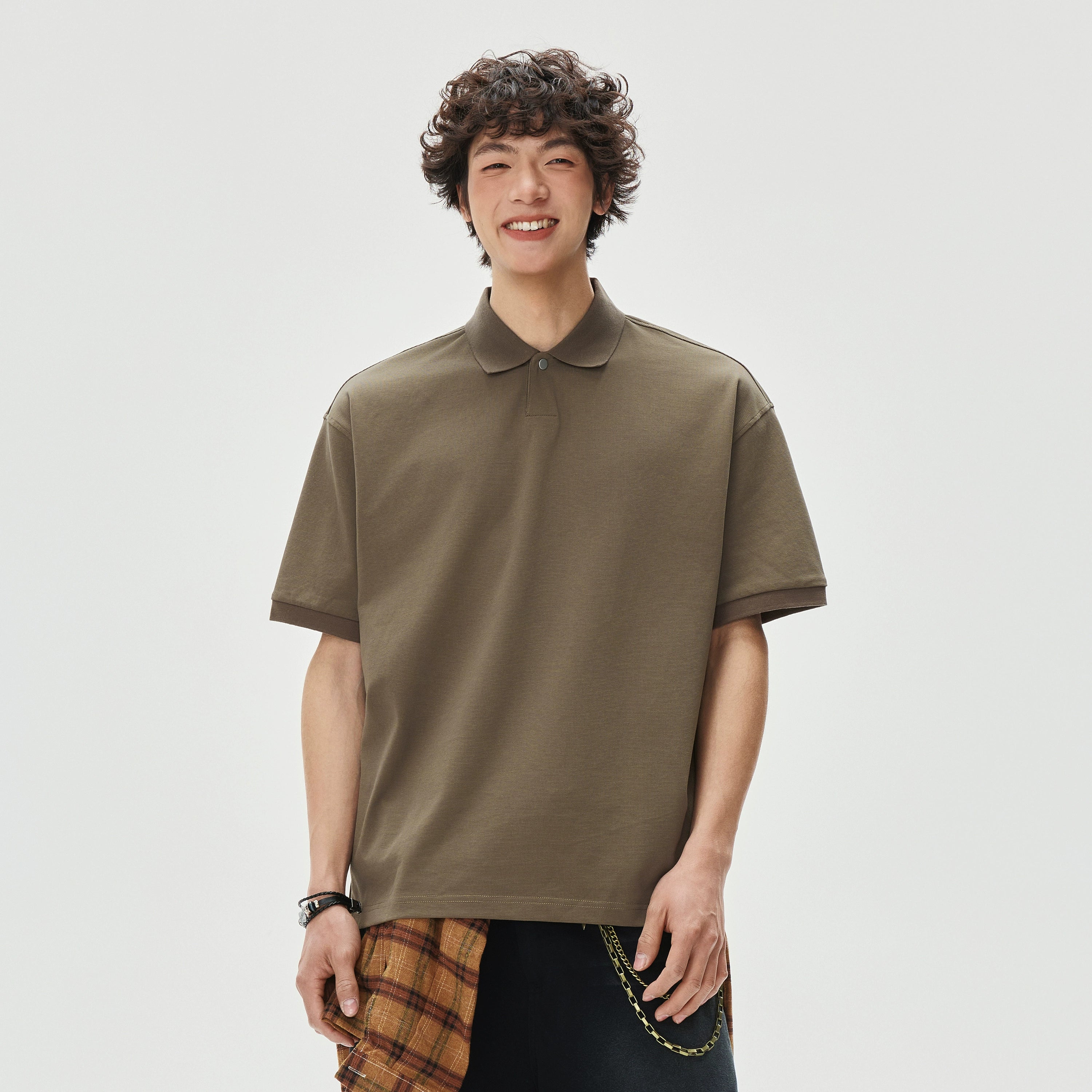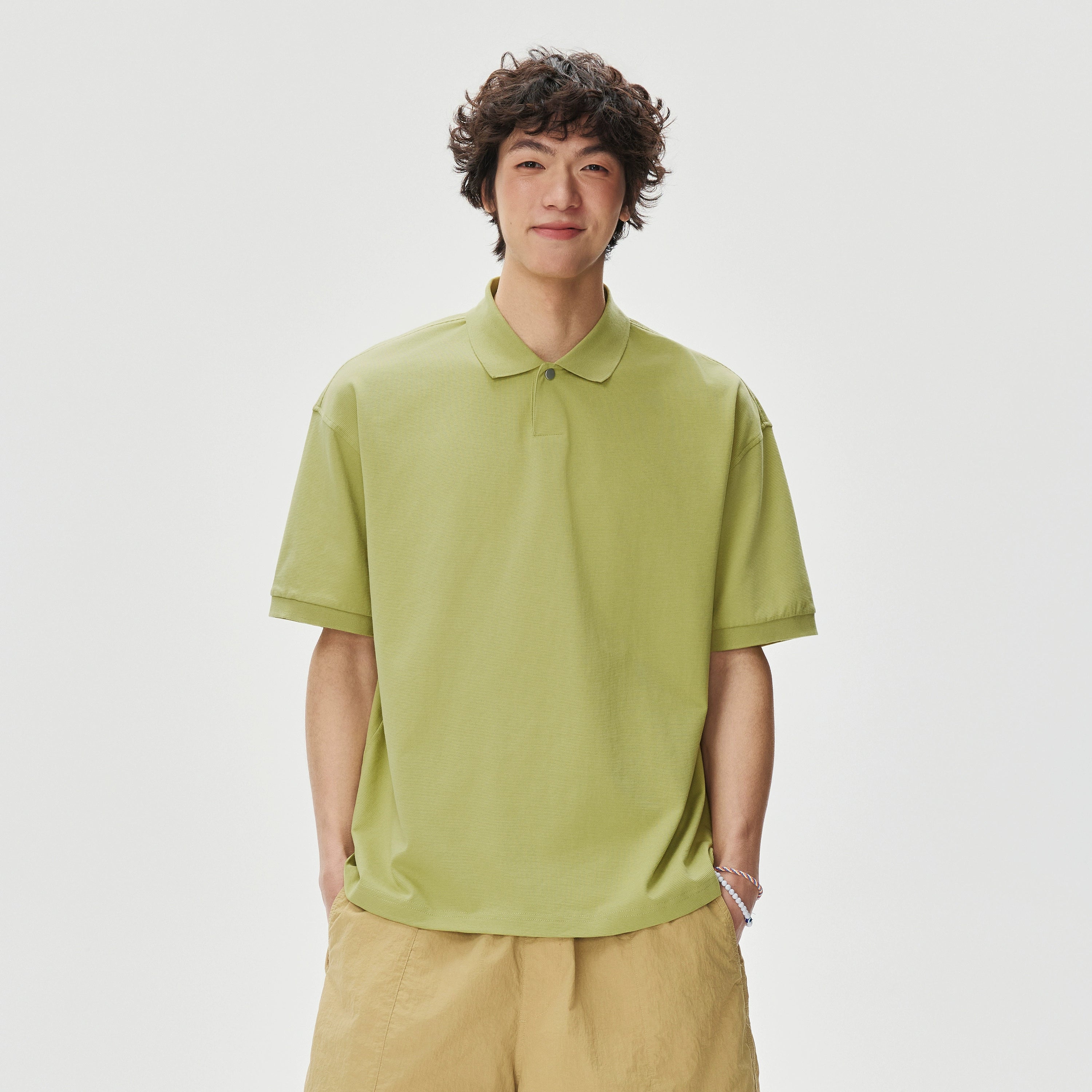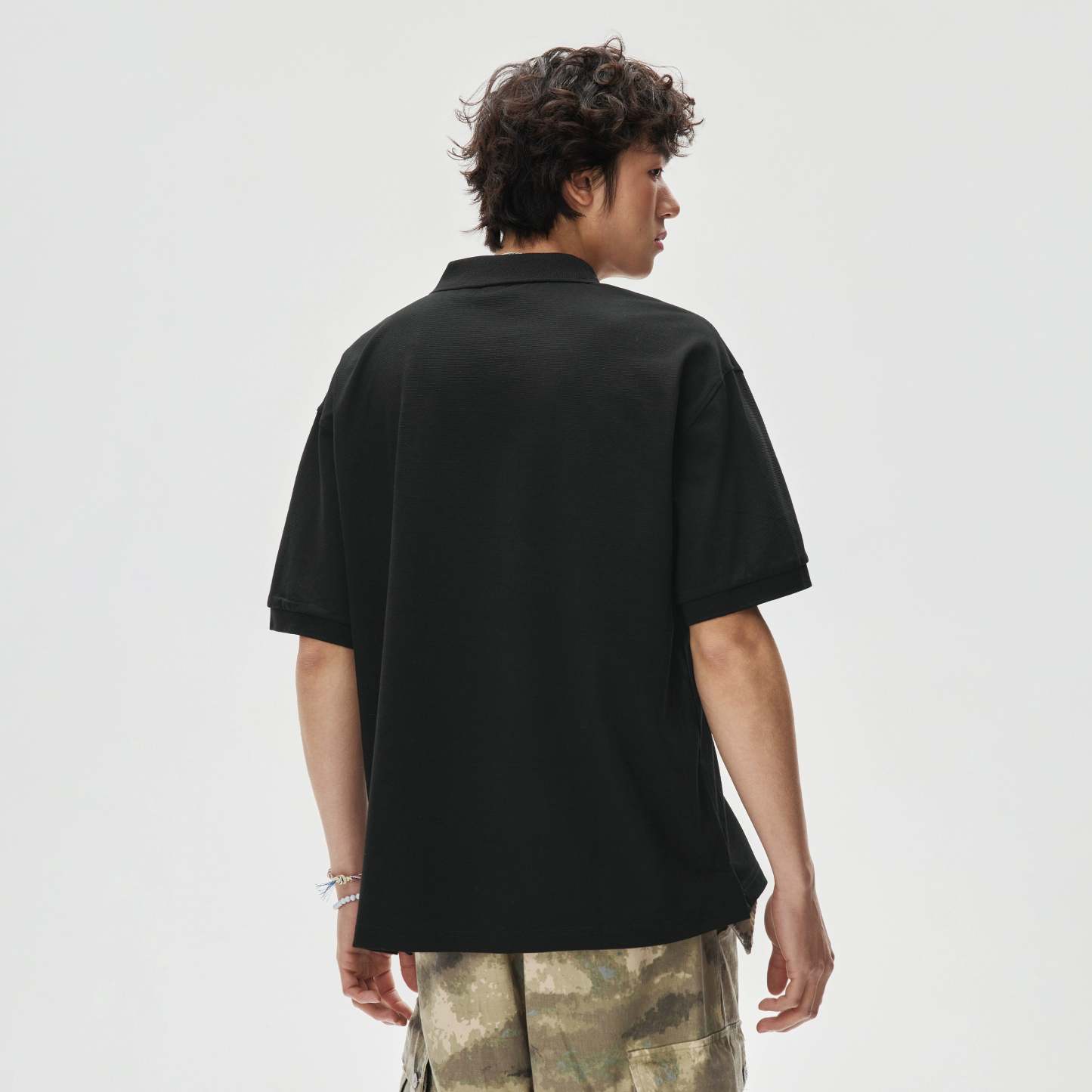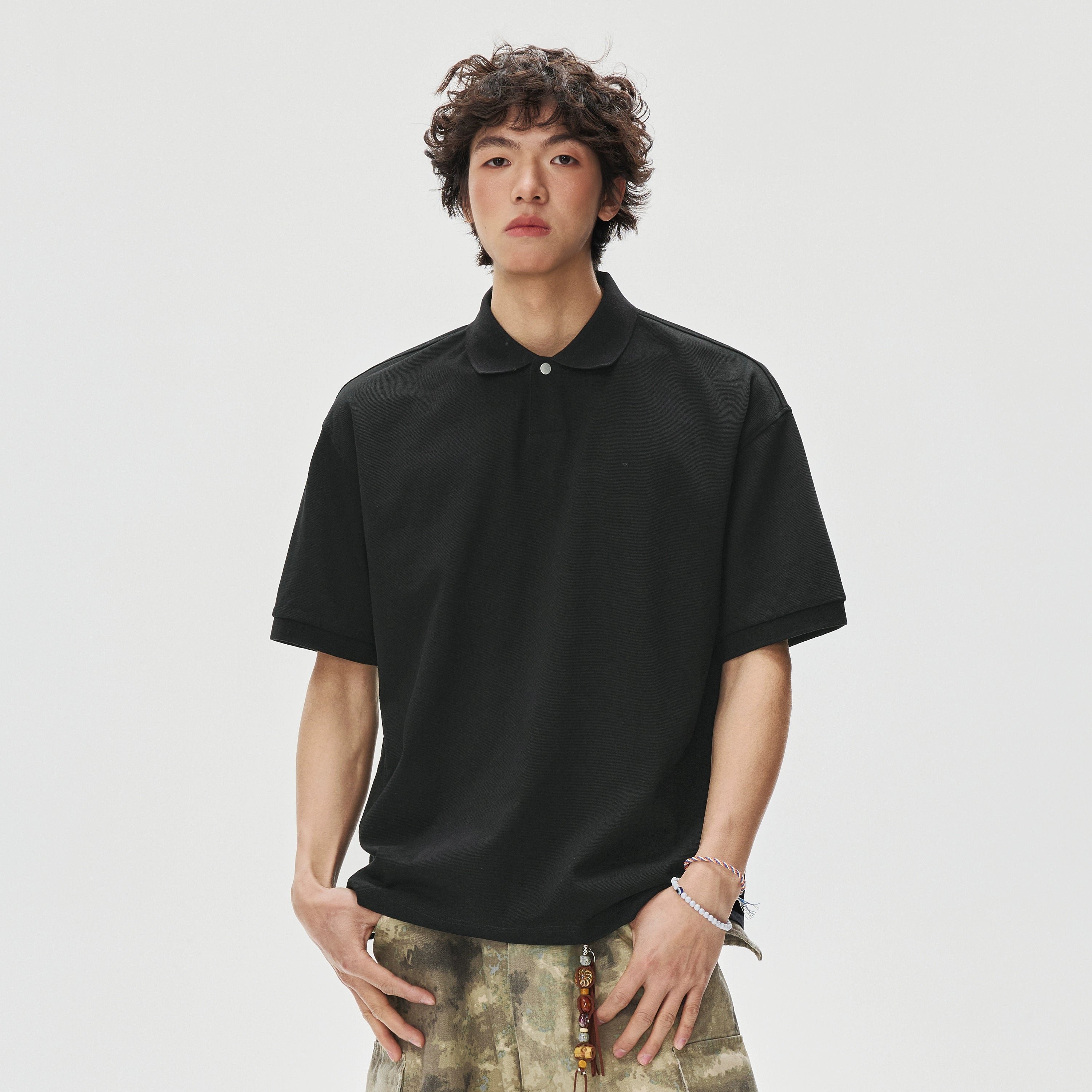 The Boxy-Fit Short Sleeve Polo Shirt brings a relaxed silhouette with a crisp edge, offering an effortless blend of structure and ease.