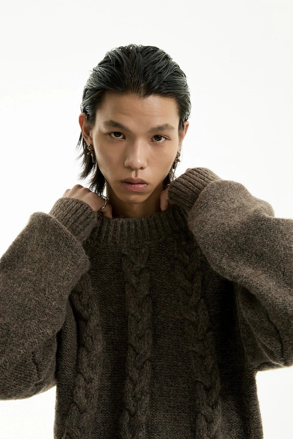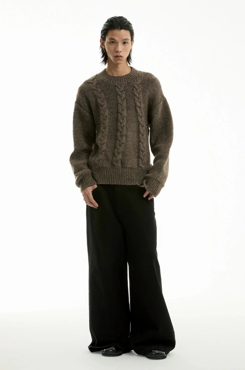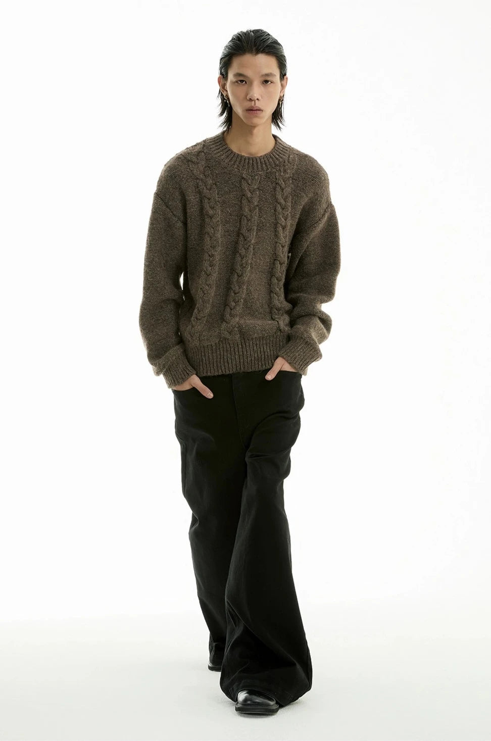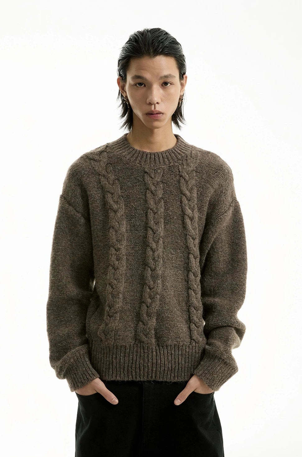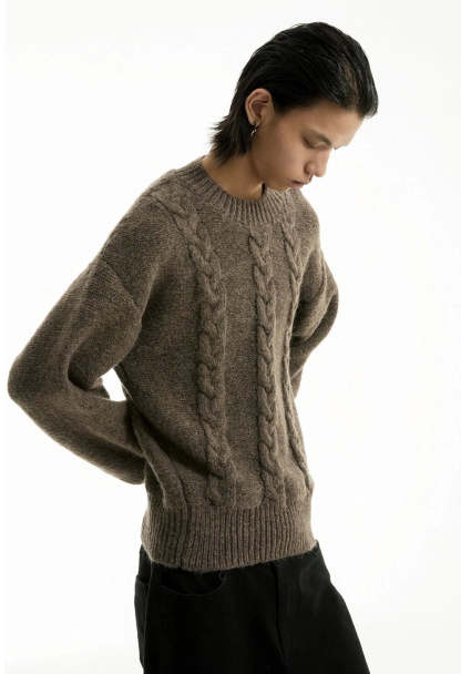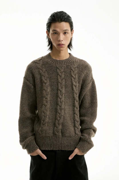 Discover understated sophistication with our Cable Knit Crewneck Sweater, embodying an edgy aesthetic fused with a touch of professional poise.