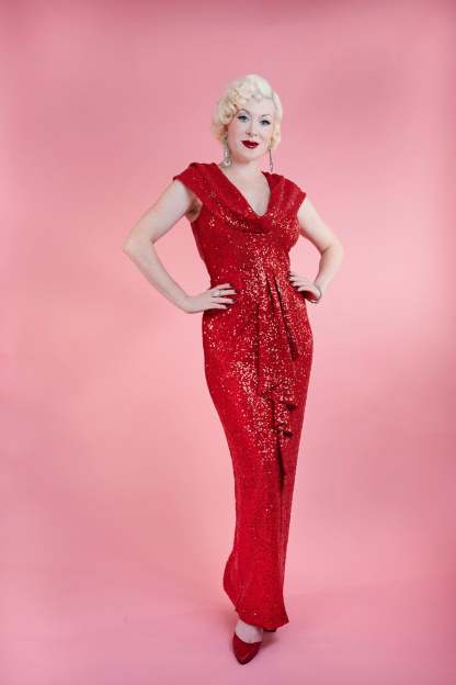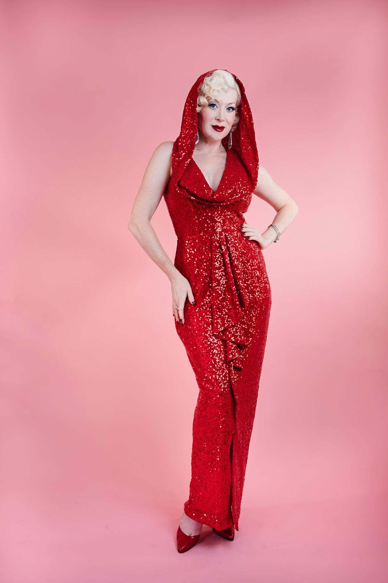 Gilded perfection is yours in this show-stopping Cairo Sunset Hooded Dress. A seductive cowl neckline cascades effortlessly, while the hood adds a hint of mystery that’s oh-so-alluring. Made from a stretchy metallic sequin blend, this dress is designed to hug your figure while shimmering under every light. Waist to hem aprox. 40-42in