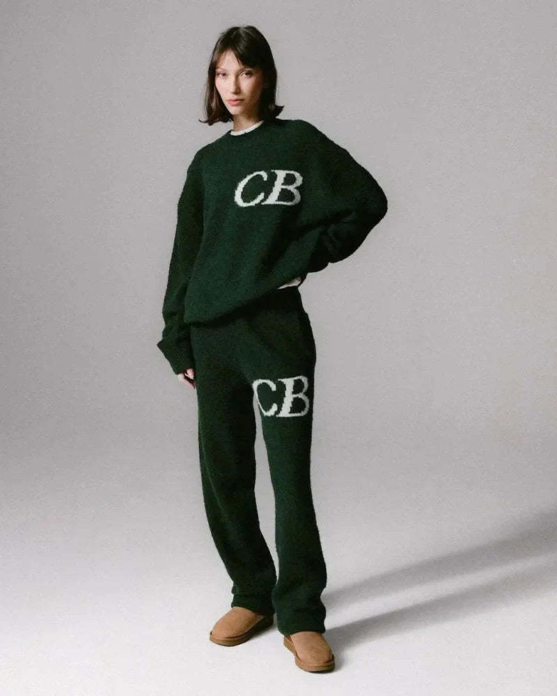 Crafted from ultra-soft heavyweight knit, this set includes a relaxed sweater and matching joggers, both featuring bold “CB”. The fluffy texture ensures all-day warmth and comfort, while the clean minimal look makes it perfect for lounging or stepping out.