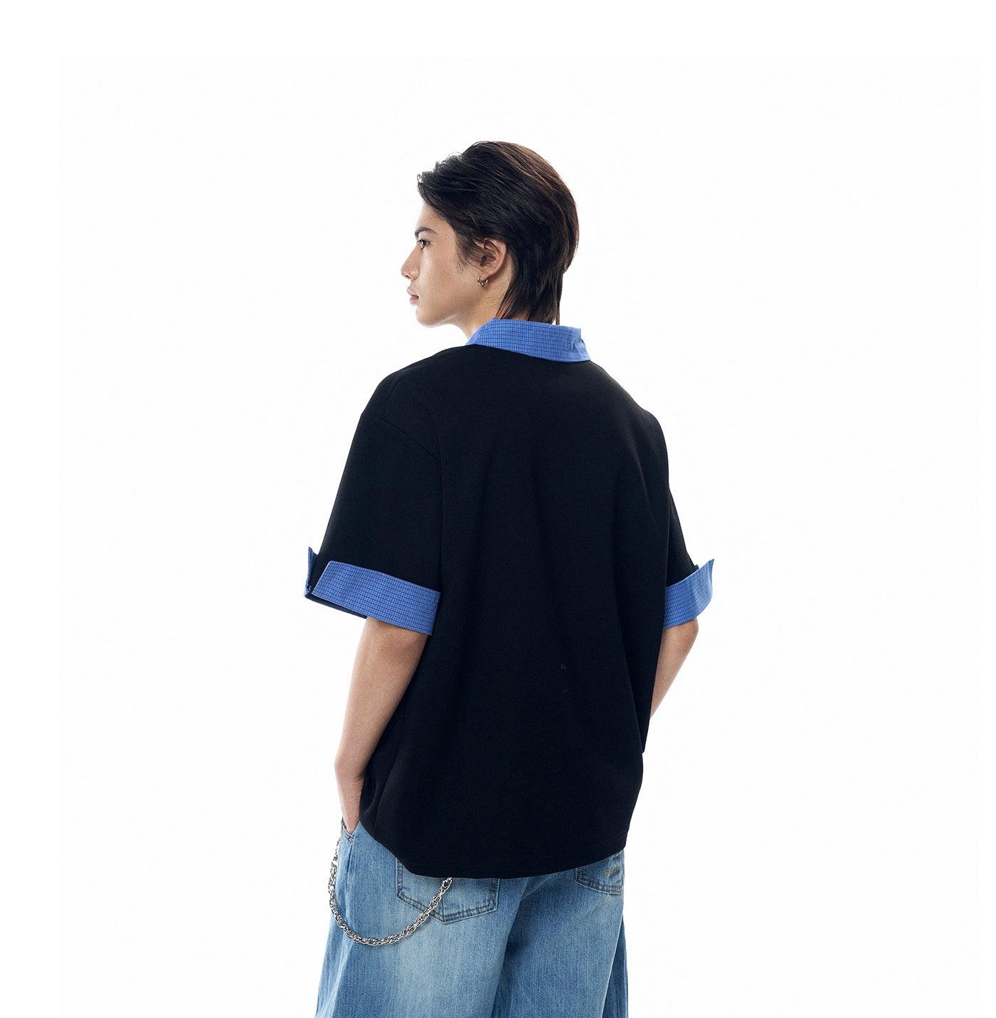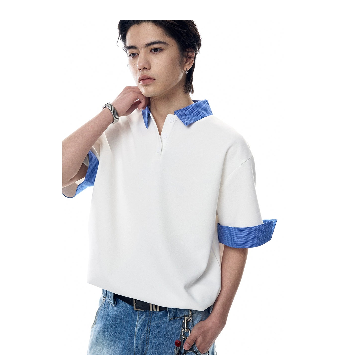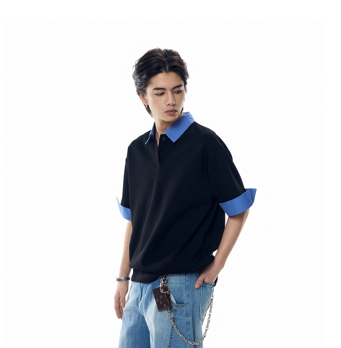 It's a clean, confident essential made for everyday rotation without trying too hard. Built from a soft cotton-poly blend, the fabric feels smooth and lightweight while holding shape. The contrasting plaid collar and sleeve cuffs break from the standard, giving it that edge without overdoing it.