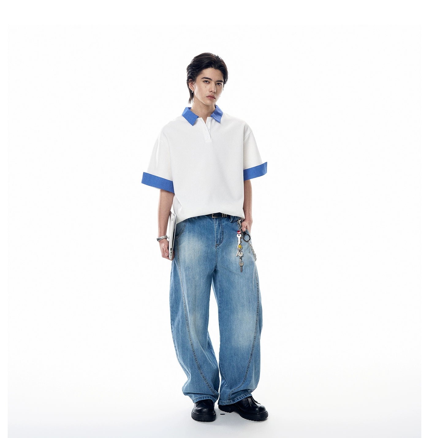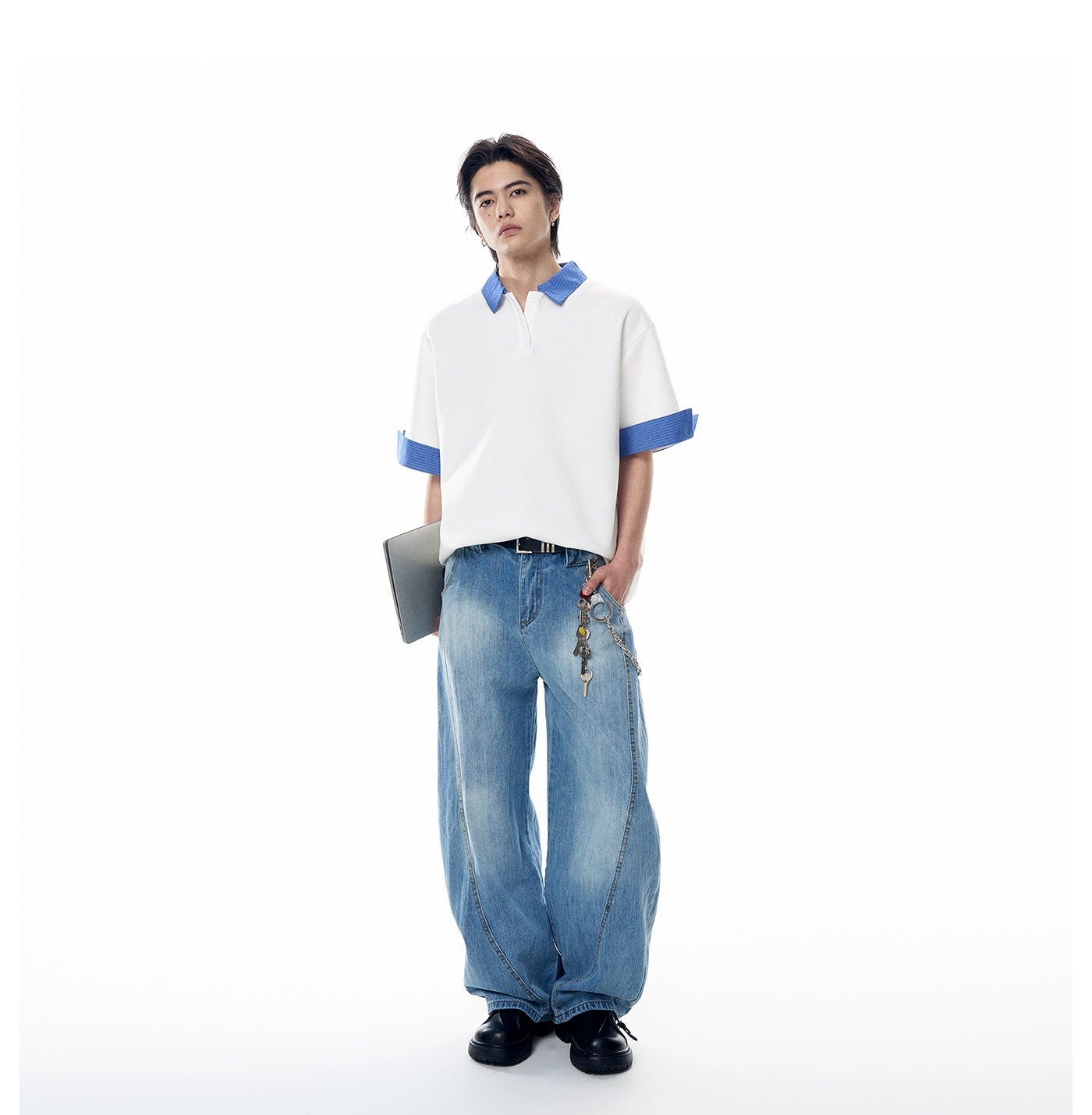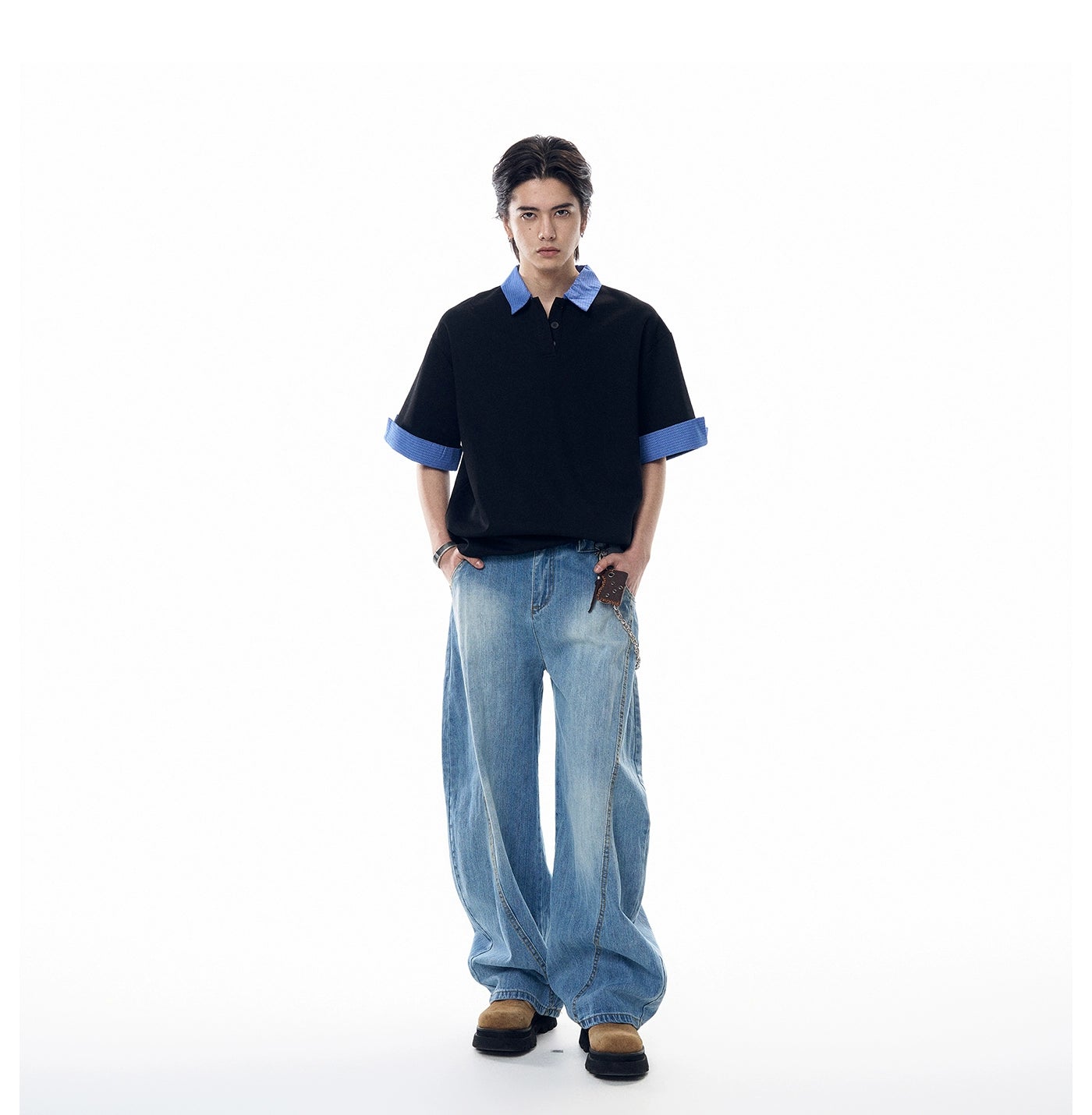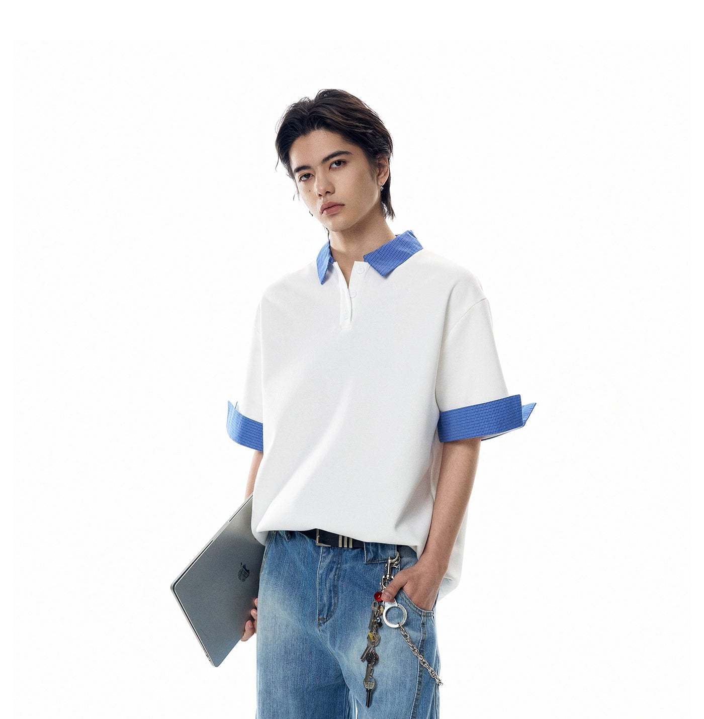 It's a clean, confident essential made for everyday rotation without trying too hard. Built from a soft cotton-poly blend, the fabric feels smooth and lightweight while holding shape. The contrasting plaid collar and sleeve cuffs break from the standard, giving it that edge without overdoing it.