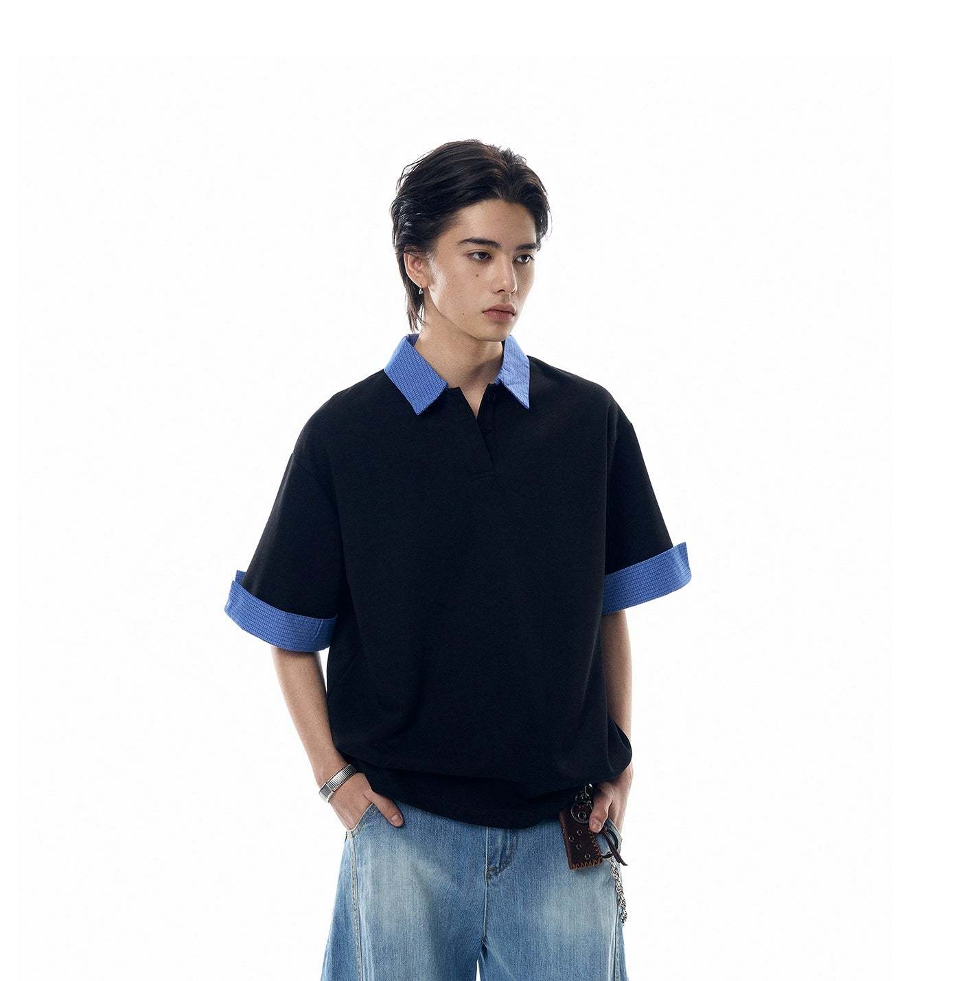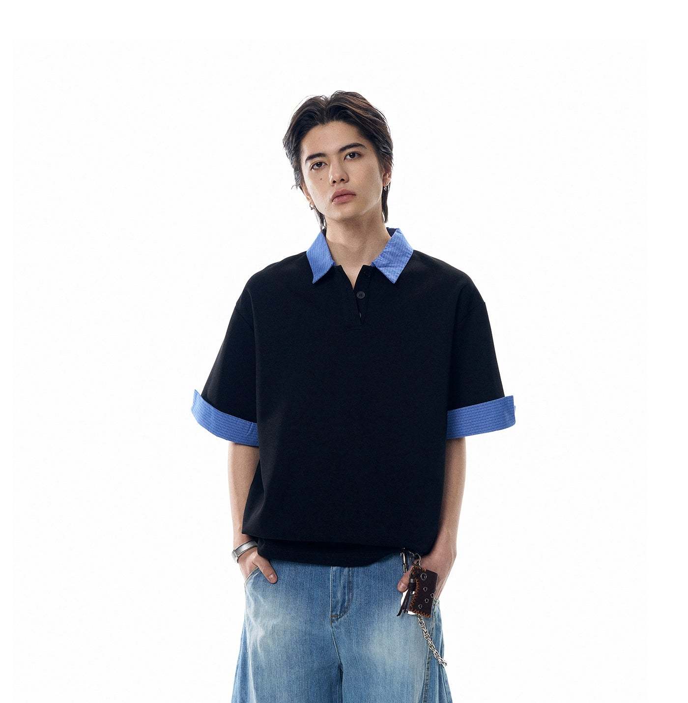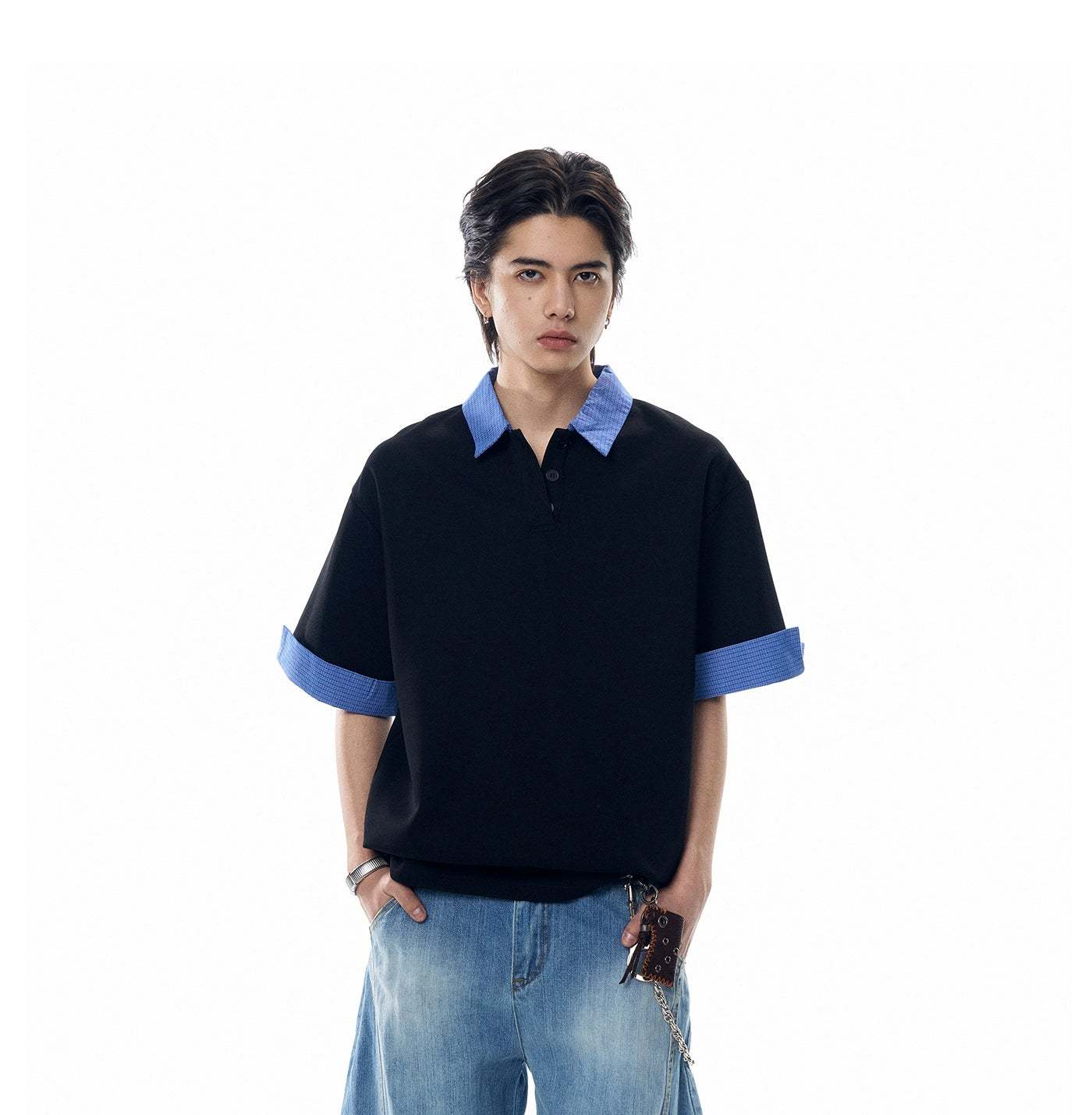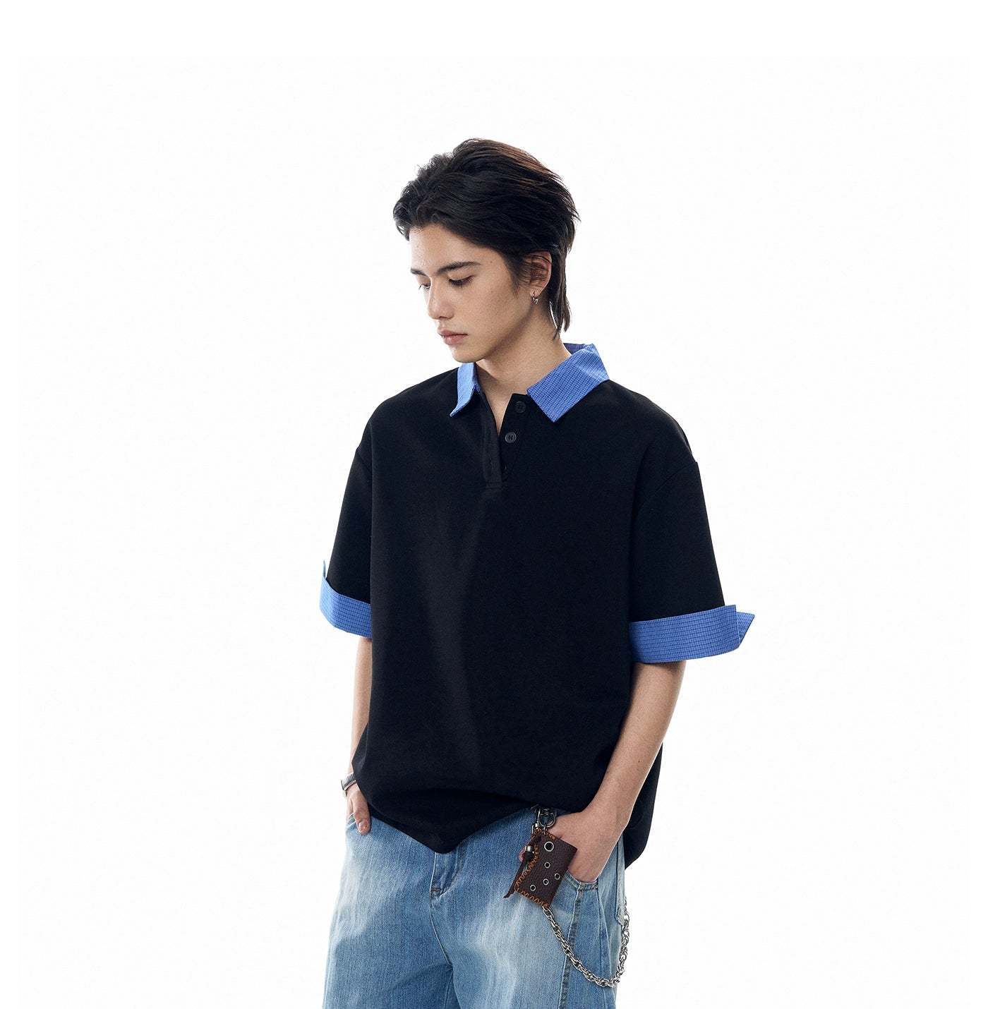 A laid-back take on the classic polo, this Contrast Plaid Collar Short Sleeve Polo Shirt brings subtle attitude with its statement collar and easy structure.