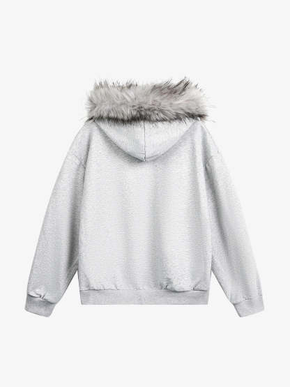 • Design Elements: Unique artistic print on the front, faux fur trim hood, half-zip closure