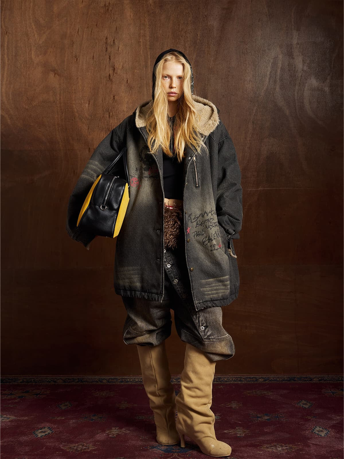 • Design Elements: Faux fur collar and cuffs, button closures, patch pockets