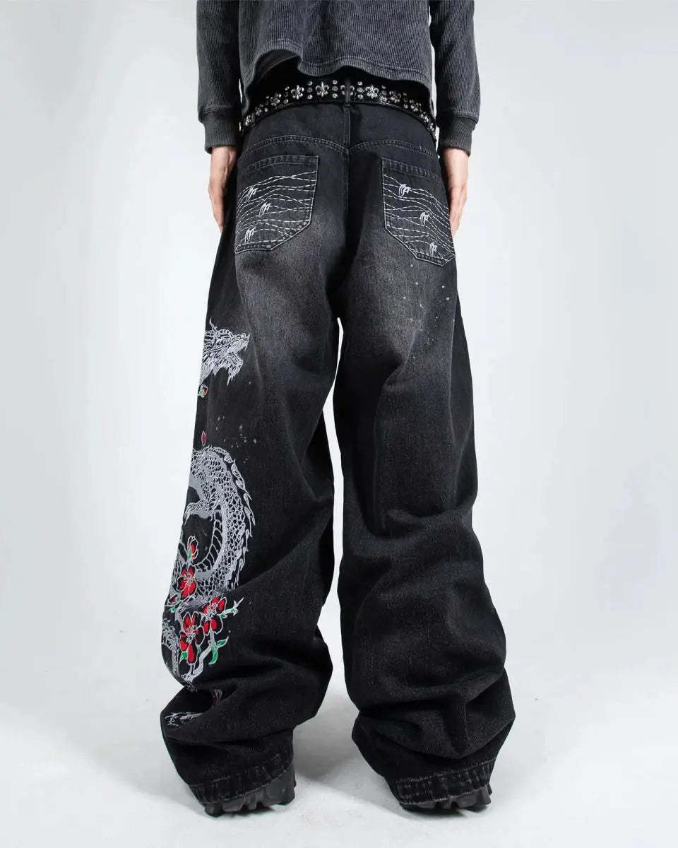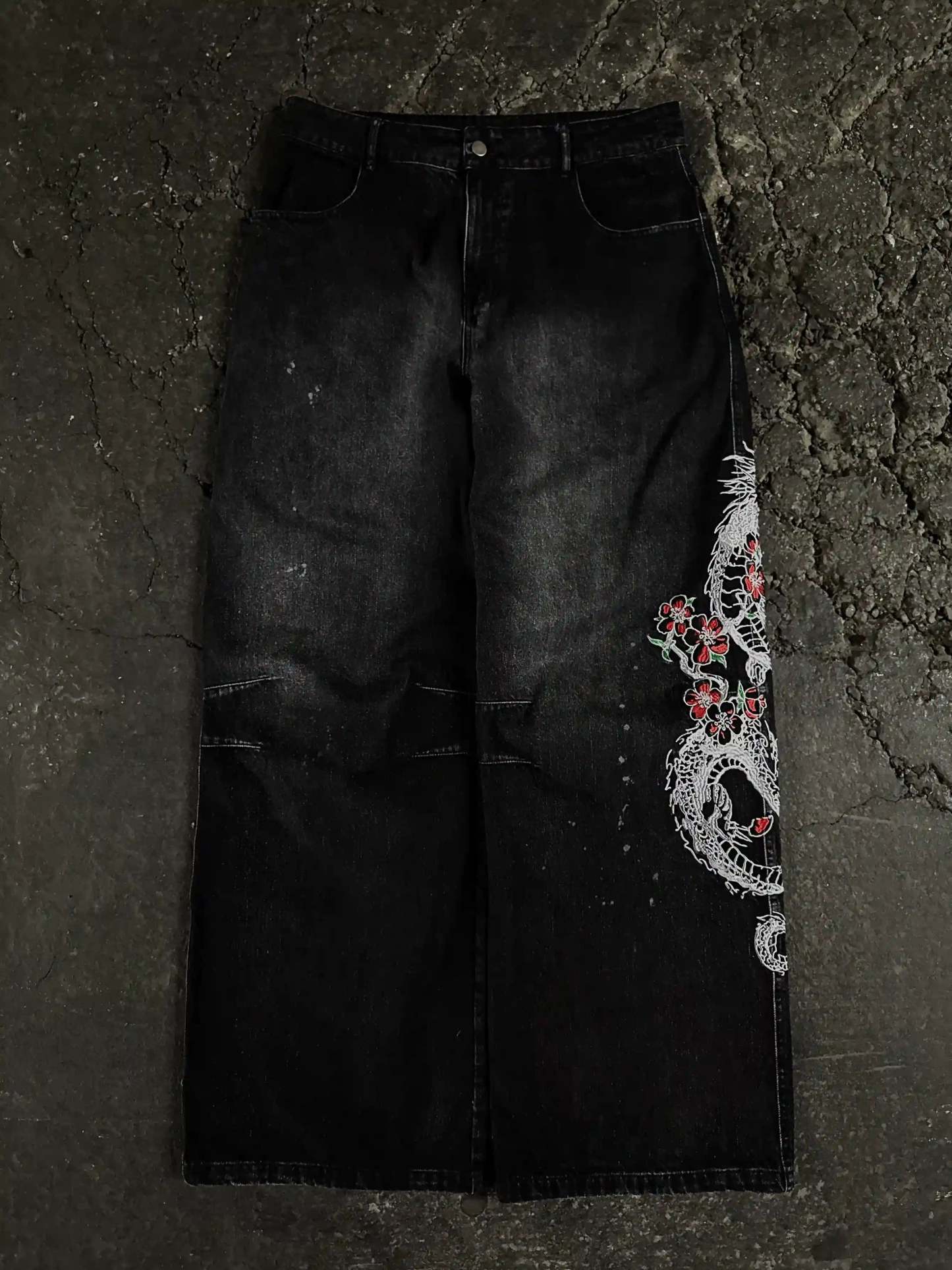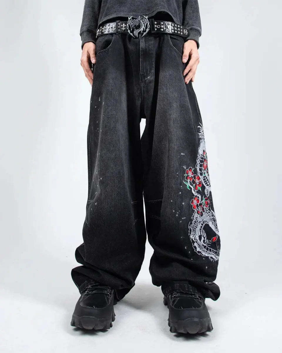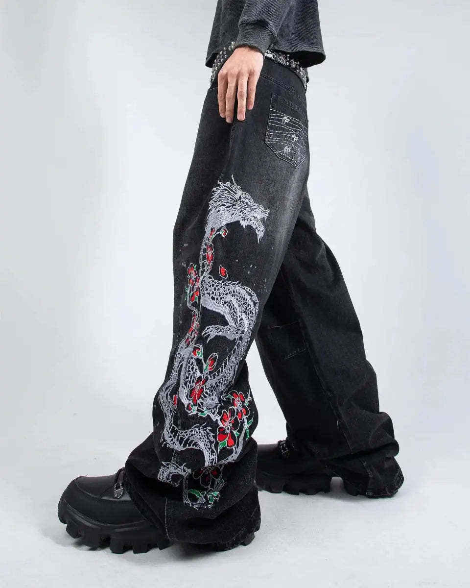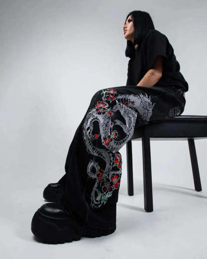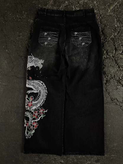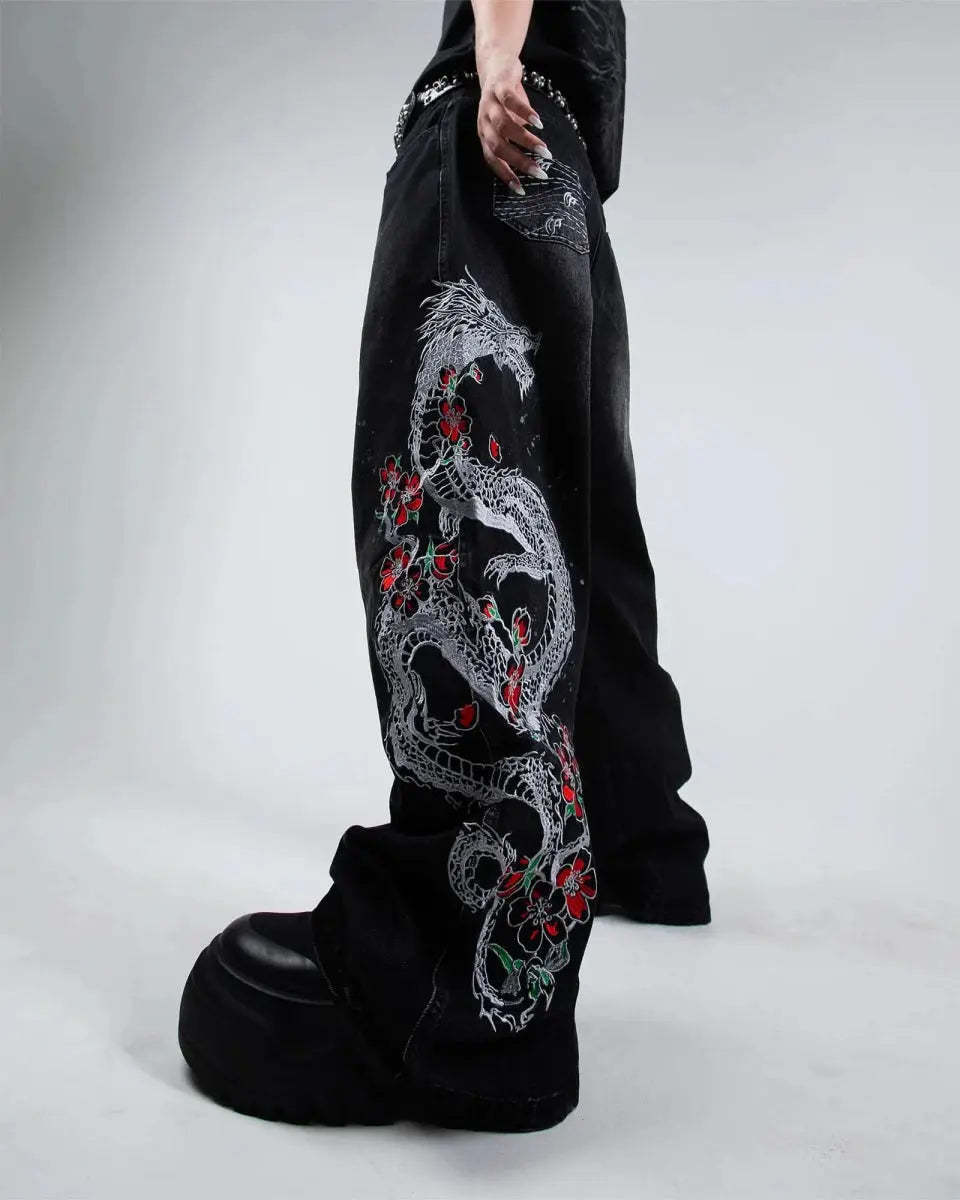 Left leg embroidered graphic: 'Sakura Dragon'