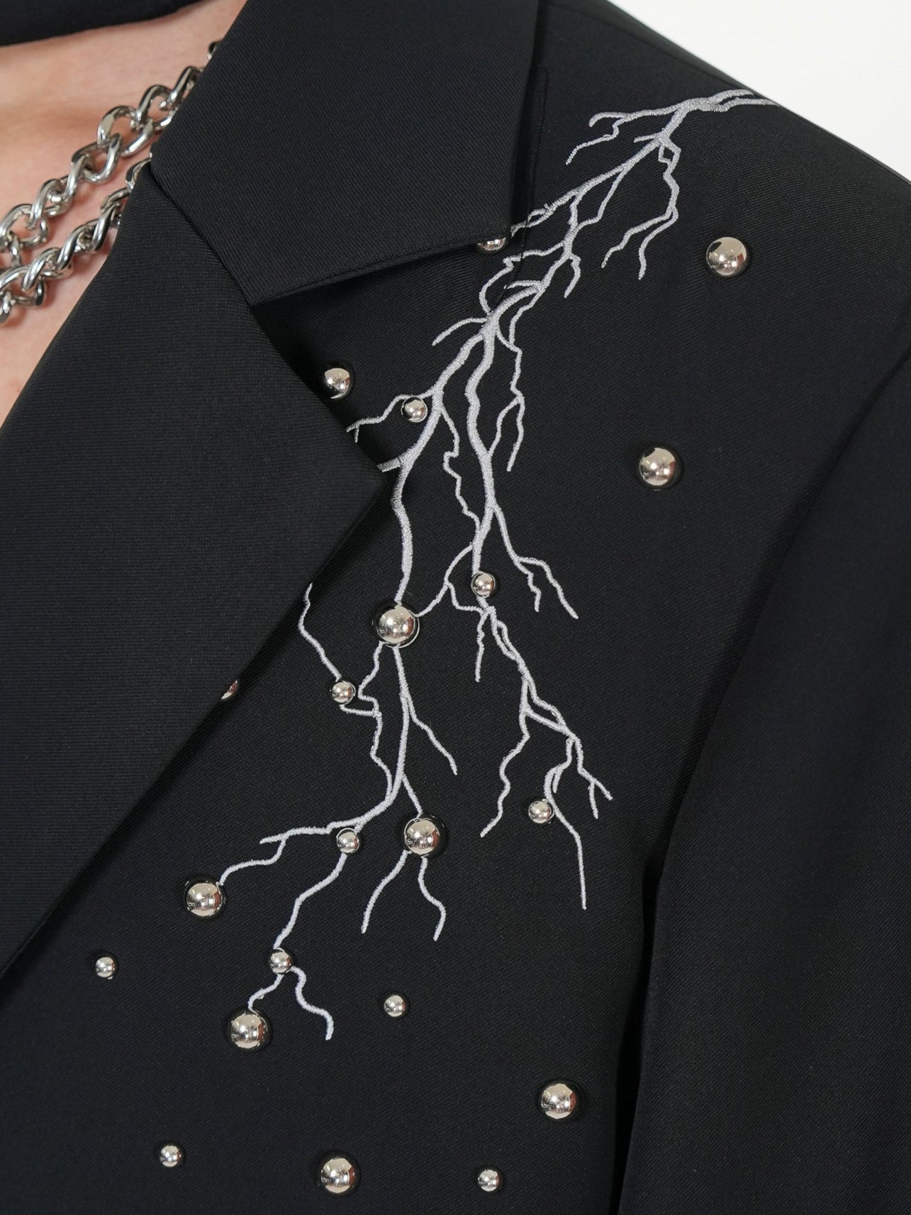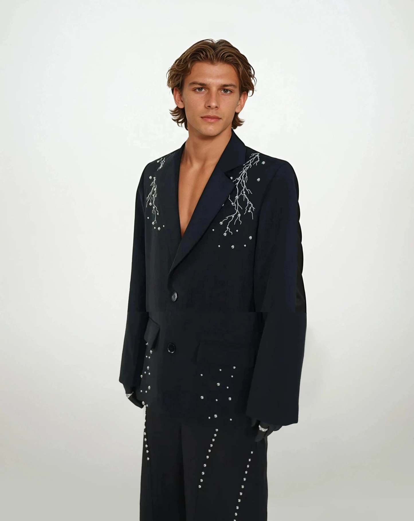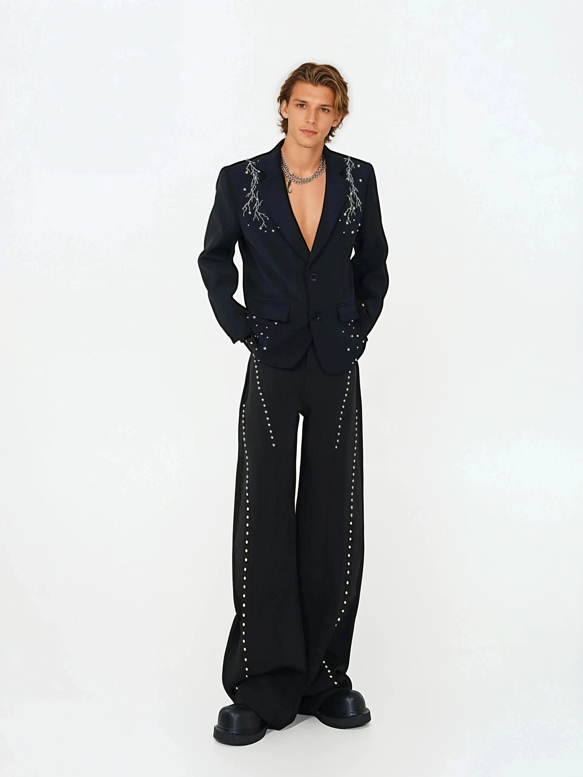 Wear the full set together with chunky boots or dress it down with a plain tee and sneakers—the clean construction and standout details make it easy to switch between formal, creative, or night-out looks. Ideal for those who lean into timeless shapes with unexpected touches, it’s a versatile take on punk-inspired tailoring.