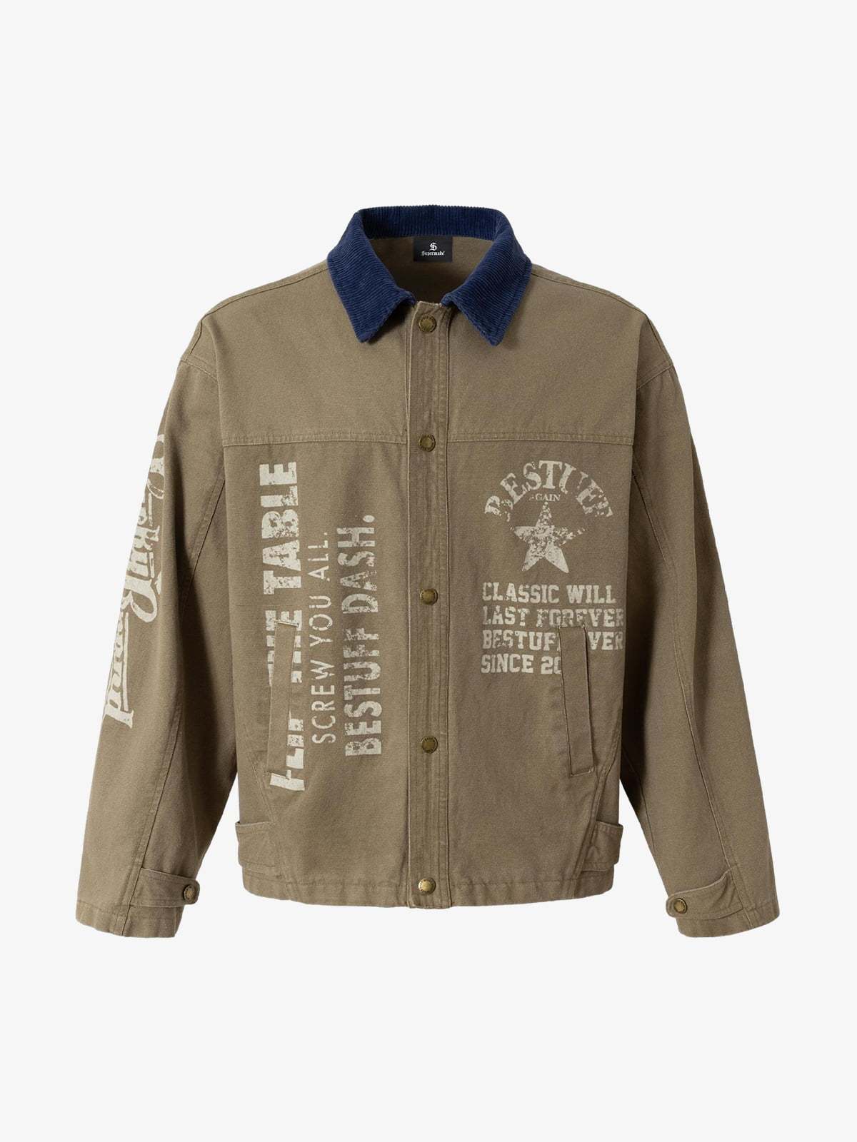 • Design Elements: Bold graphic prints, star emblem, text overlays