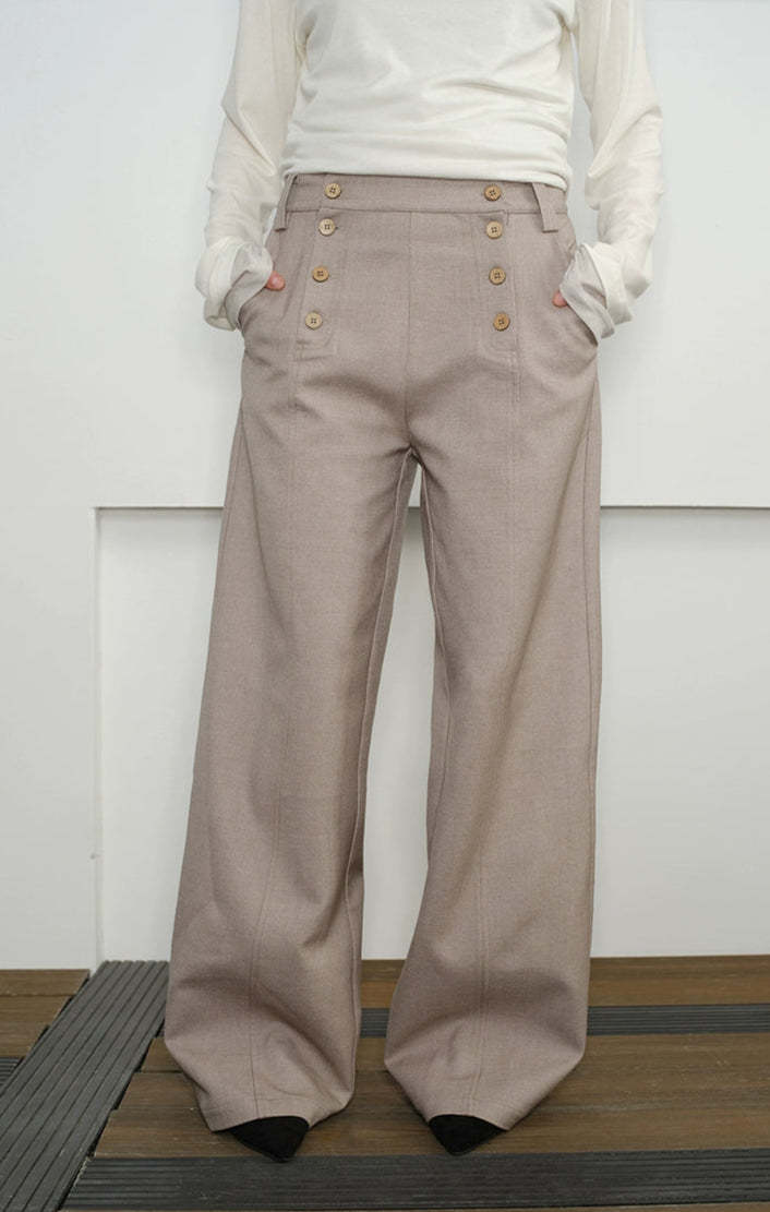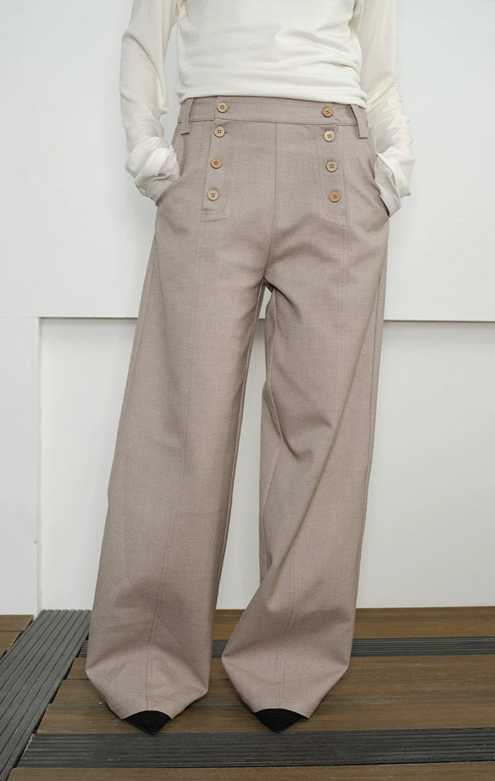 The High Waist Double Button Panel Waisted Trousers offer a refined twist on everyday wear, pairing subtle detailing with a clean, structured silhouette.