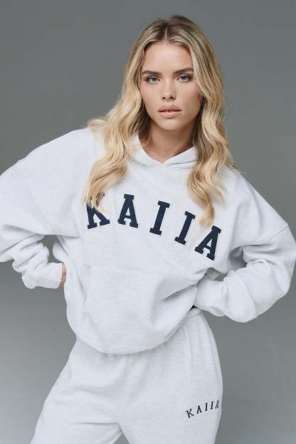 The Kaiia Slogan Oversized Hoodie In Grey Marl is the perfect combination of off-the-runway style and casual comfort. This hoodie features a bold and trendy logo design, making it a must-have item for any fashion-forward individual. Its oversized fit ensures maximum comfort and style. Whether you're running errands or hanging out with friends, the Kaiia Oversized Logo Hoodie is the ultimate statement piece for any off-duty look.
