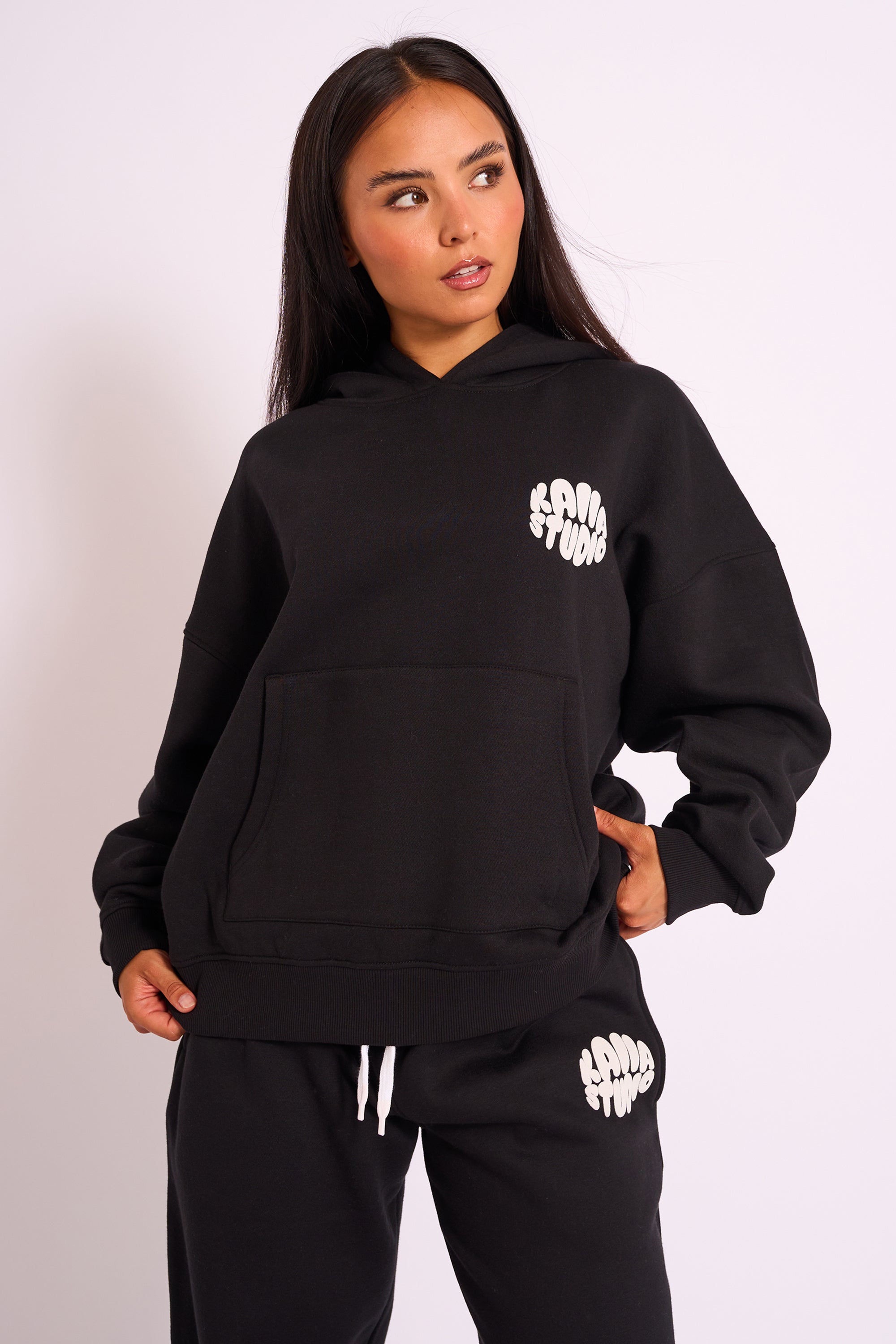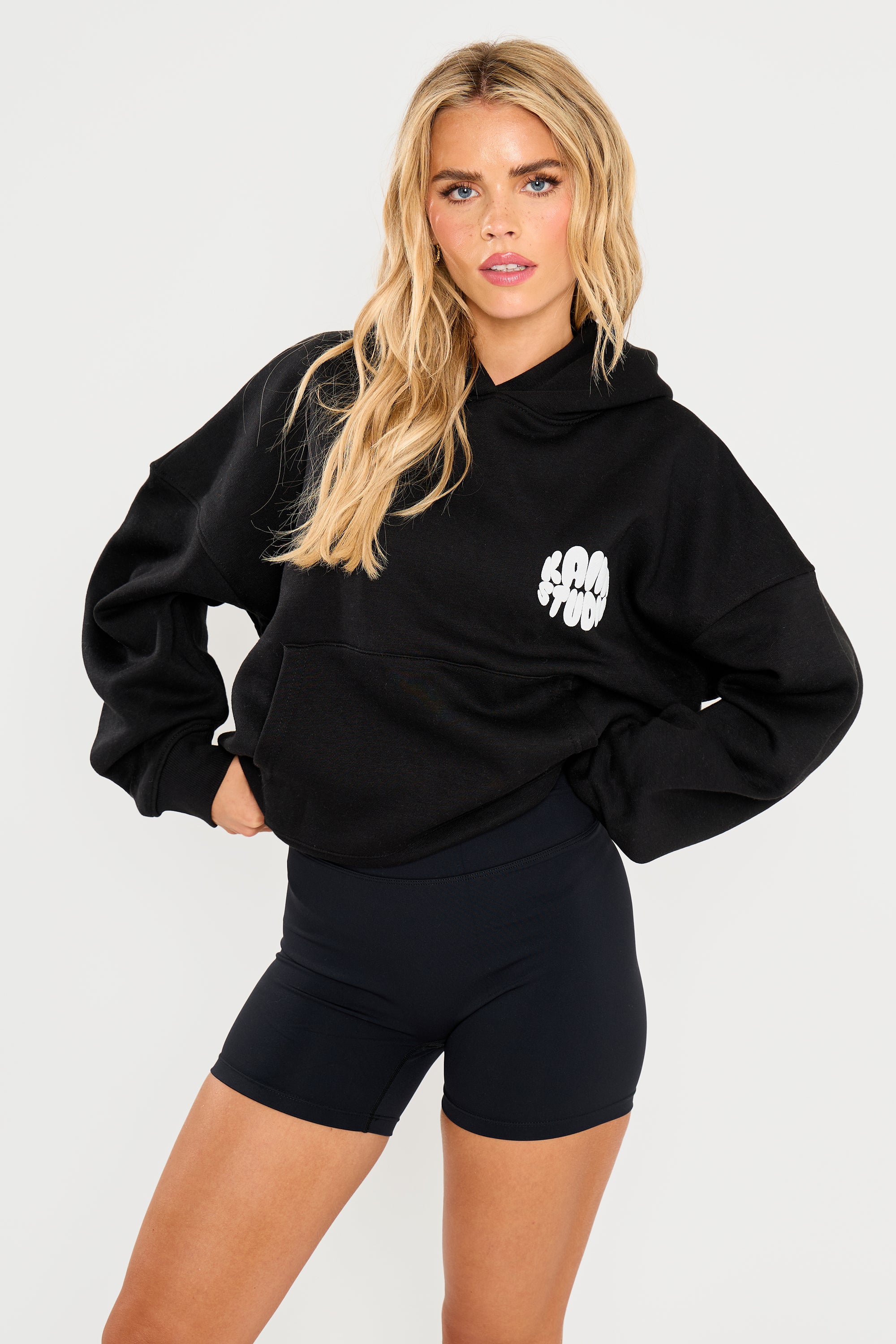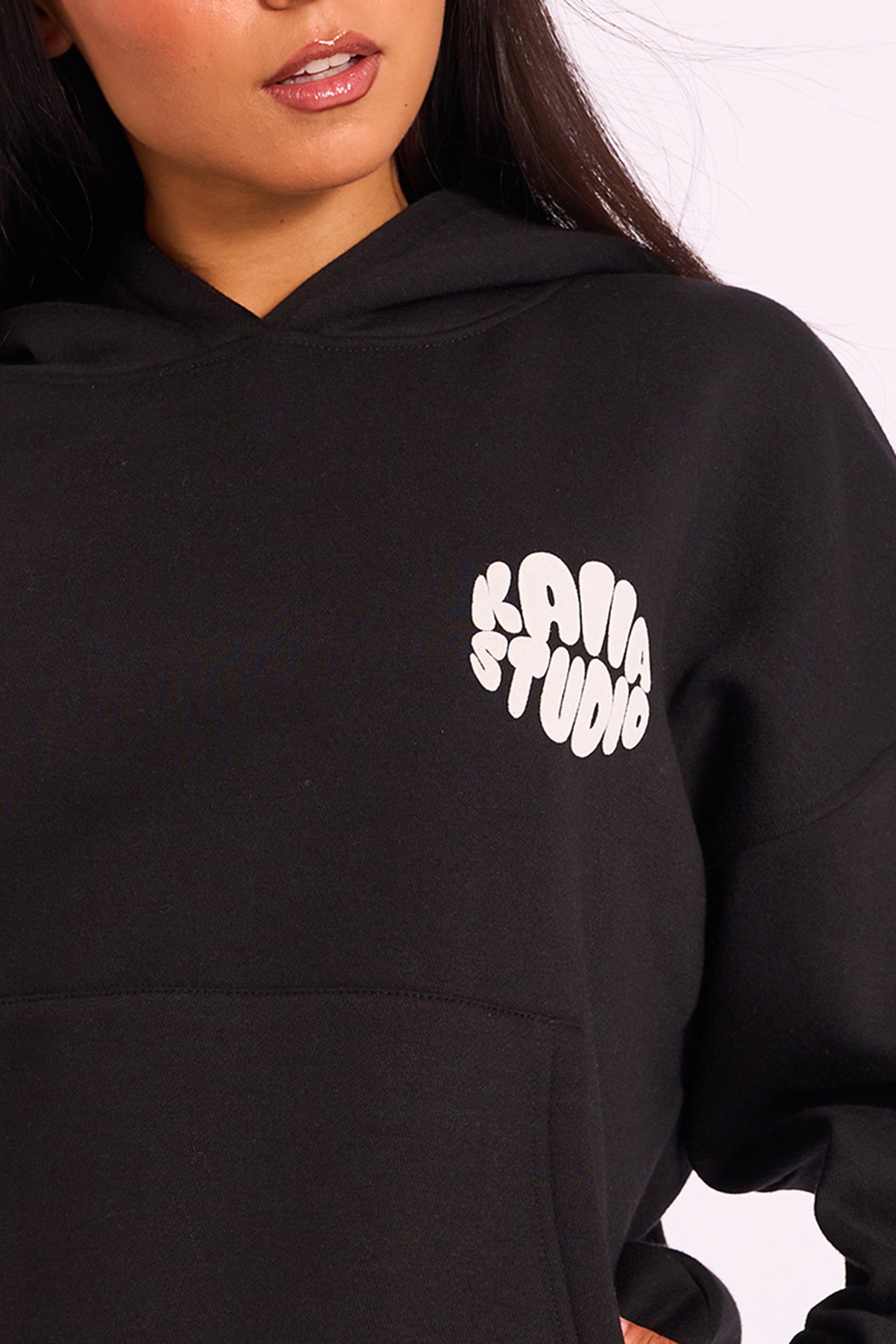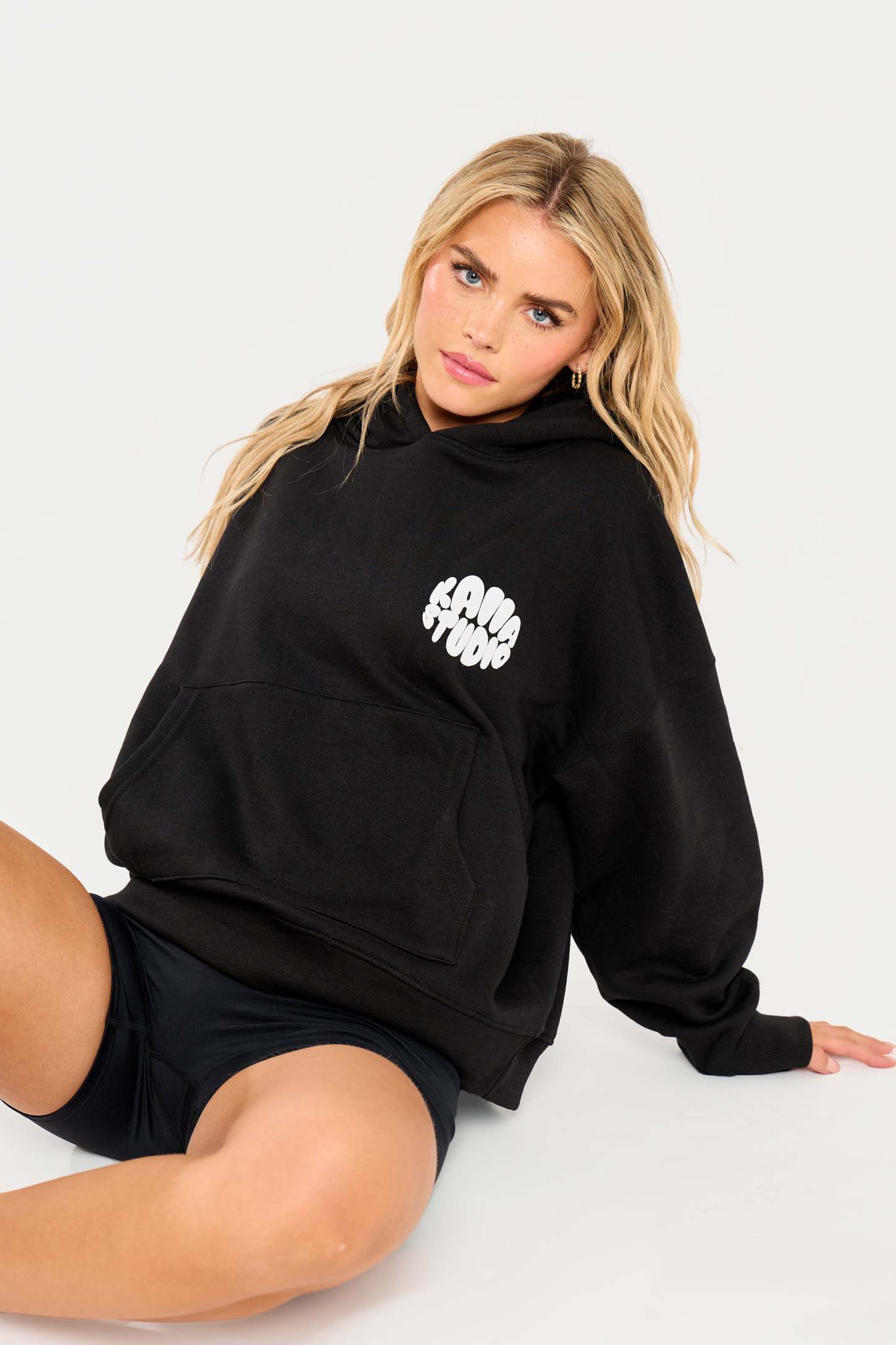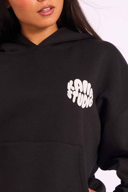 Unleash your playful side with the Kaiia Studio Bubble Oversized Hoodie in Black. This oversized hoodie is perfect for lounging or running errands, with a unique bubble texture for a touch of quirkiness. Stay cozy, stylish, and comfortable all day long!