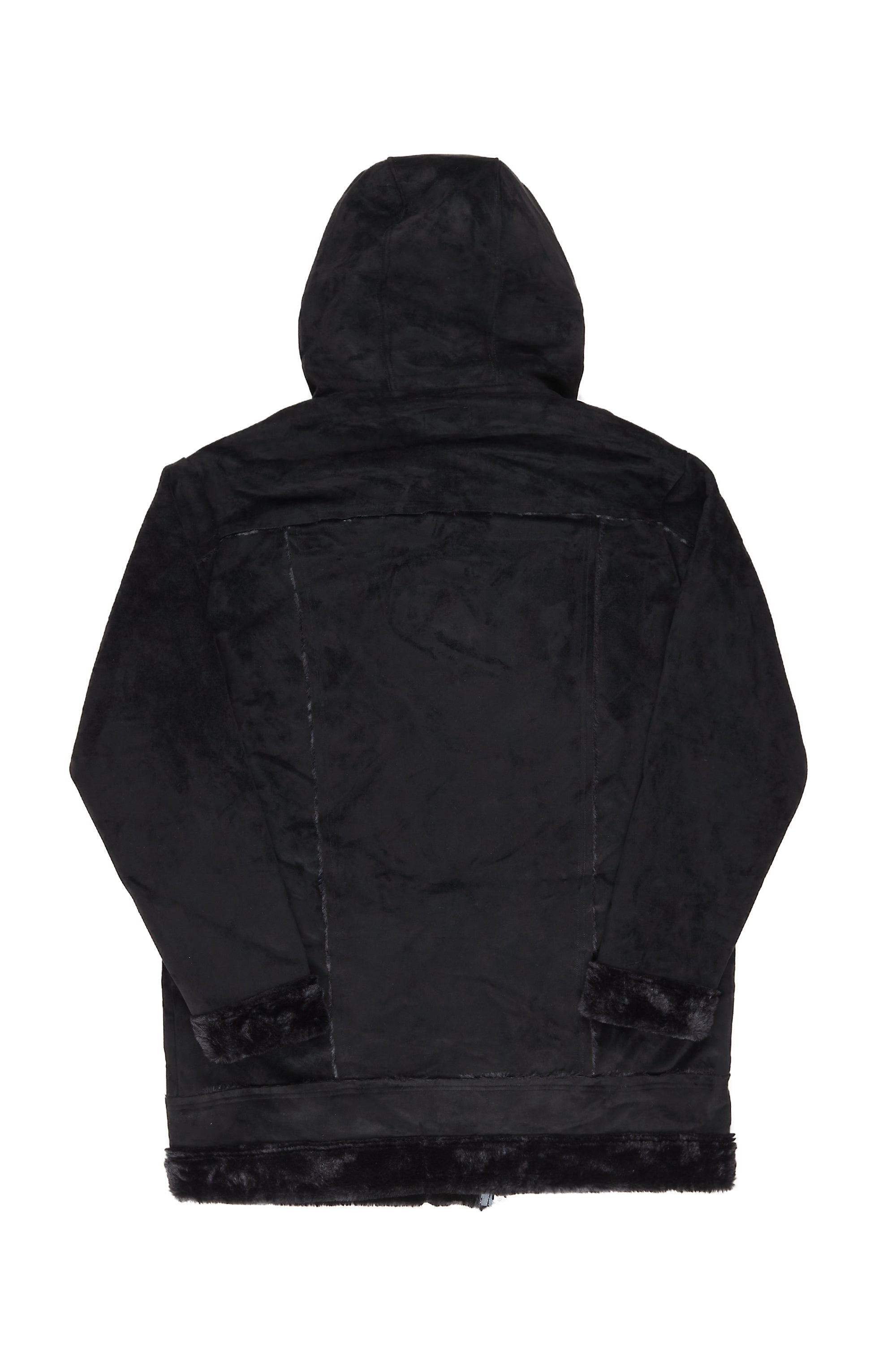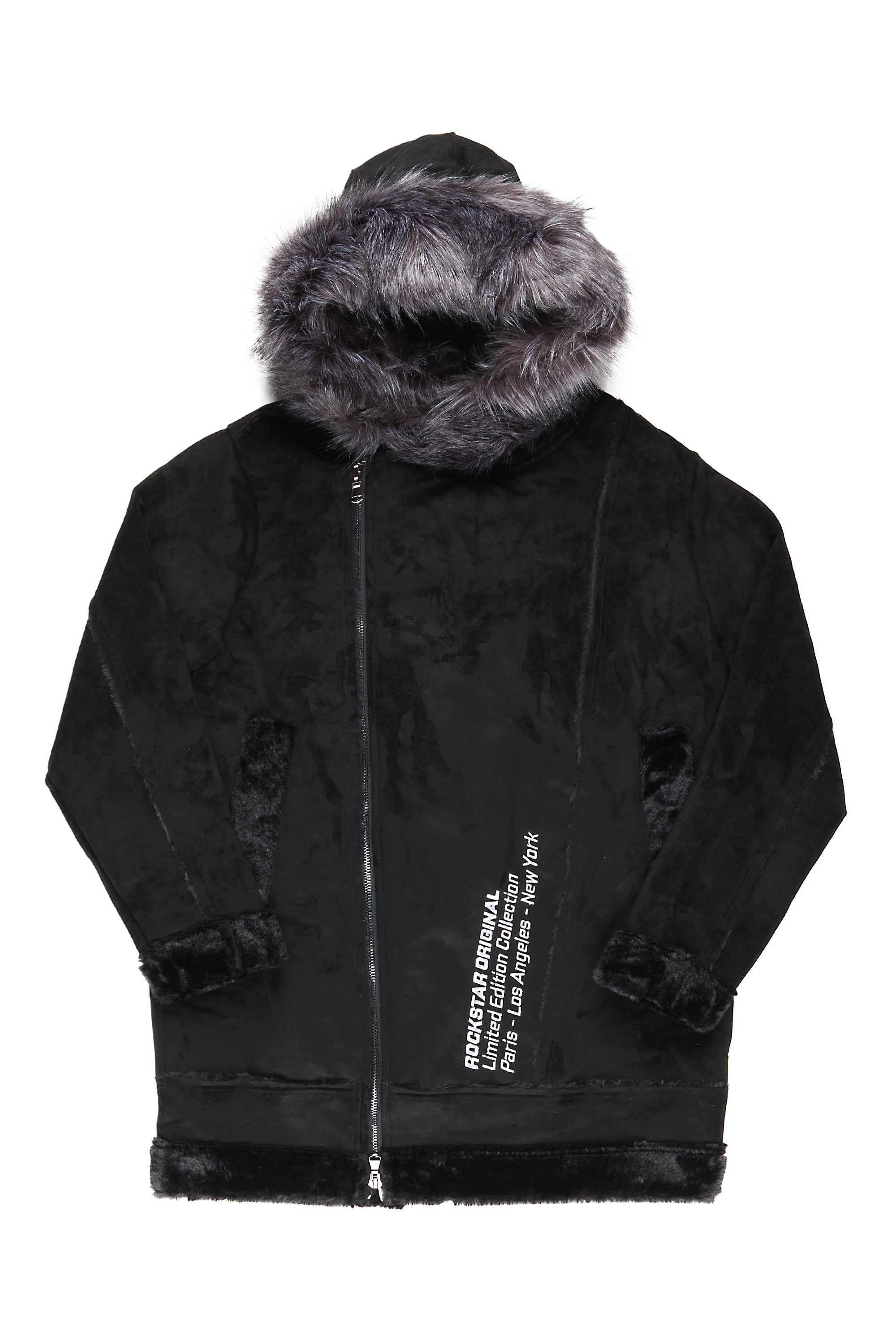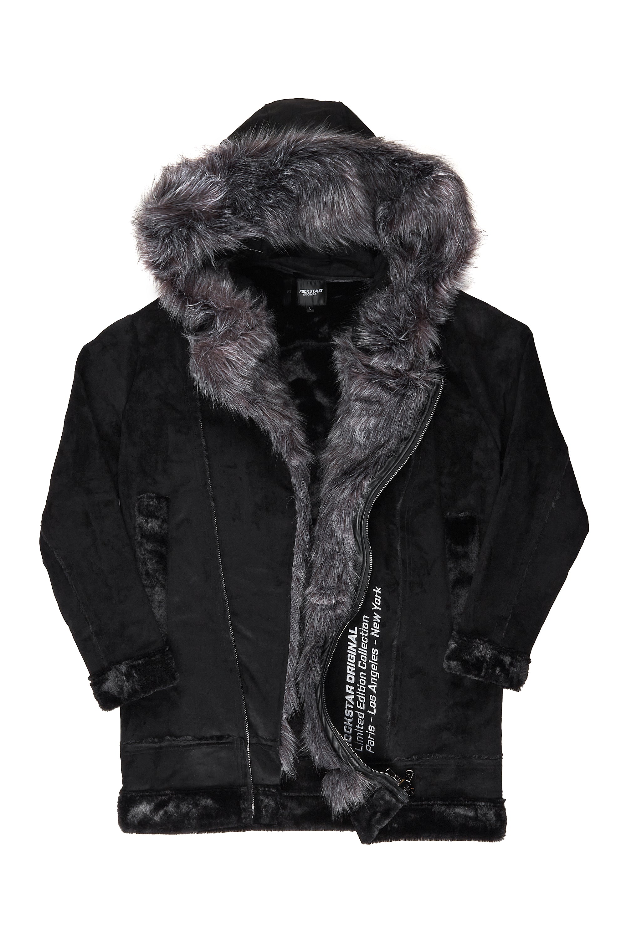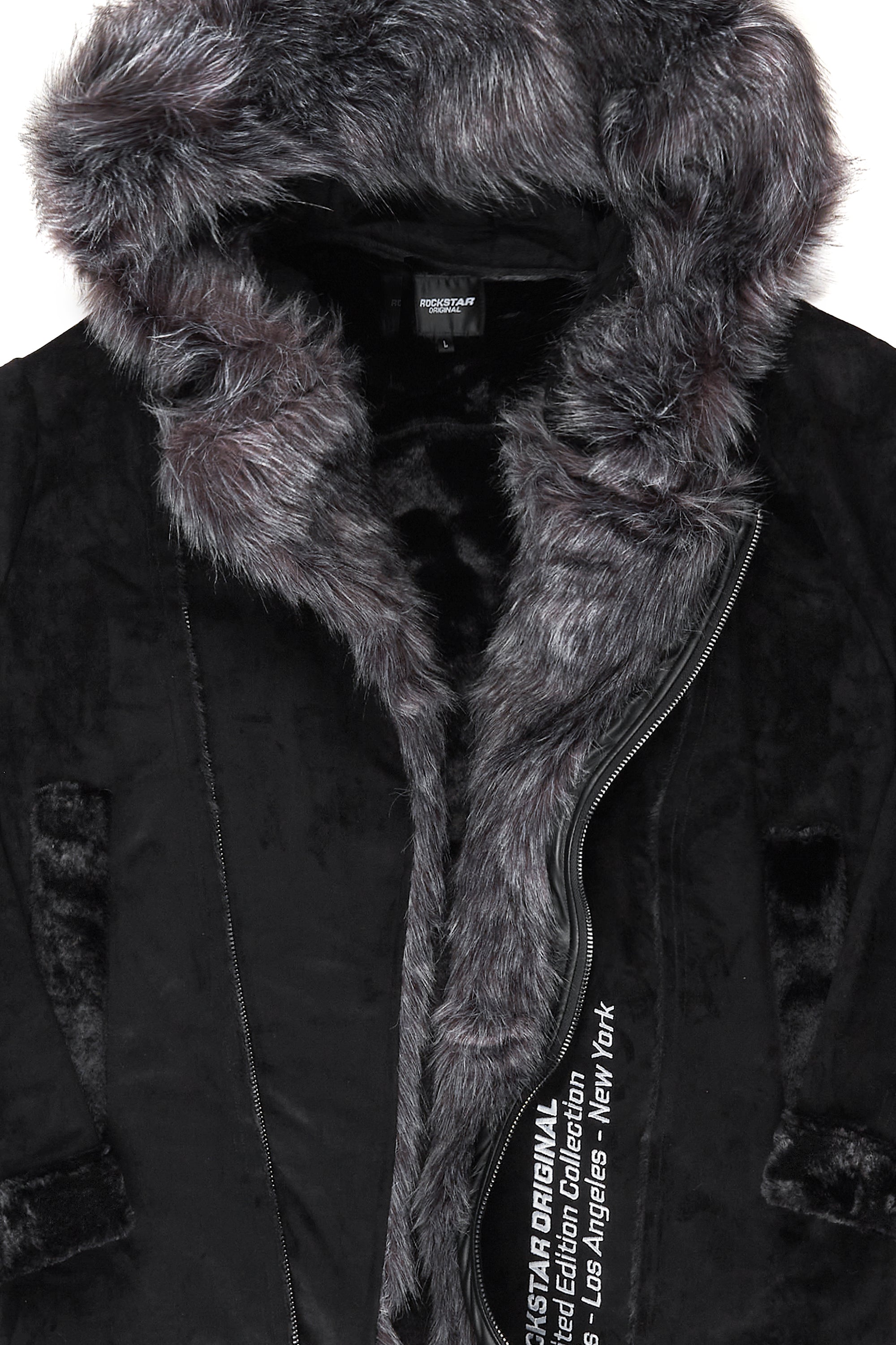 Moto-biker meets luxury streetwear with this men's mid-length aviator faux fur jacket in black. Designed with ultra soft faux shearling and faux fur for the perfect layering piece.