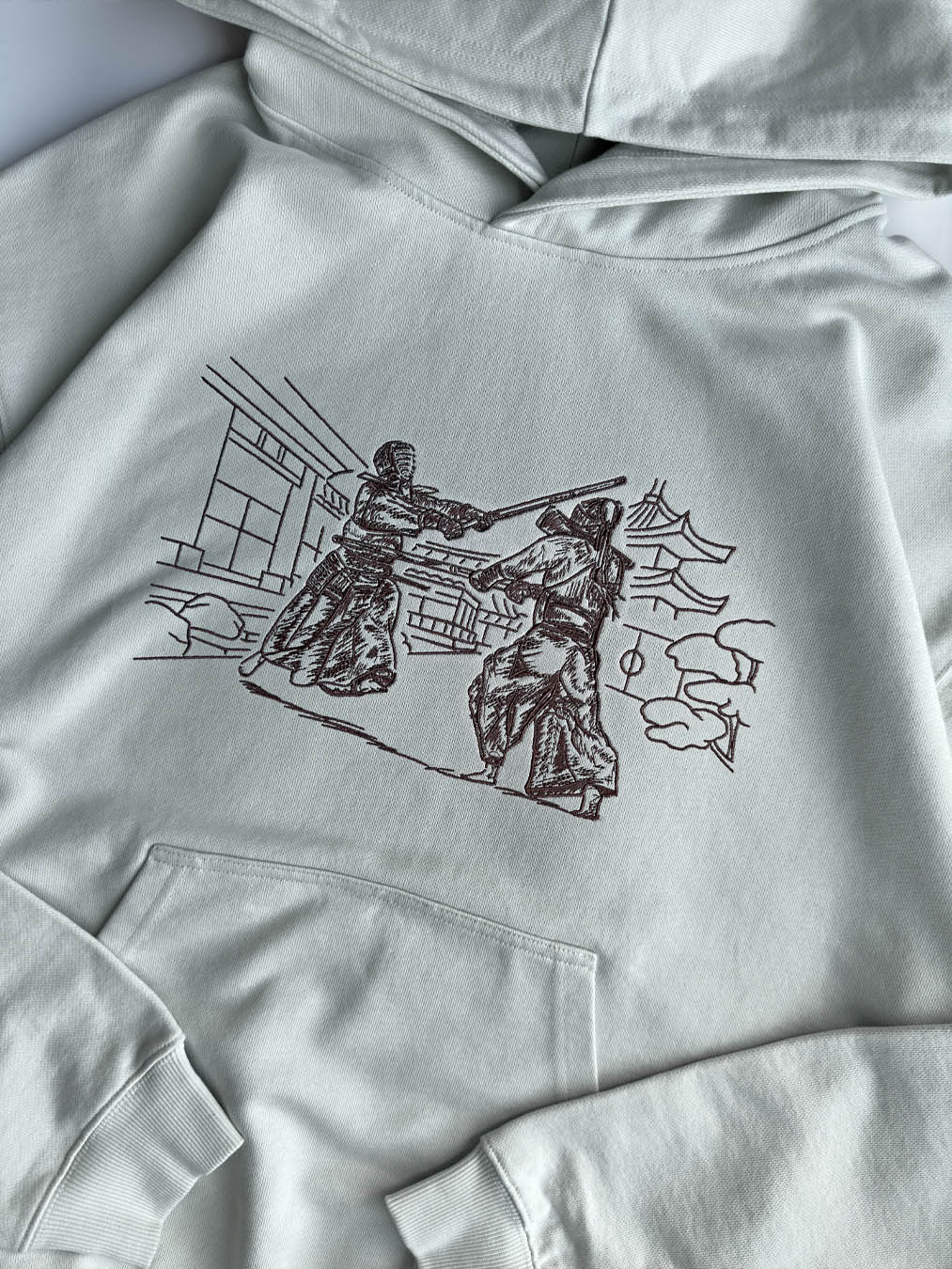 Wearable Art: KENDO Discover Eastern aesthetics with our new Kendo design, inspired by the Japanese martial art that blends discipline, character, and combat skill. Choose with or without background, front or back placement, and your preferred thread colors.