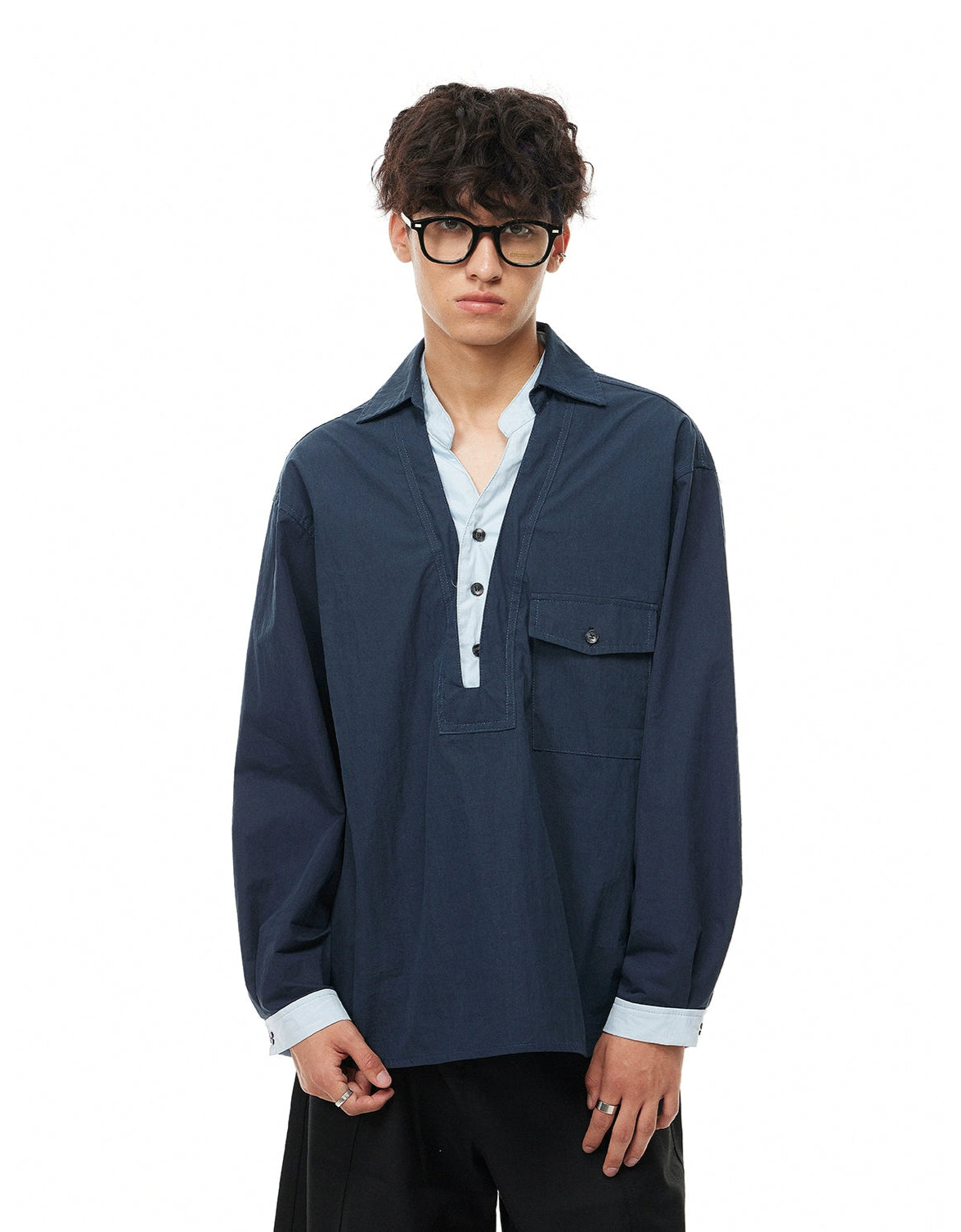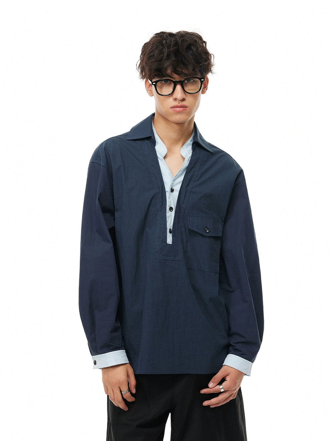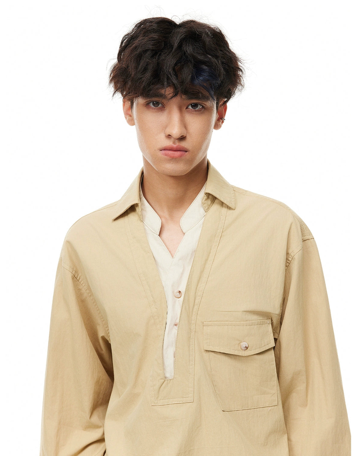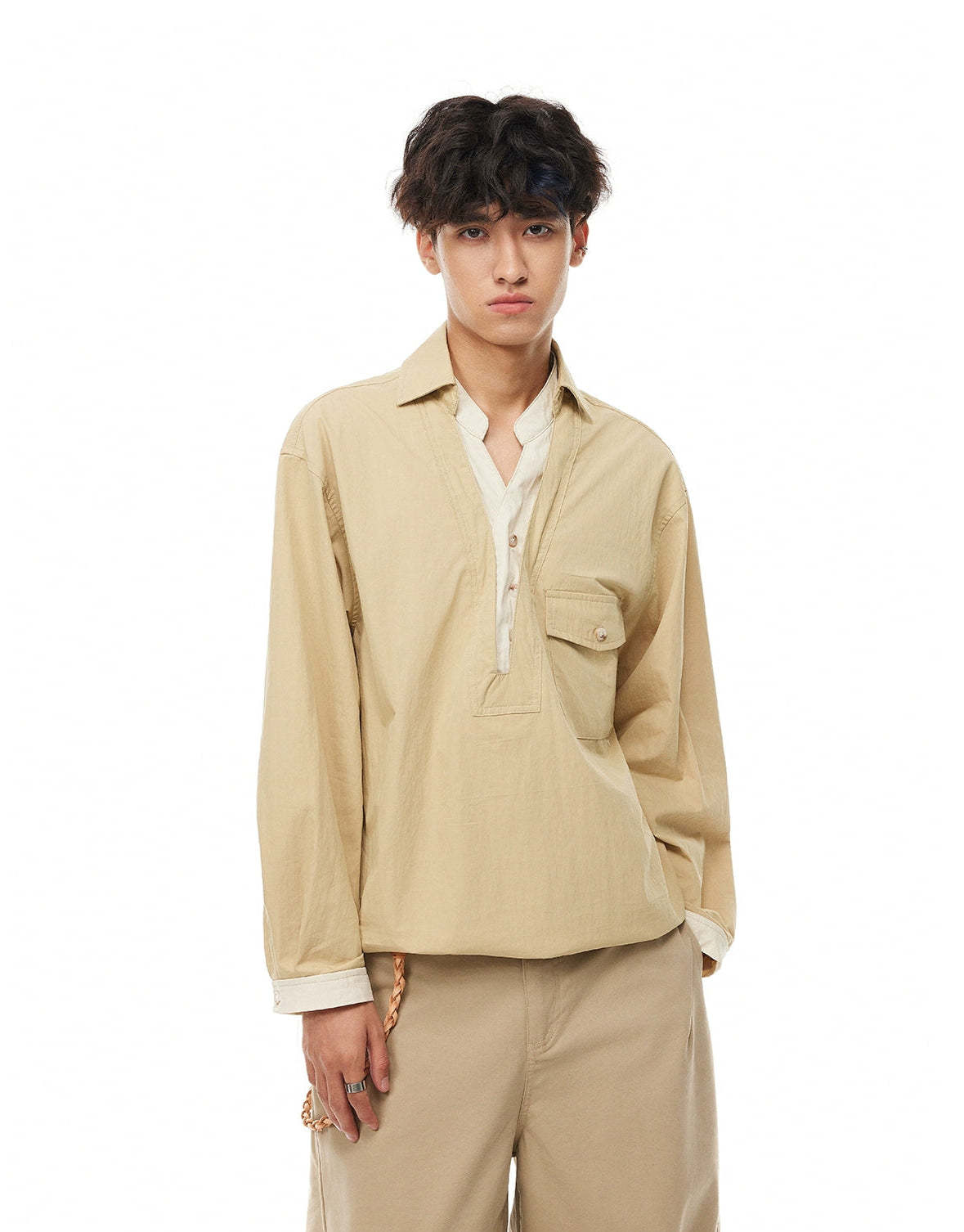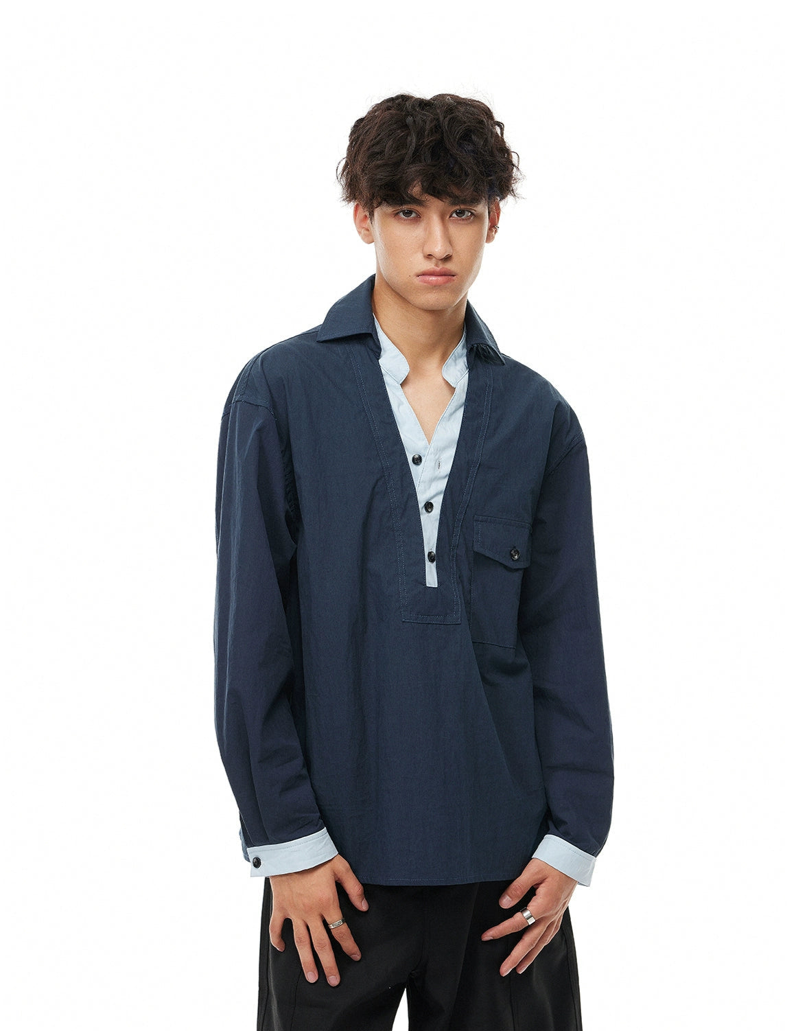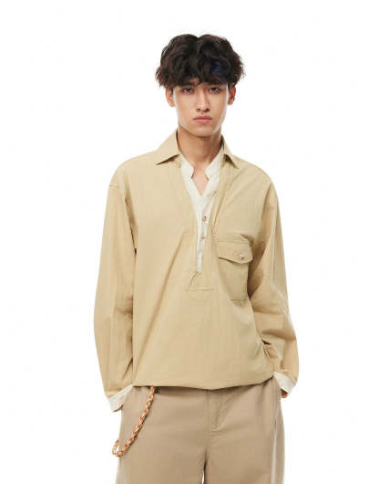 The Mock Layered Popover Shirt with Button Neck gives off an effortless layered look without the bulk, making it a sharp and functional option for everyday wear.