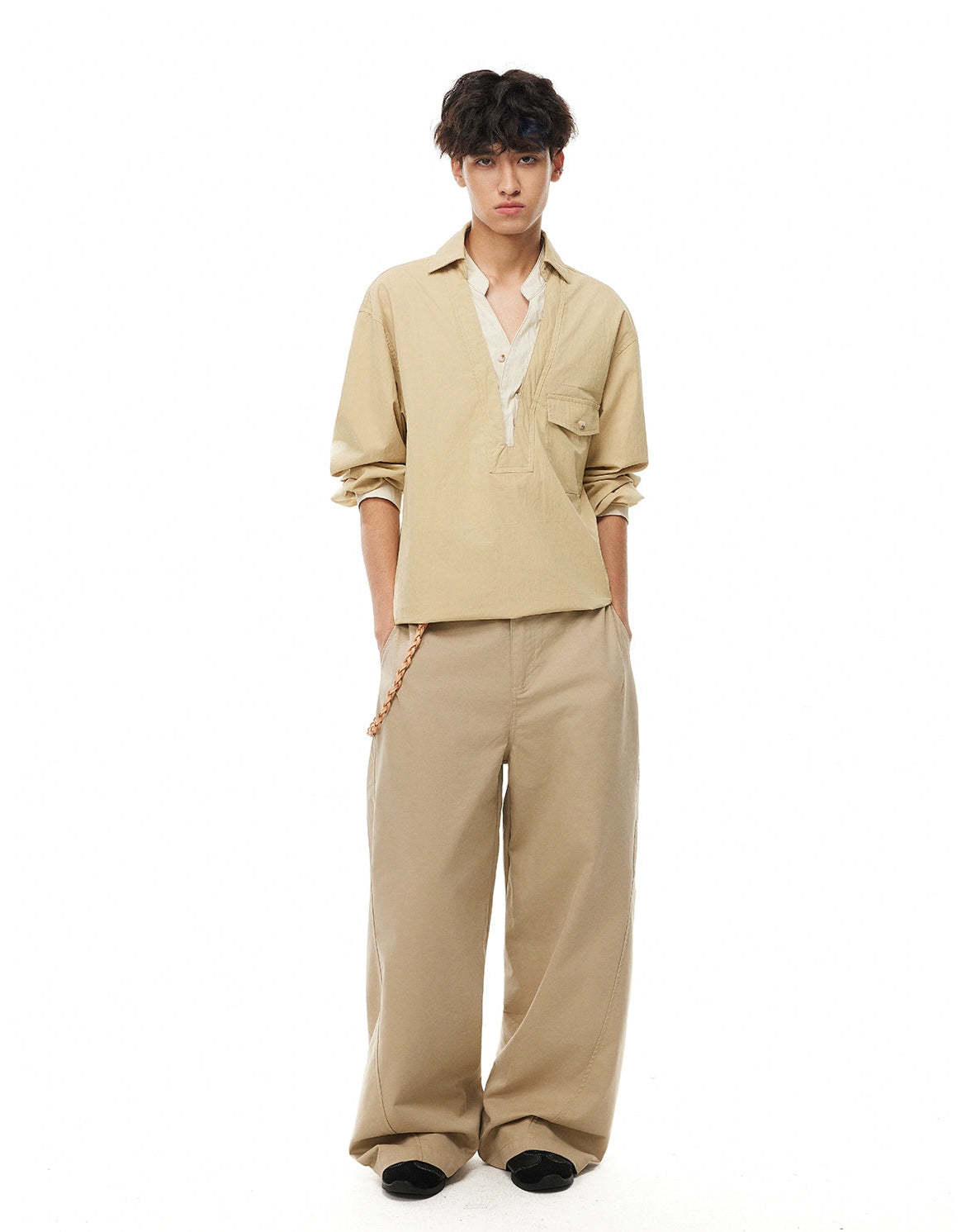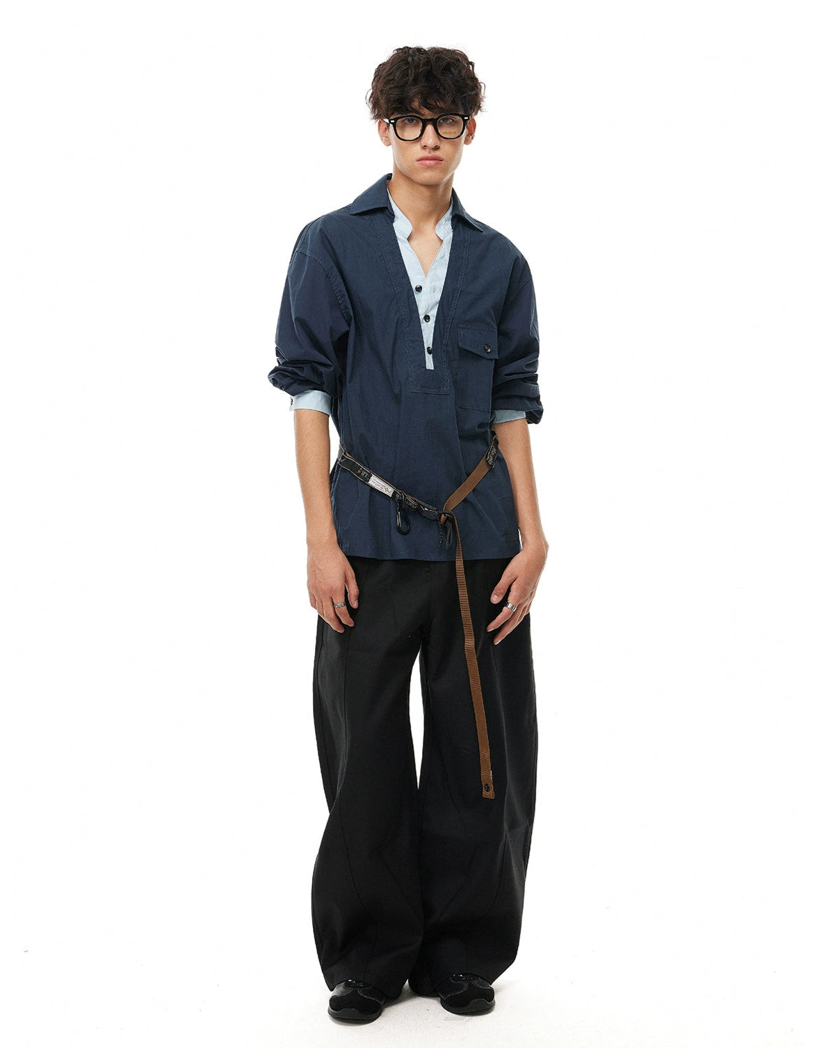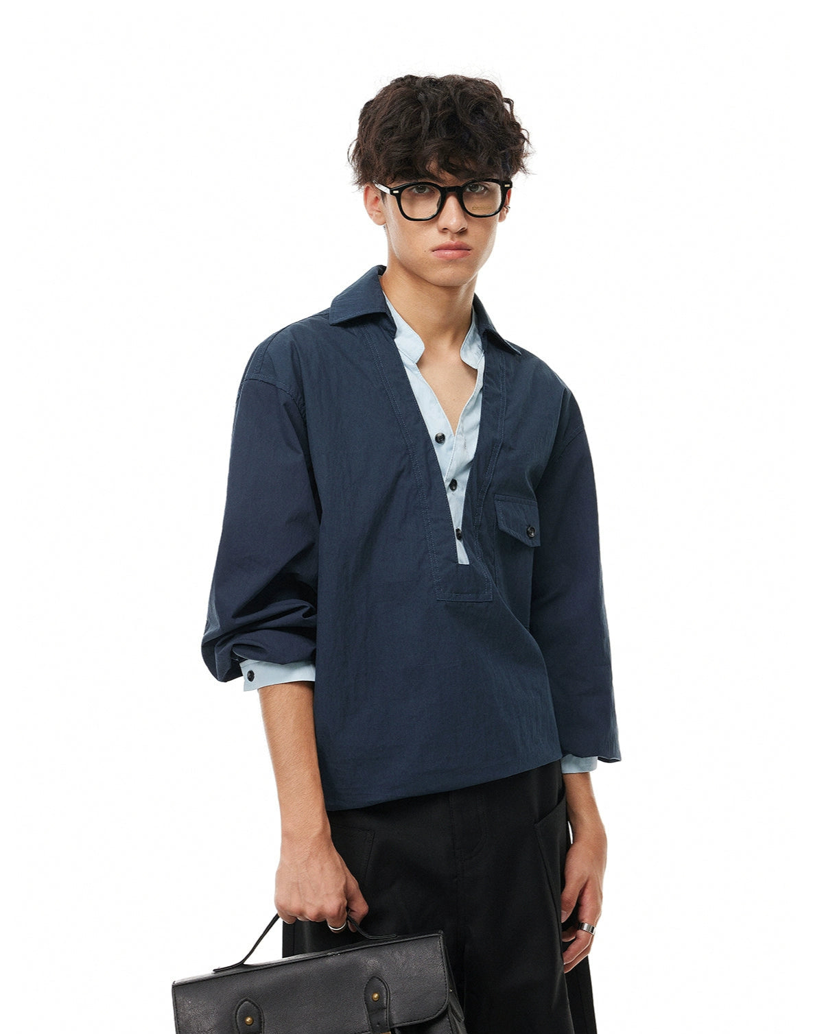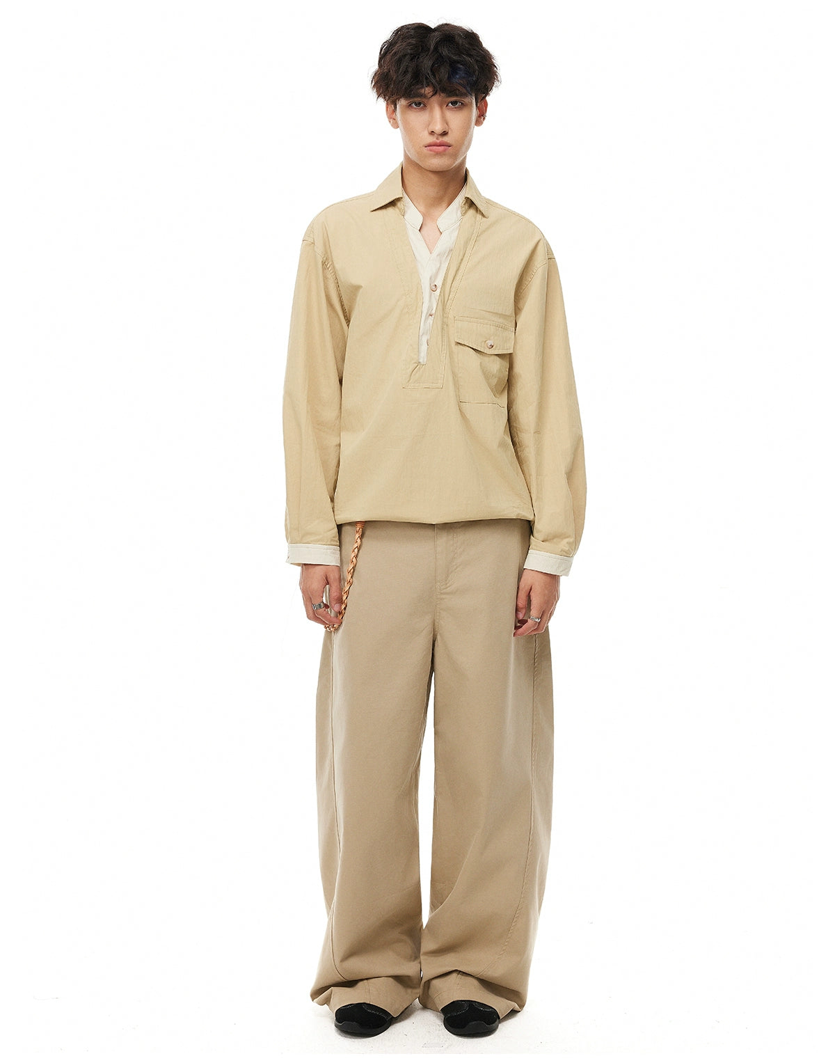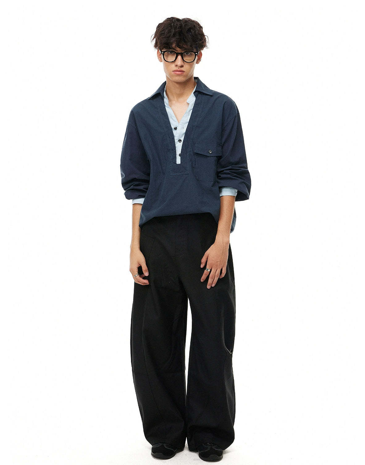It’s easy to pair with relaxed trousers, tailored pants, or loose denim—ideal for laid-back office days, weekends in the city, or low-key nights out. This shirt fits into a wardrobe built on intention: confident, minimalist, and refined without trying too hard.