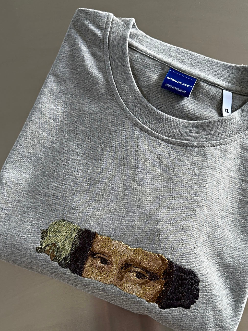 Art that needs no introduction.A fragment of Leonardo da Vinci's famous Mona Lisa, embroidered with high precision to capture the depth and realism of her gaze.