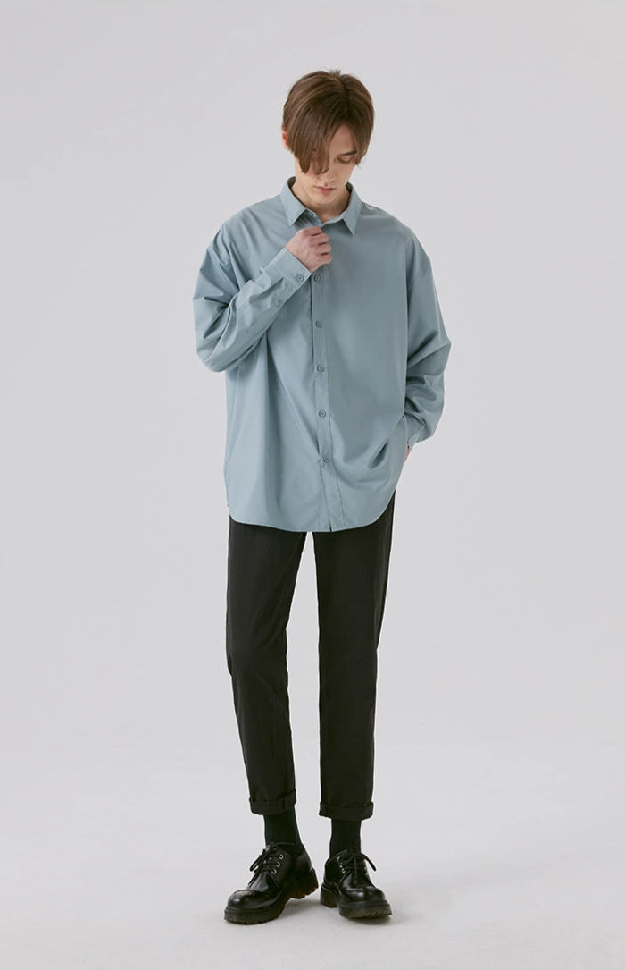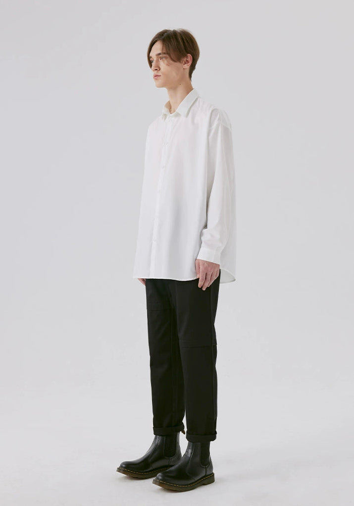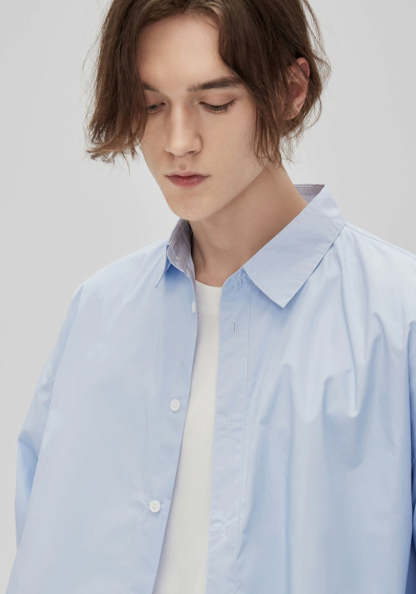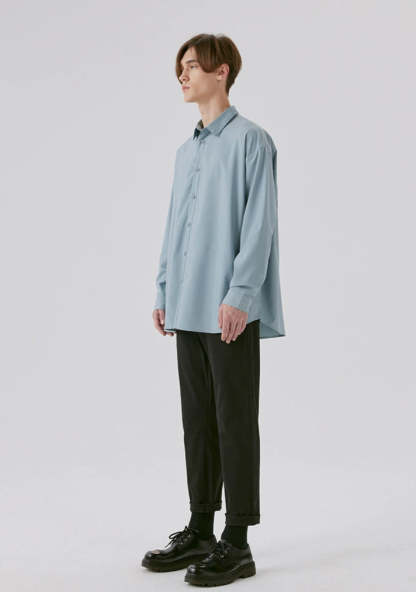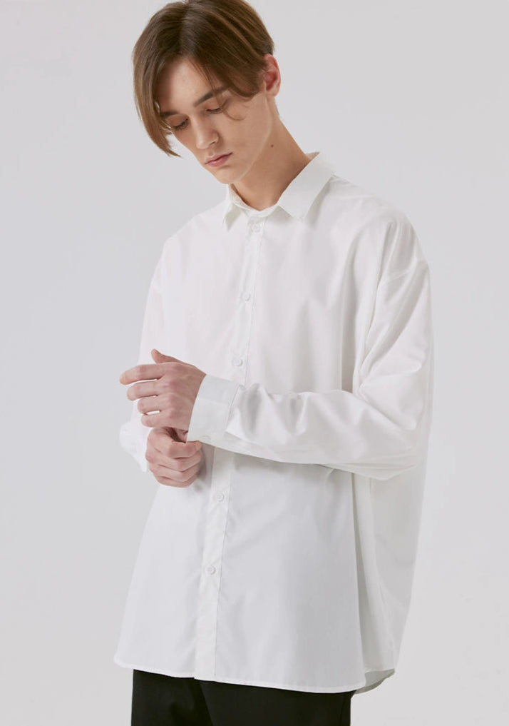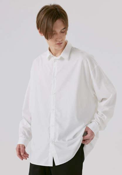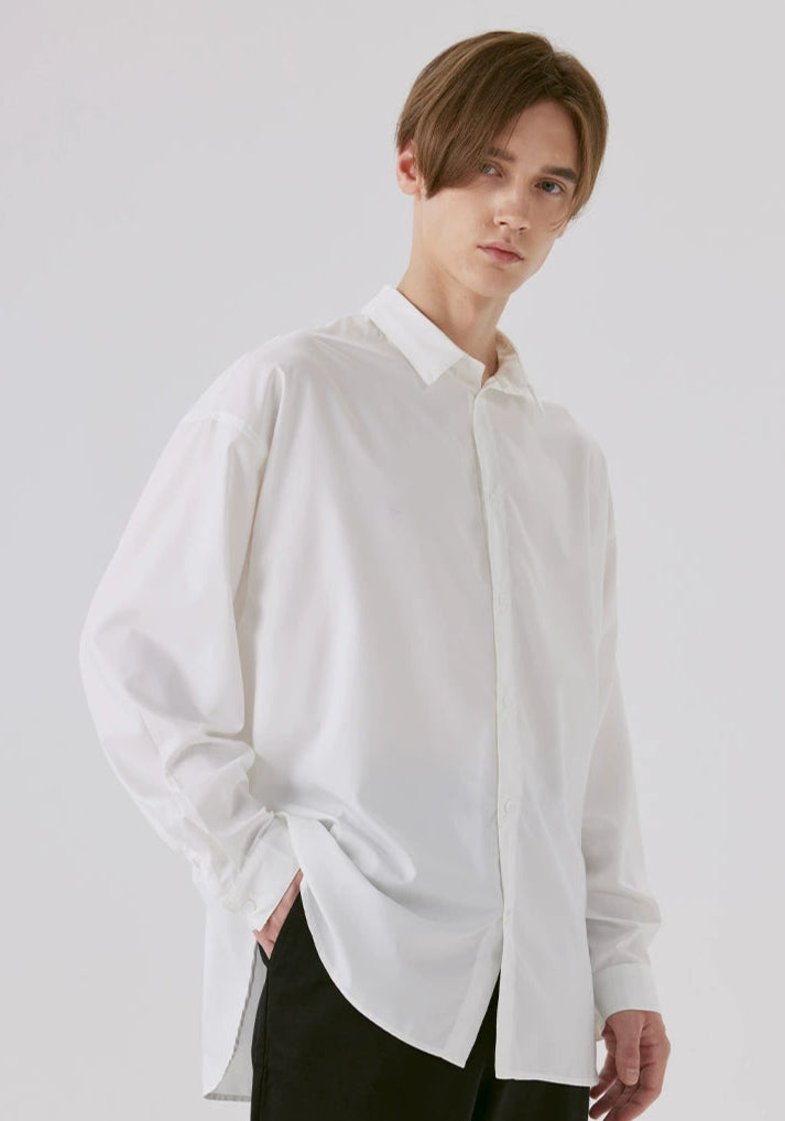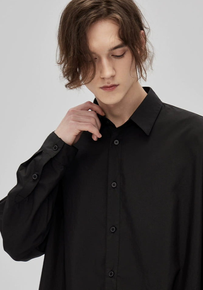 Crafted from 100% cotton, it delivers a soft, breathable feel with a smooth drape that moves with you. The pointed collar and clean, solid finish keep it sharp, while thoughtful details like vented cuffs and button closure bring just enough structure to balance out its relaxed fit.