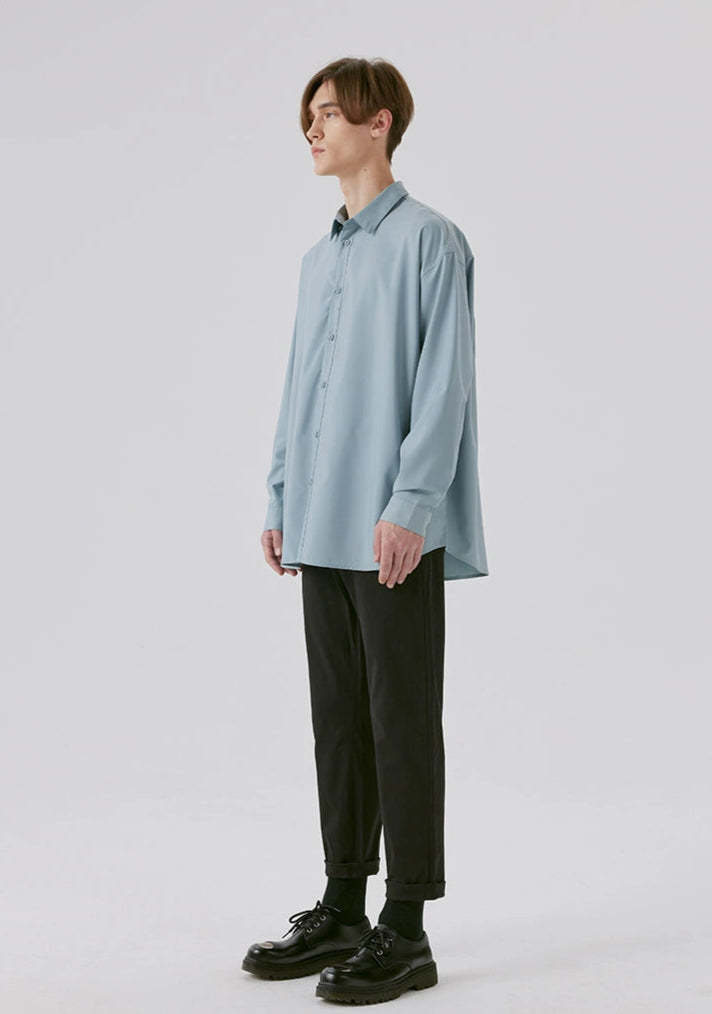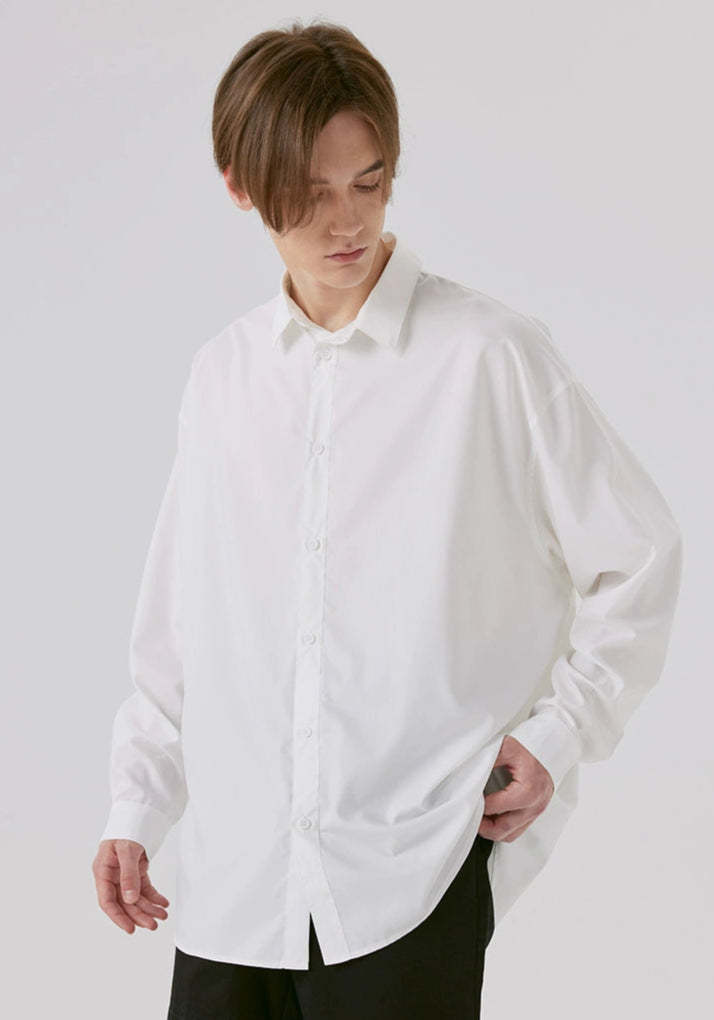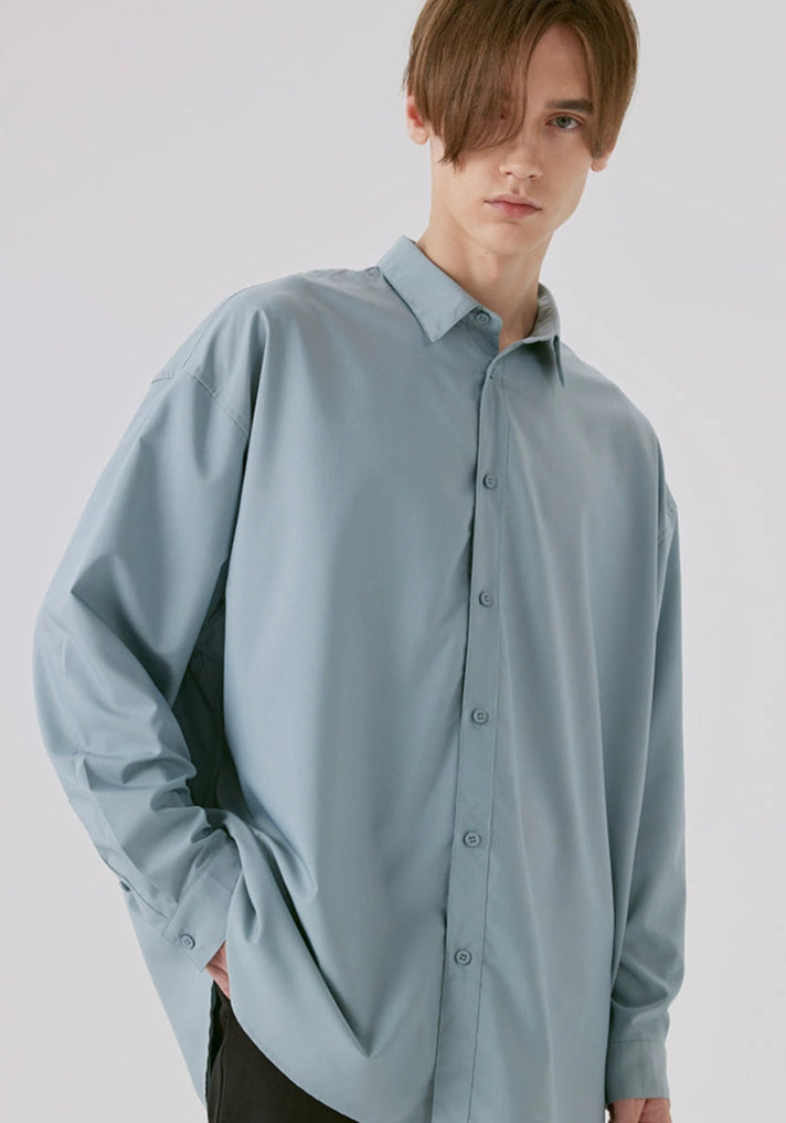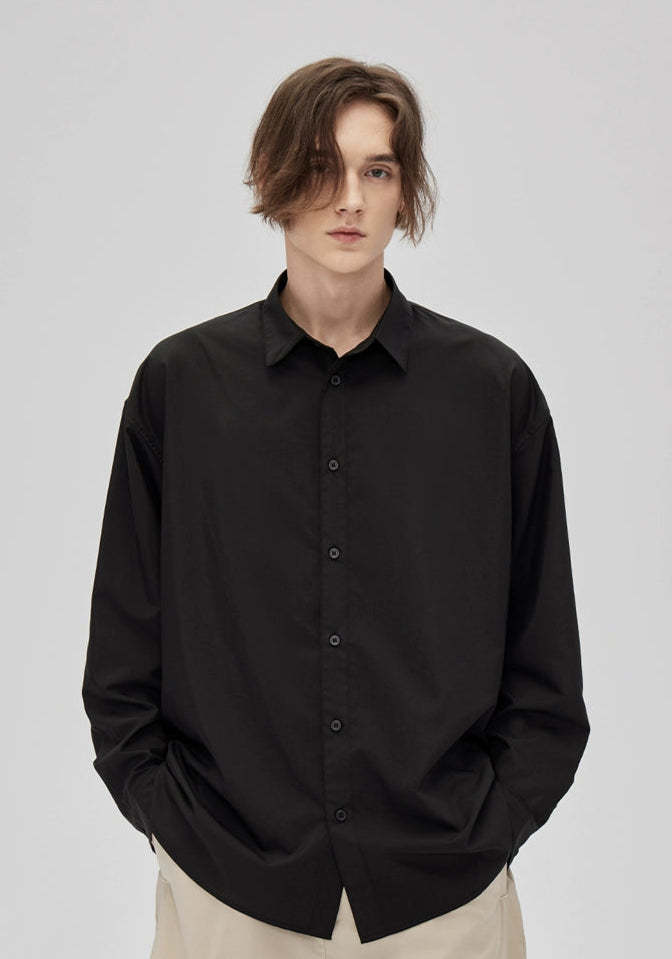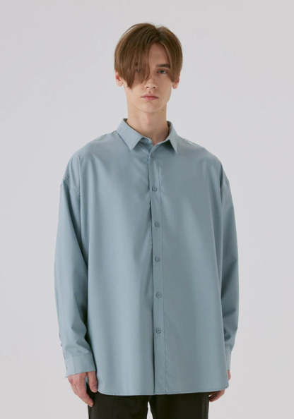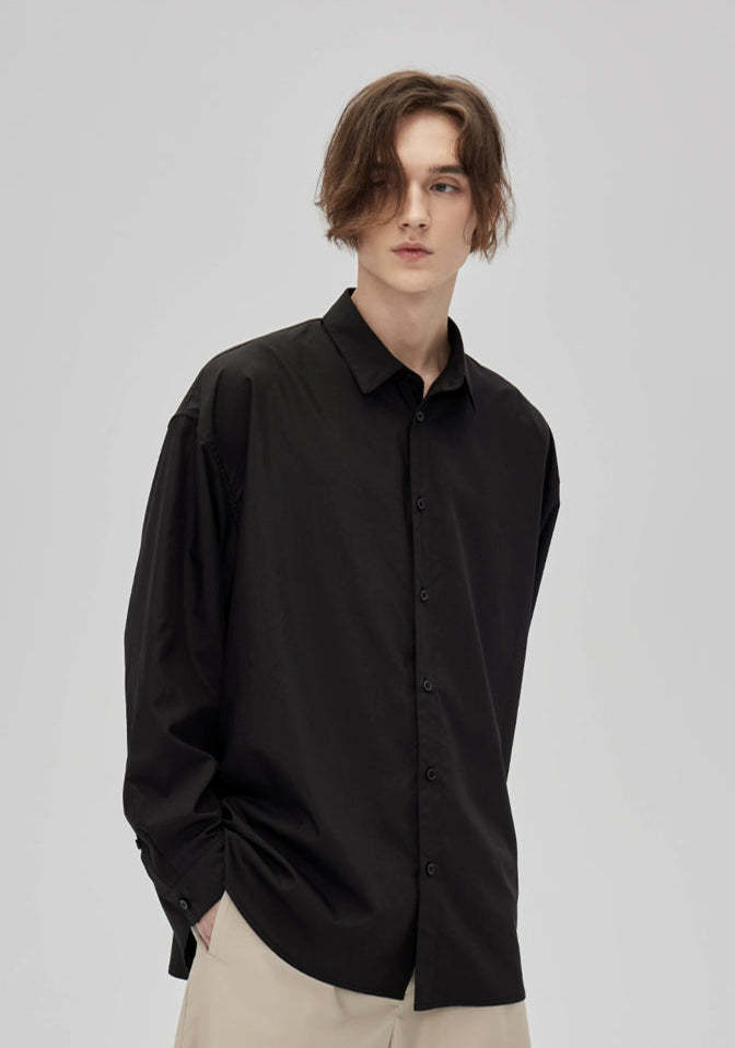 Designed with an effortless oversized silhouette, this drop shoulder button-up shirt is all about subtle presence and easy layering.