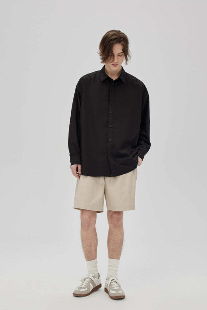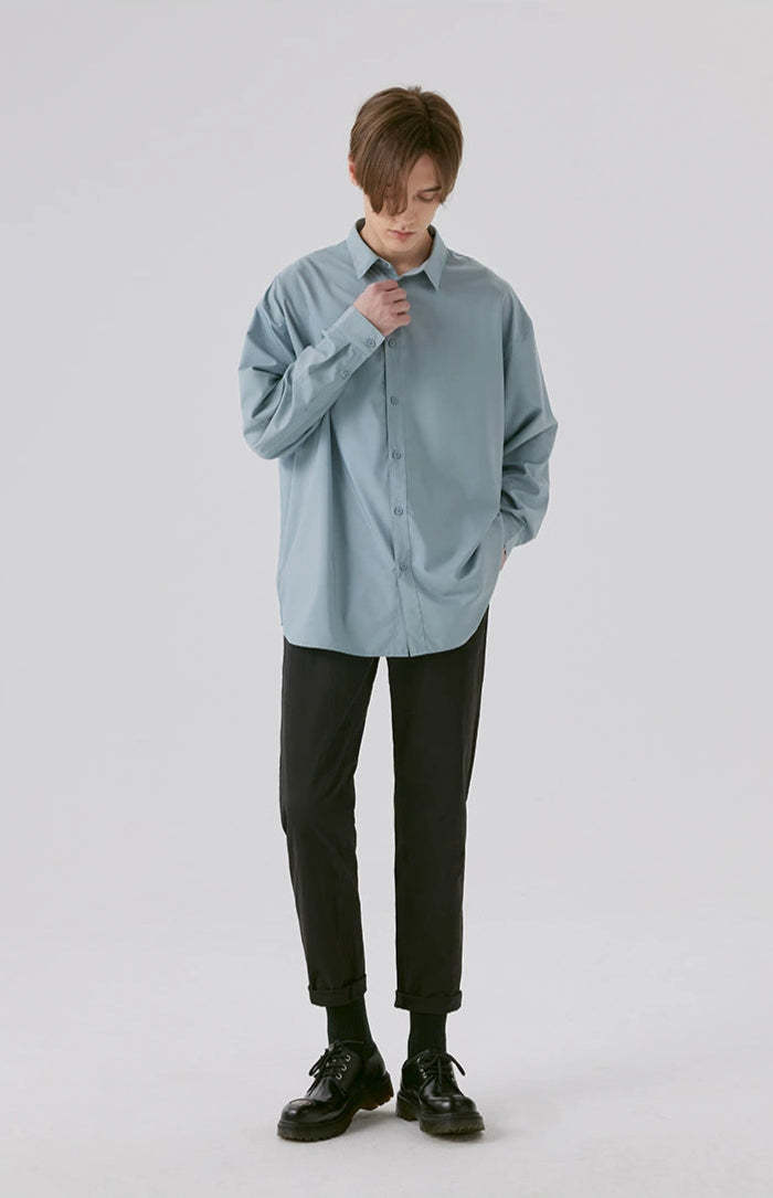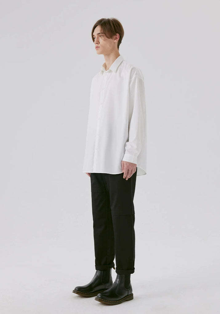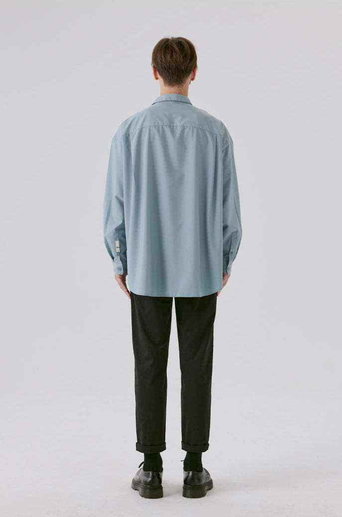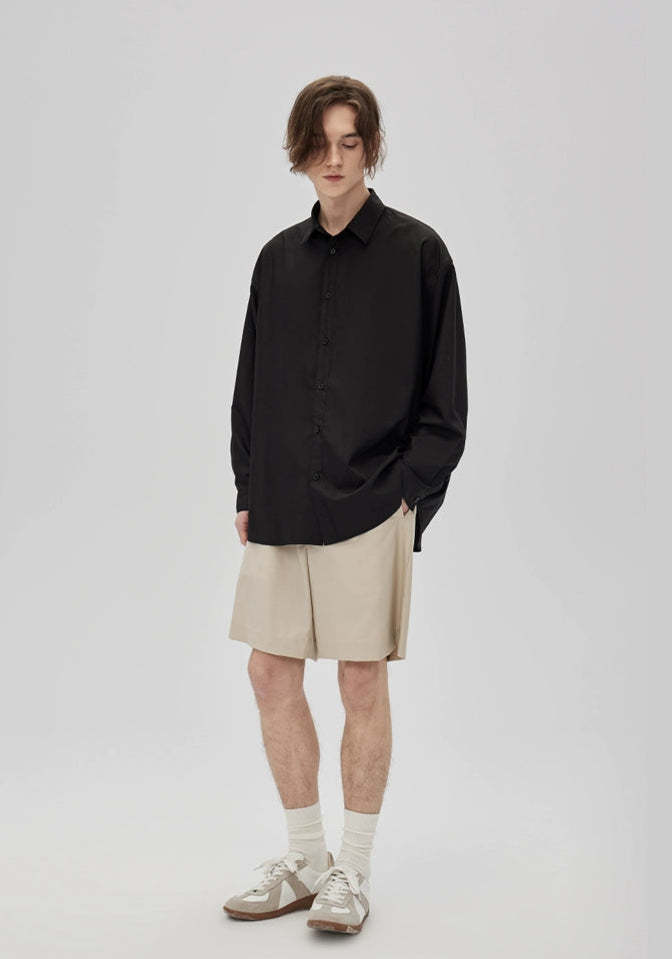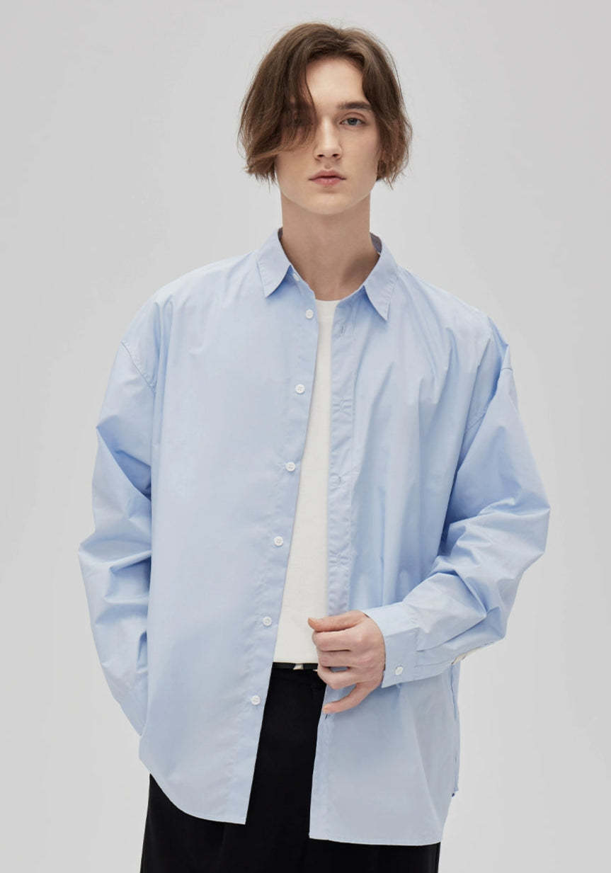 Designed with an effortless oversized silhouette, this drop shoulder button-up shirt is all about subtle presence and easy layering.