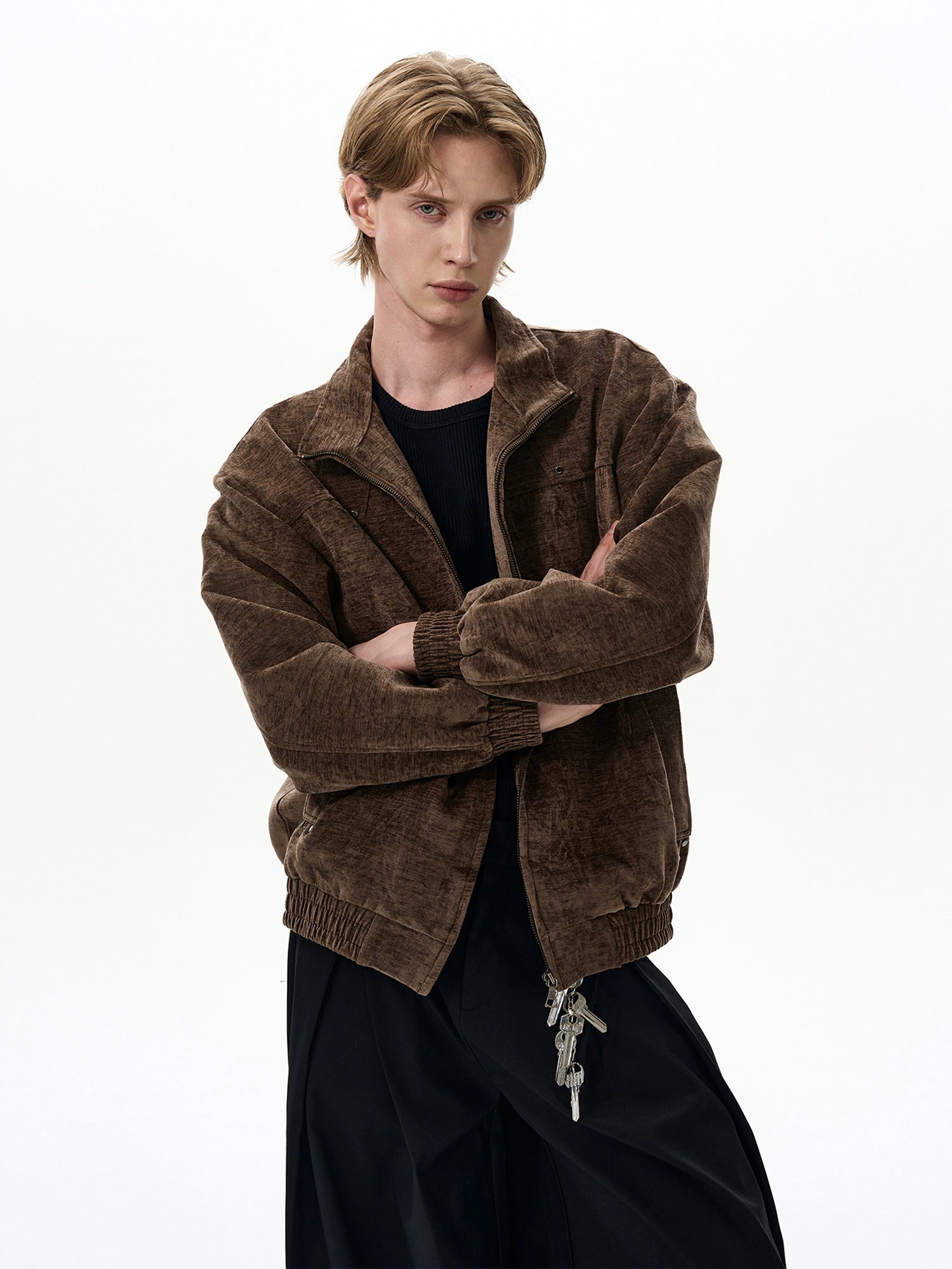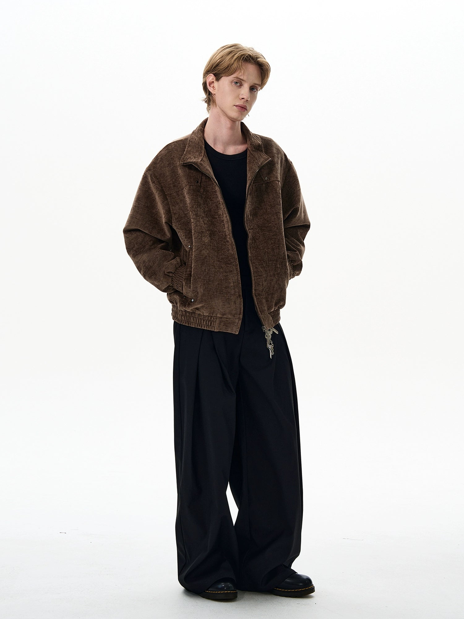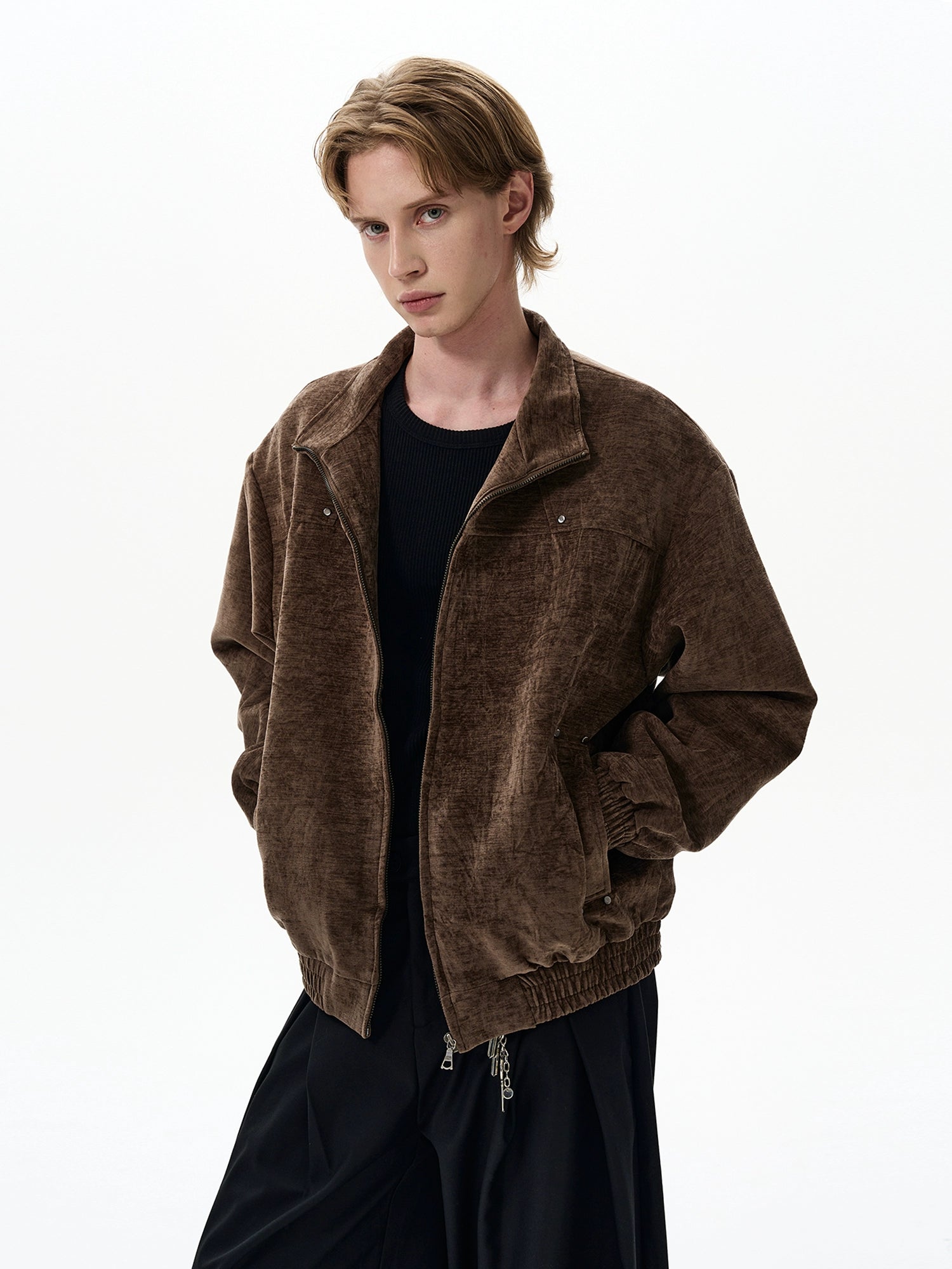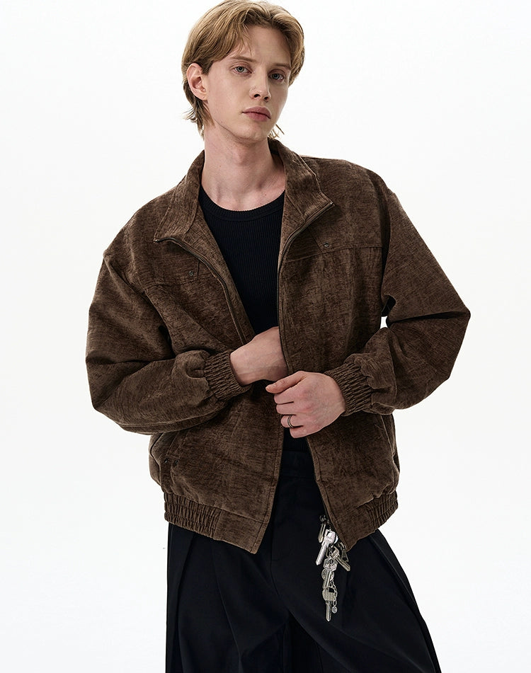 Crafted with a paneled construction and a subtle washed finish, this zip-up jacket elevates casual wear with intention. Elastic trim at the cuffs and hem adds structure, keeping the fit clean while still easygoing. It's the kind of layer you’ll grab for anything—on your way out to meet friends, running errands, or pulling a look together with minimal effort.