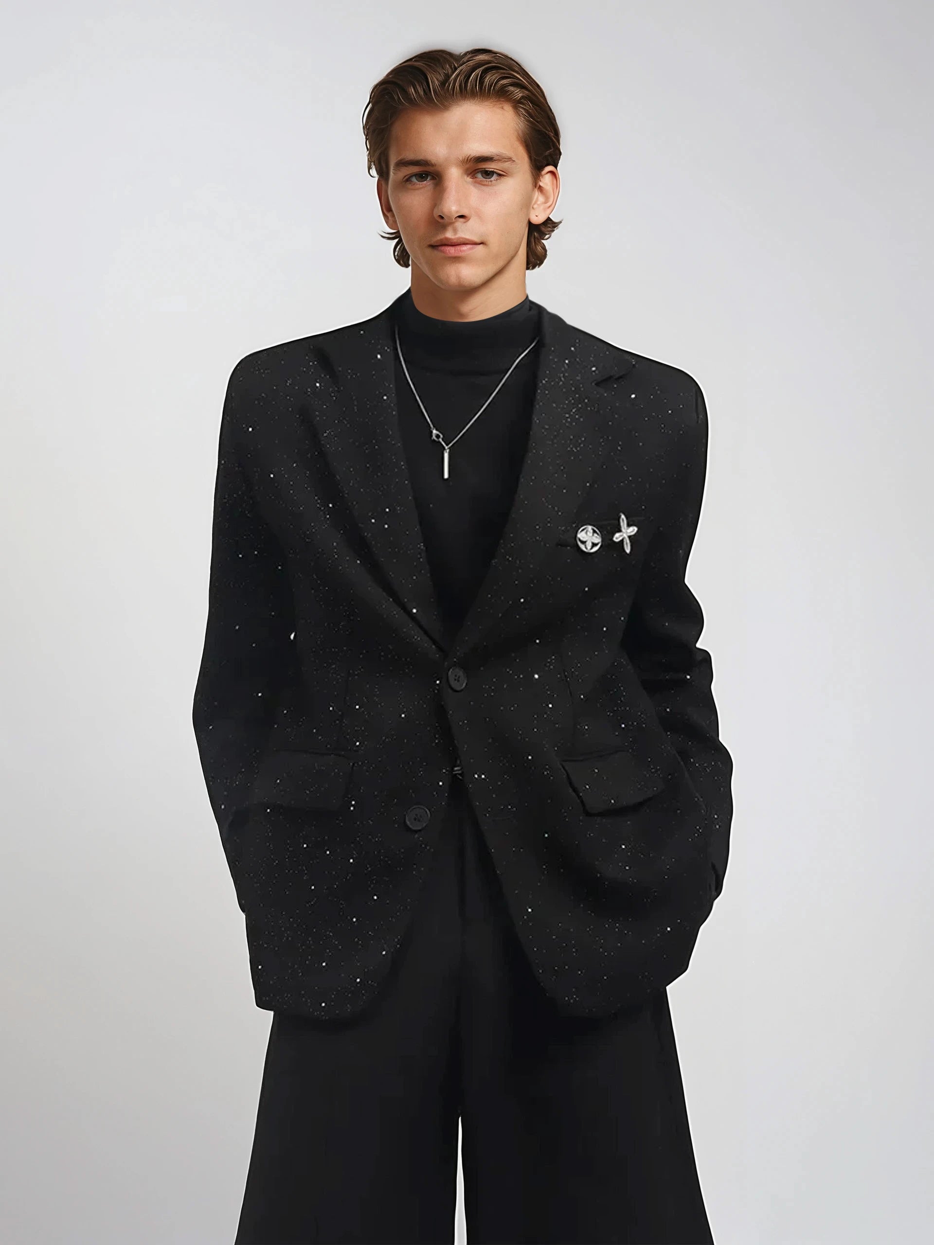 This oversized blazer brings together a starry speckled pattern and clean structure to offer a sharp, low-effort piece that stands out without trying too hard.