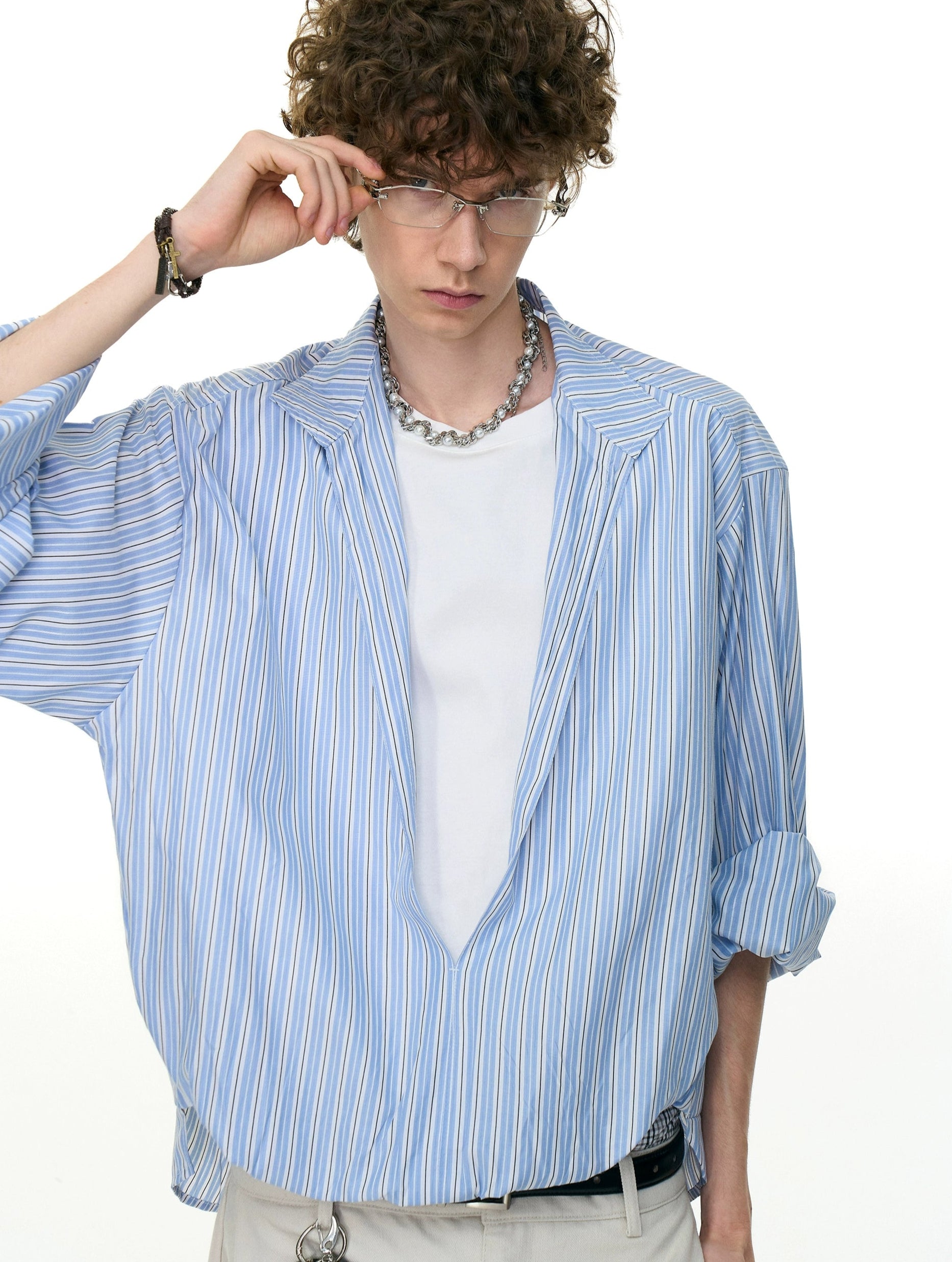 Effortlessly laidback with just the right edge, this oversized stripe shirt brings a relaxed structure with no buttons and a bold deep V-neck cut that stands out without trying too hard.
