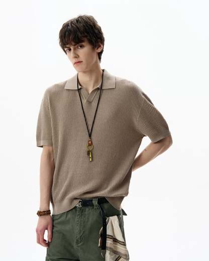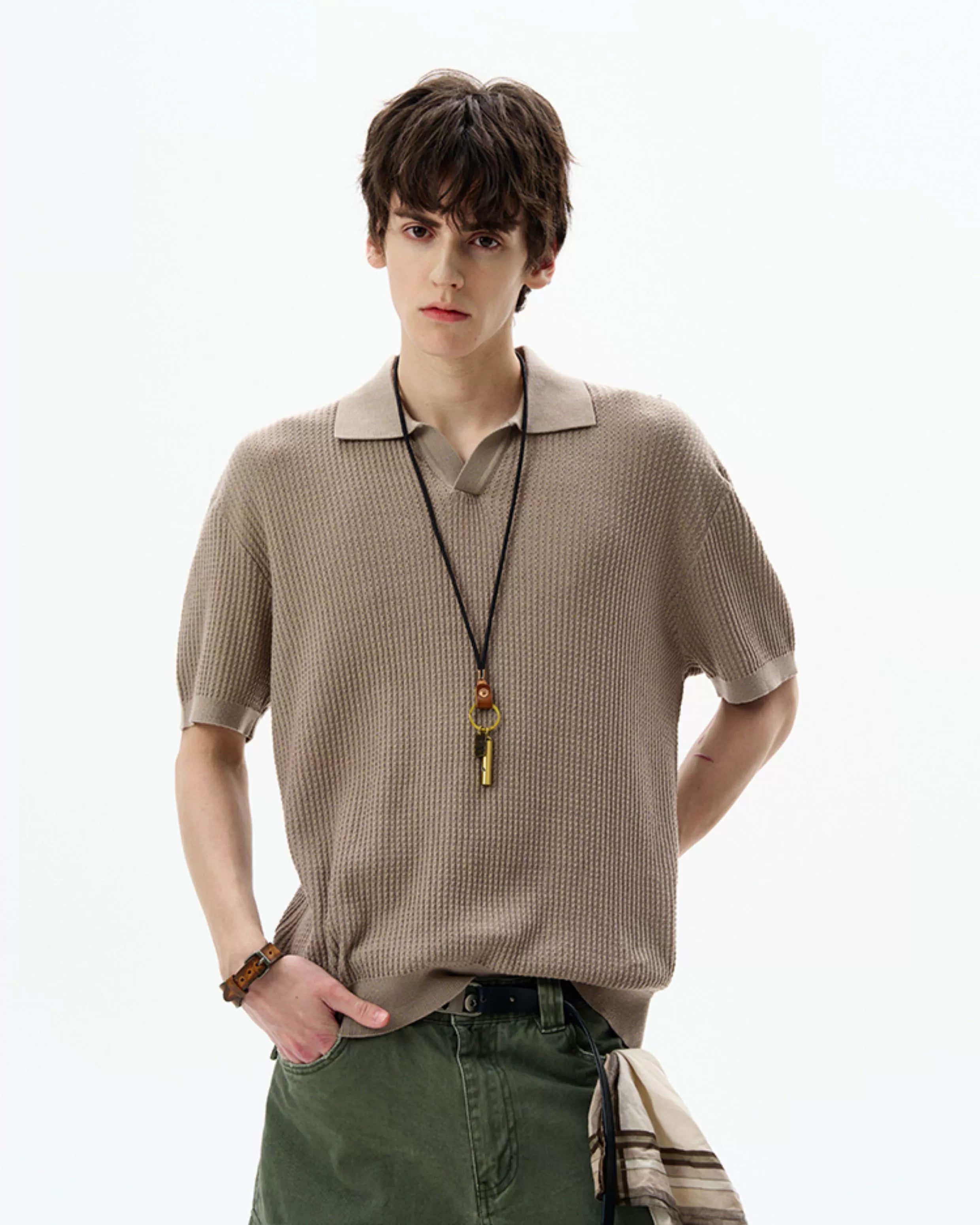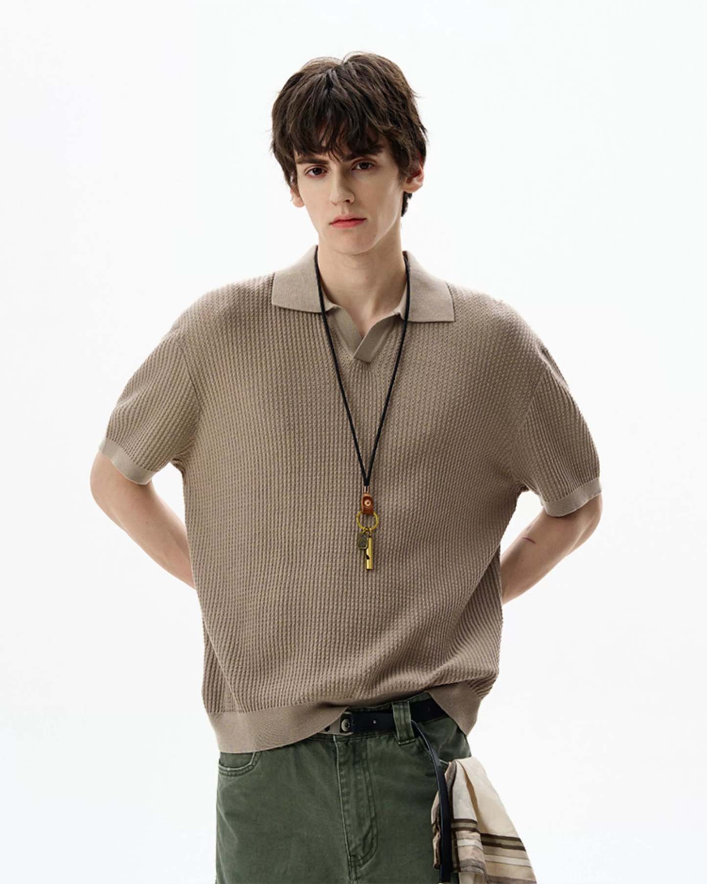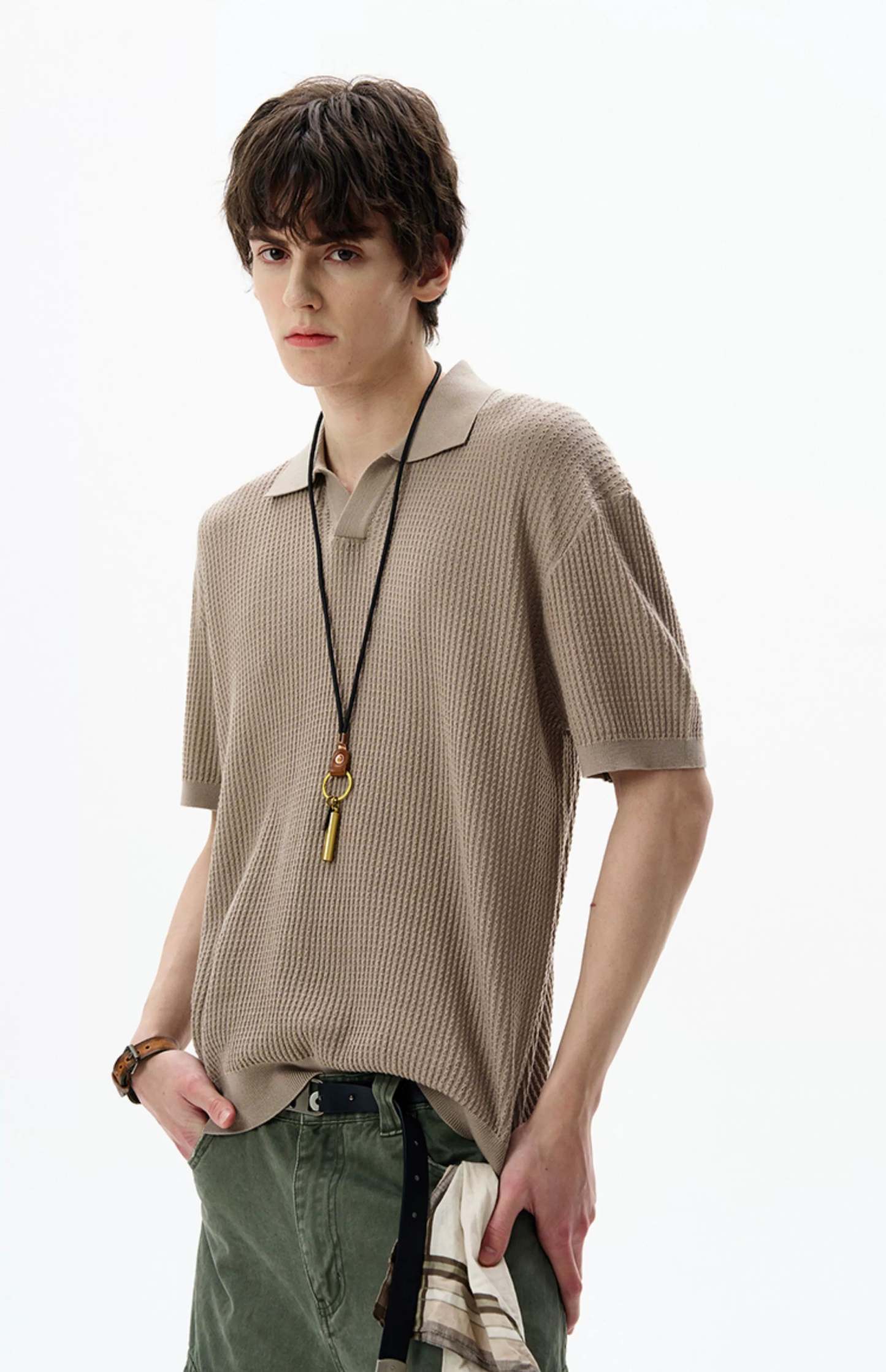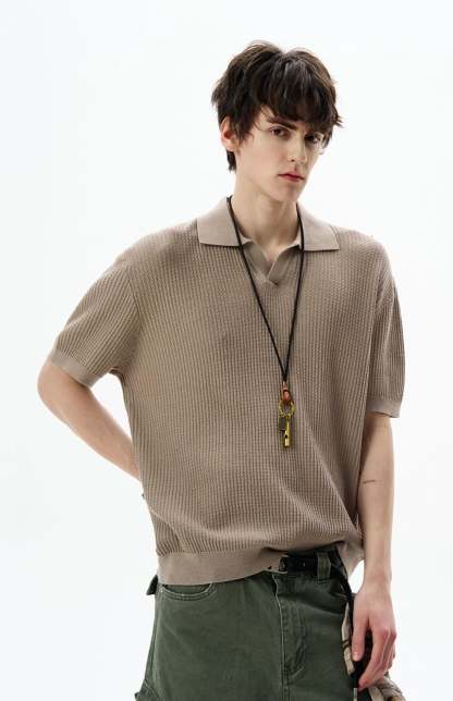 Easy to pair with woven trousers, work pants, or wide-leg denim—this knit polo moves between casual meetups, laid-back evenings, or dressed-up street looks. It's a piece that fits into a wardrobe built on comfort, versatility, and personal style without being overly polished.