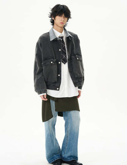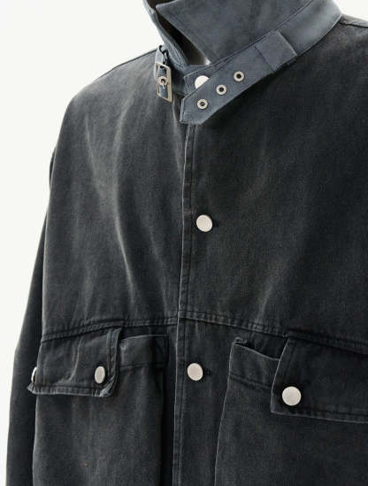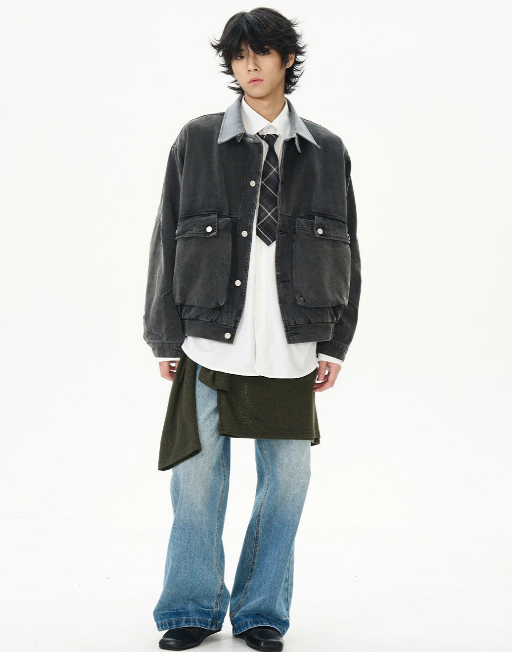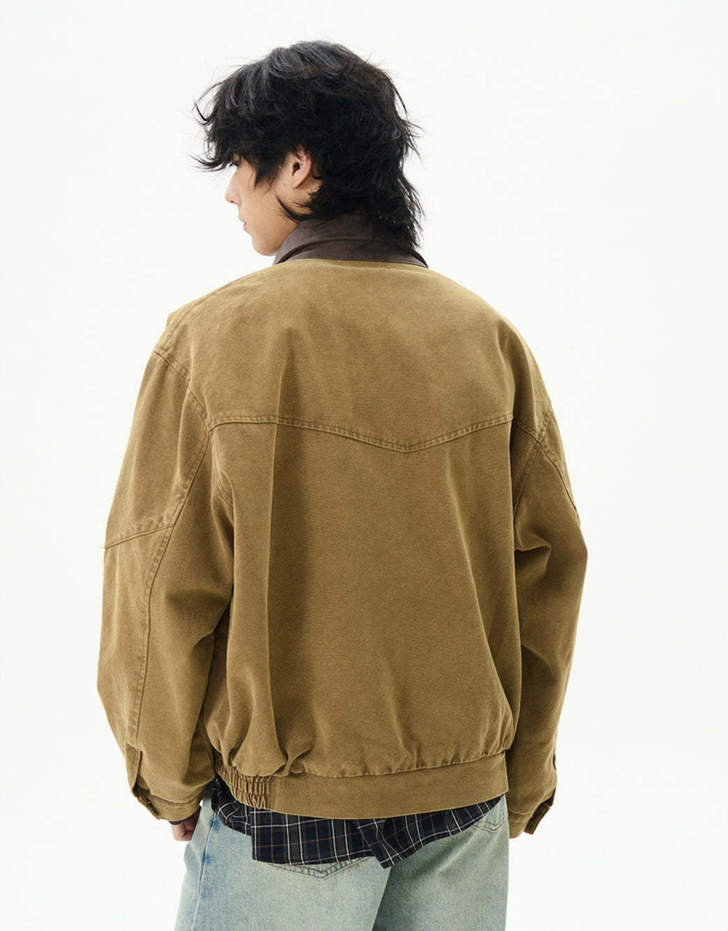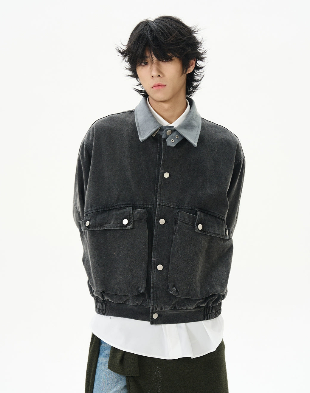 The Oversized Worker Button Jacket with Contrast Collar strikes the perfect balance between rugged workwear aesthetic and laid-back, contemporary style.