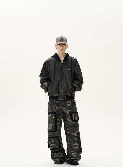 Designed with pronounced ruched sleeves and subtle distressing, it delivers a textured, worn-in look that feels lived-in and effortless. The structured faux leather exterior is paired with a soft, padded lining for a comfortable yet substantial feel. Side welt pockets, rib-knit cuffs, and chunky zipper detailing add to the utility-inspired finish without trying too hard.