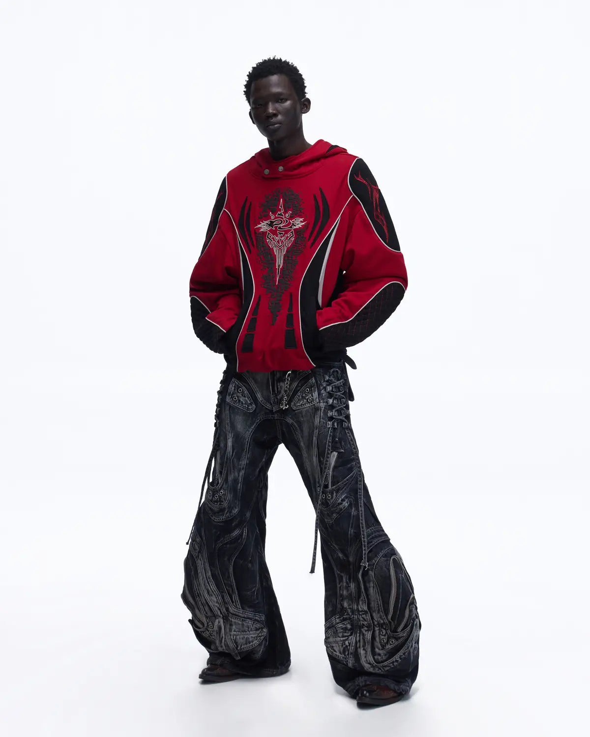 Personsoul Totem Color-Block Racing Hoodie