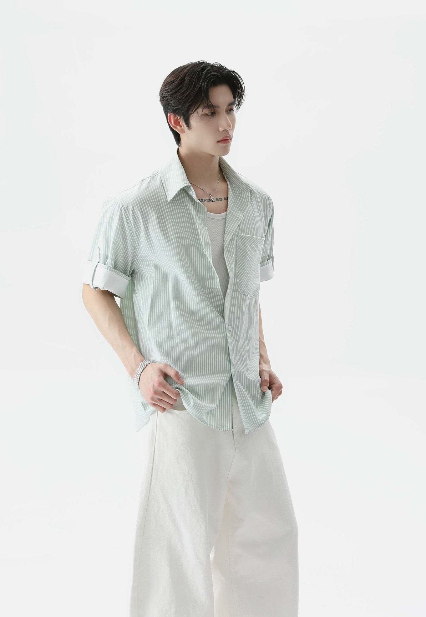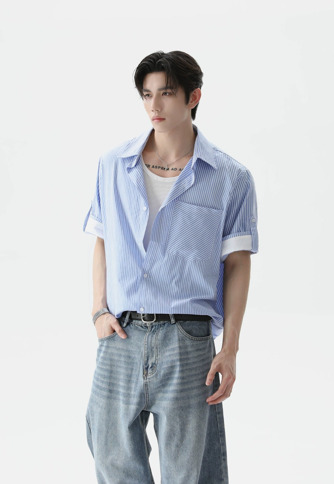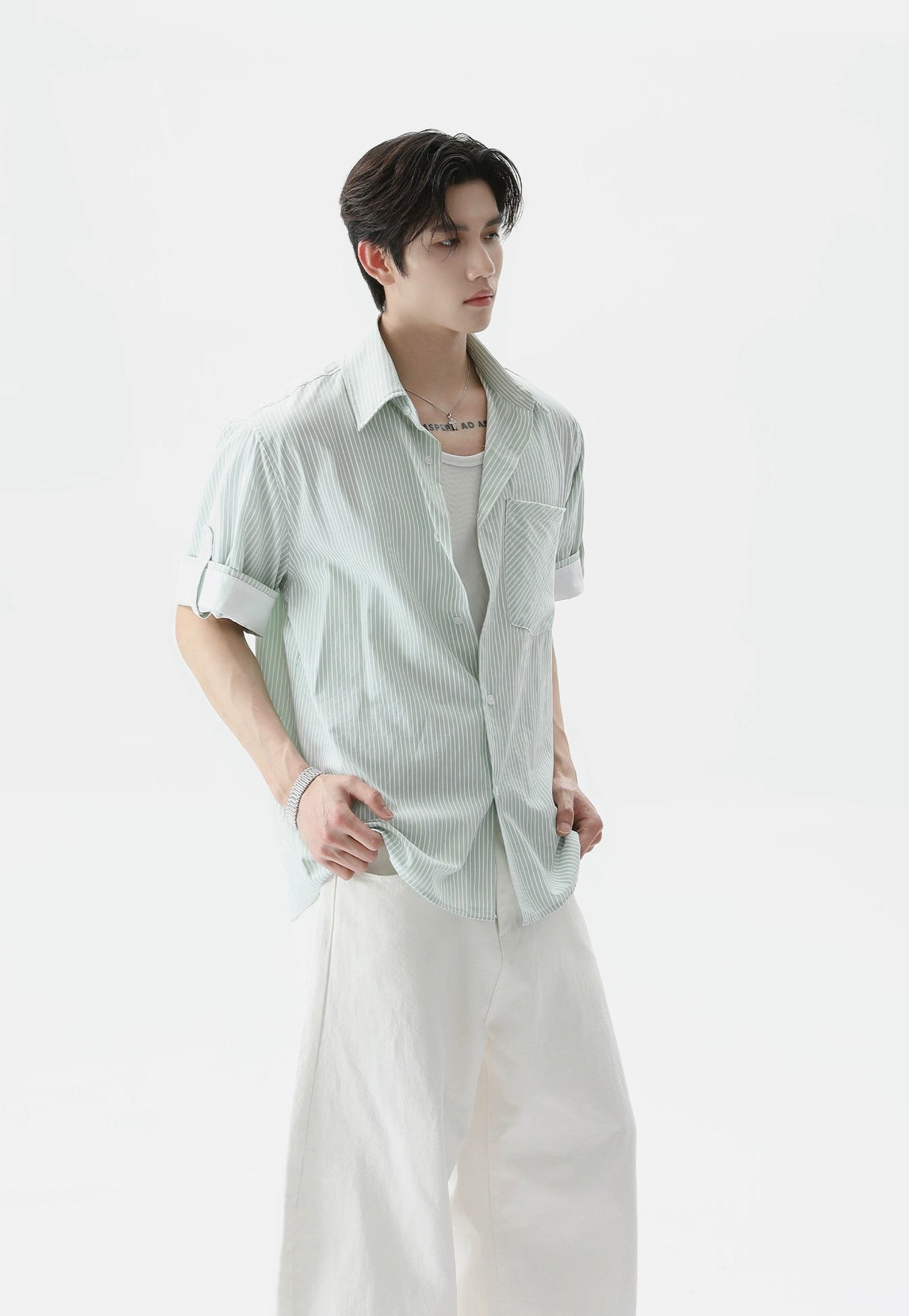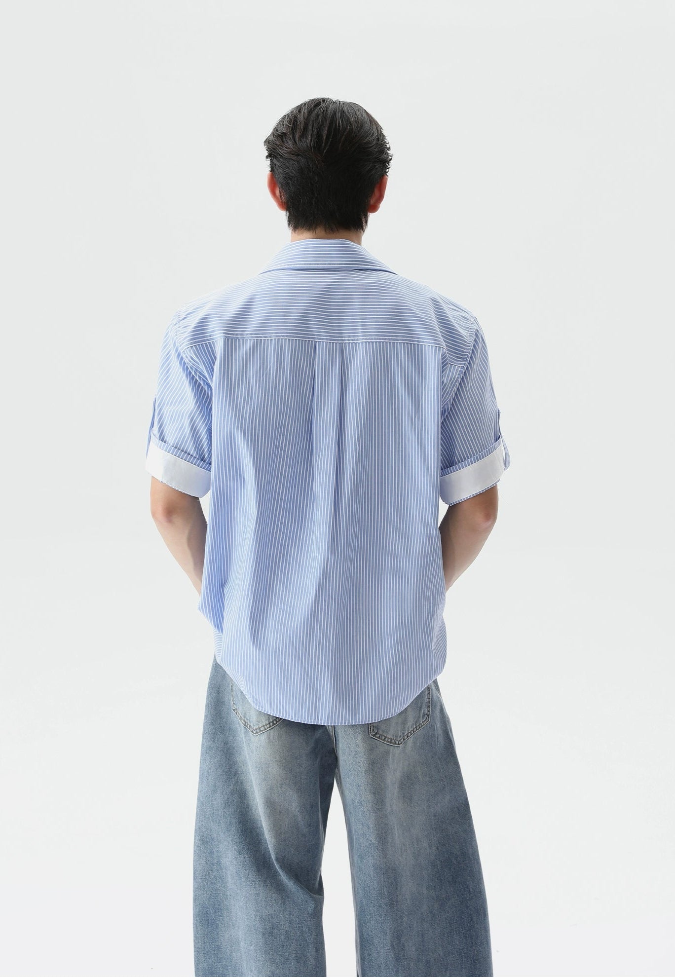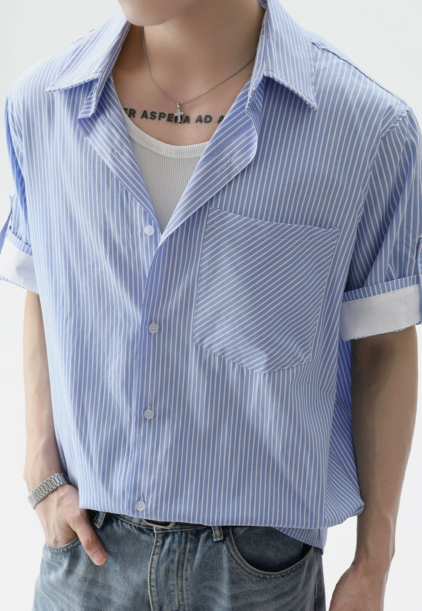 The Pinstripe Contrast Short Sleeve Trim Button Shirt brings a relaxed structure to your wardrobe, making it an easy statement piece without trying too hard.