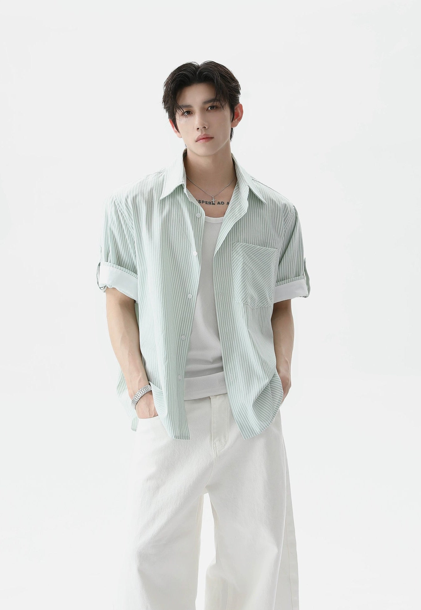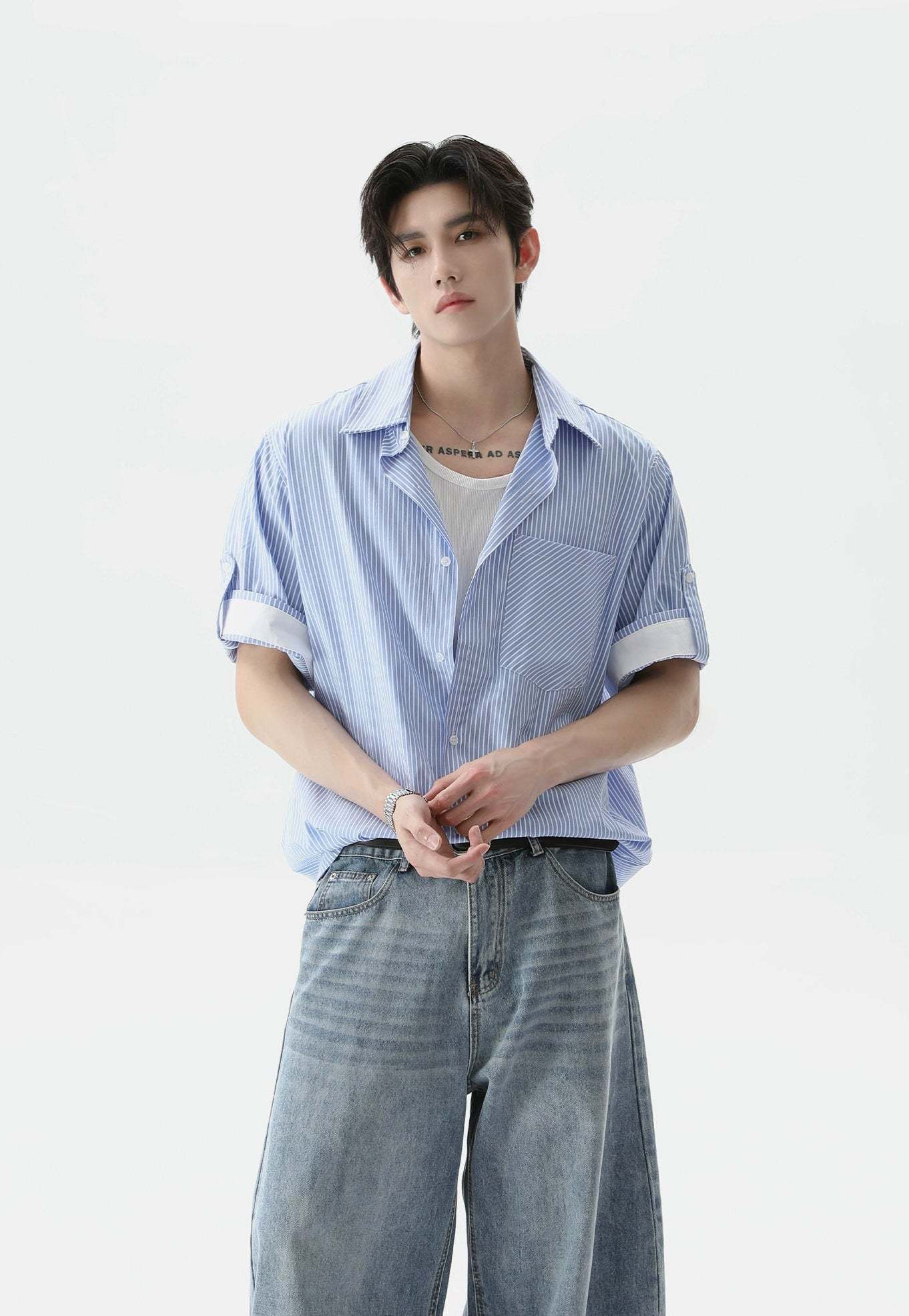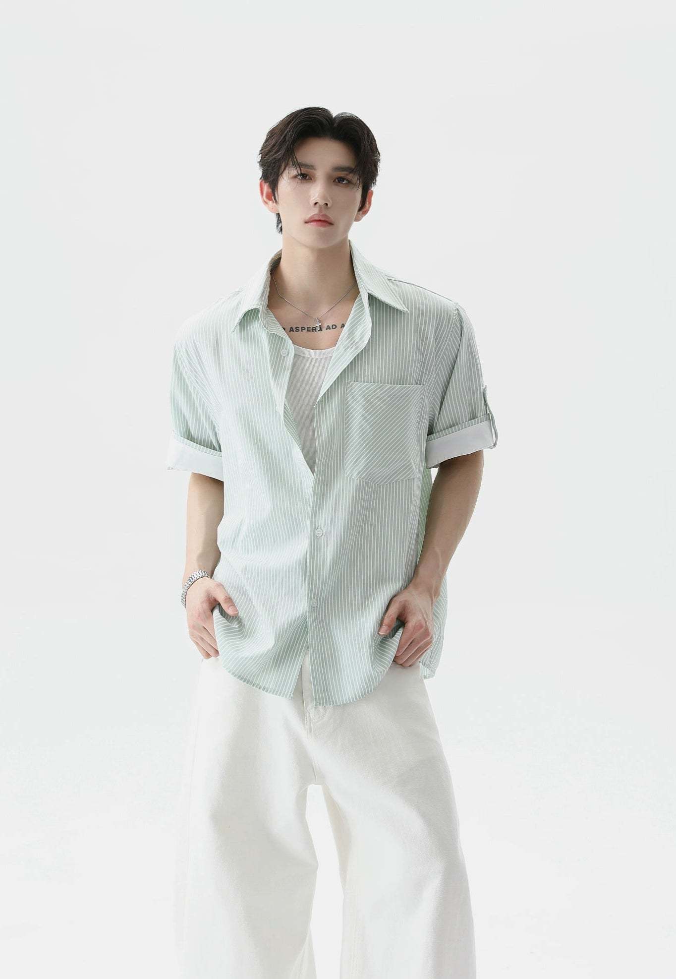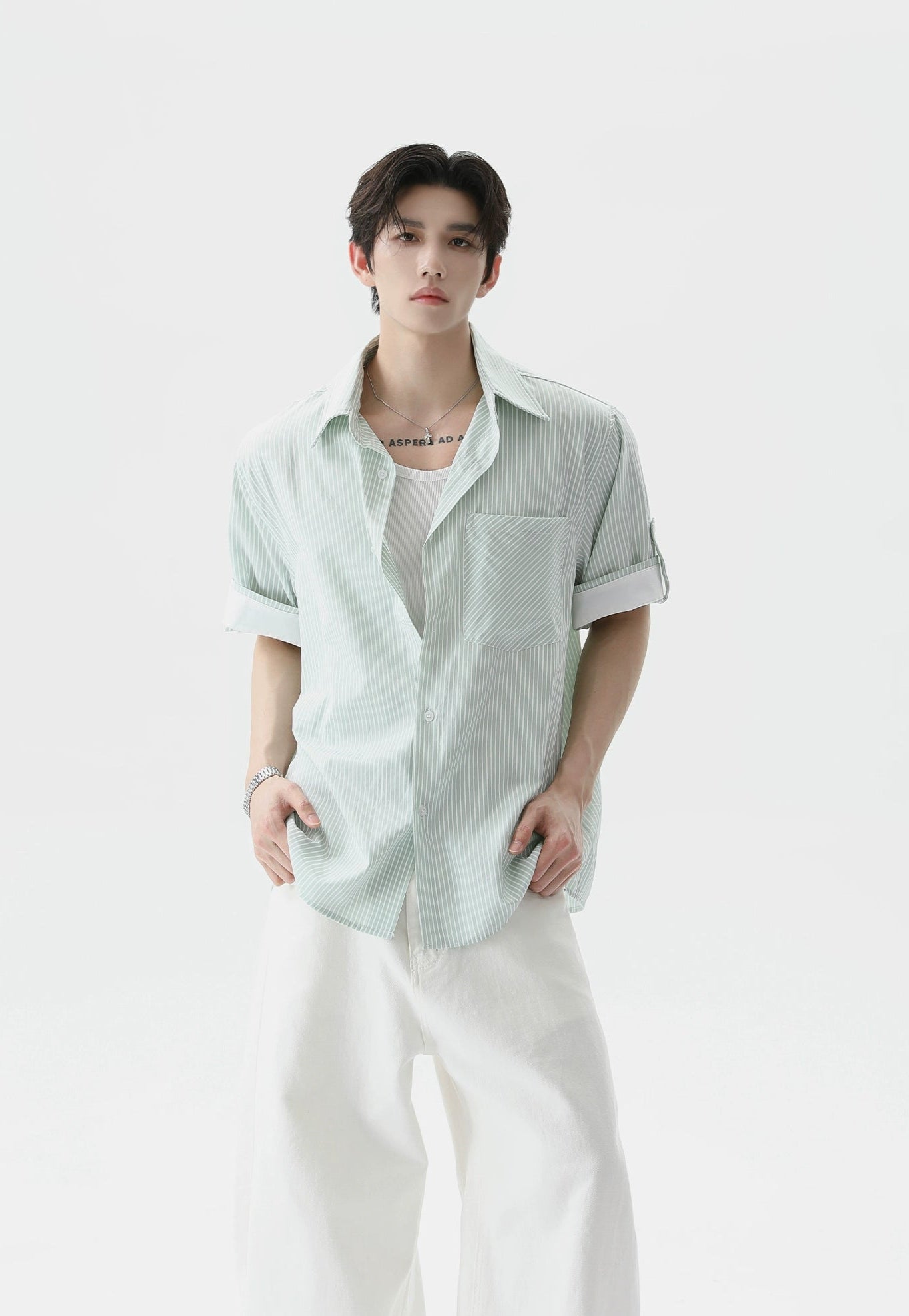The Pinstripe Contrast Short Sleeve Trim Button Shirt brings a relaxed structure to your wardrobe, making it an easy statement piece without trying too hard.