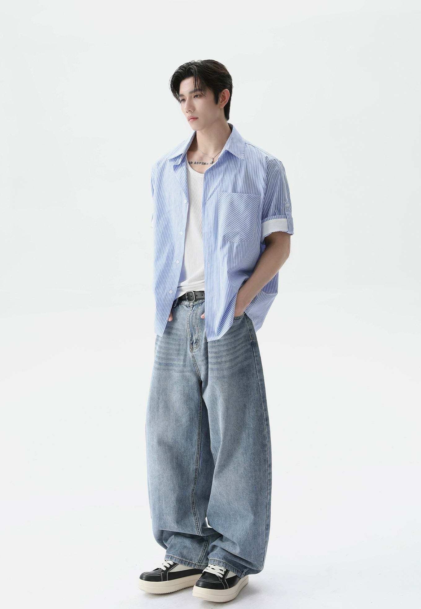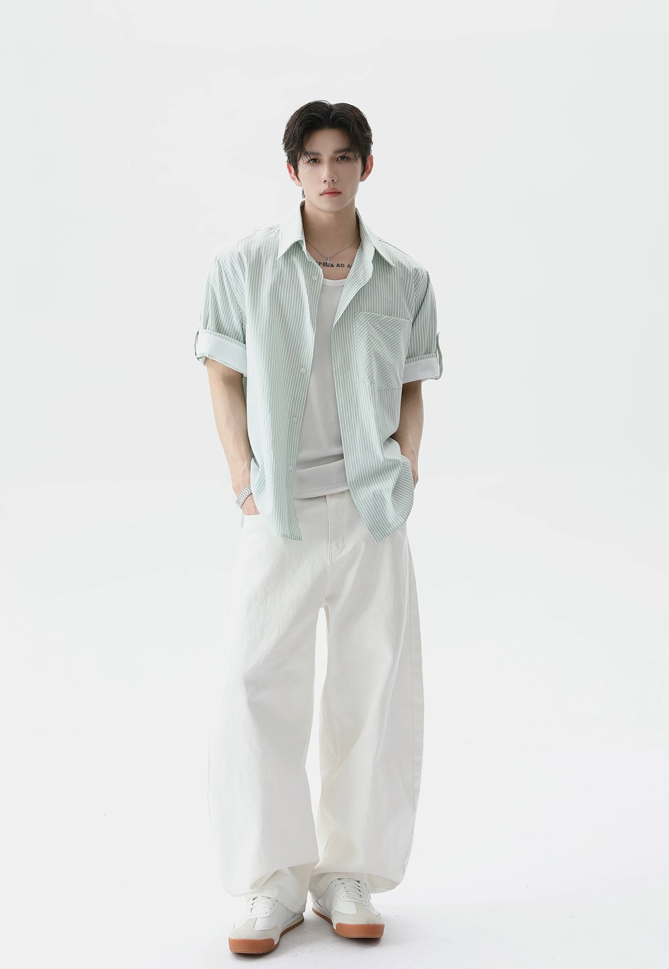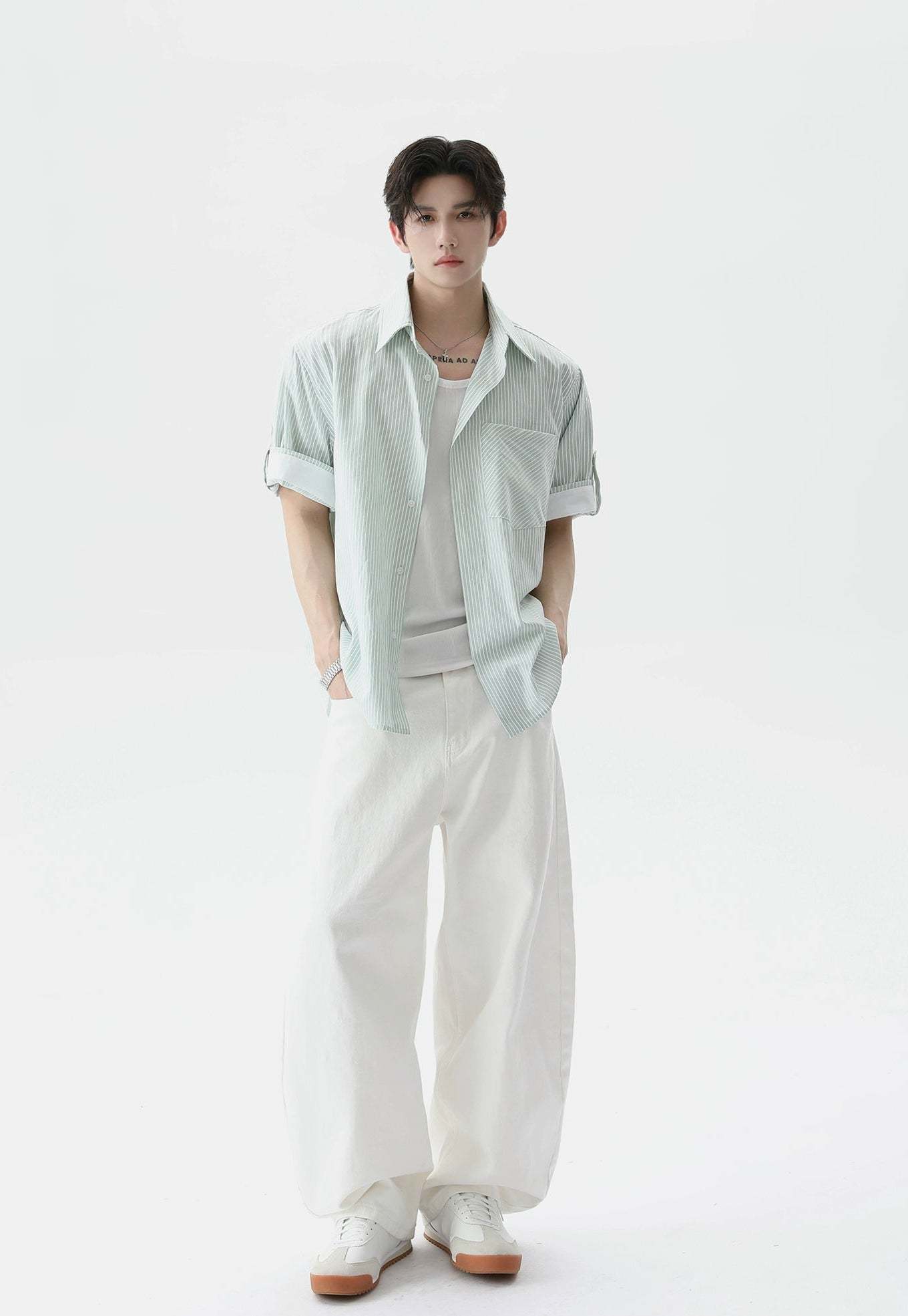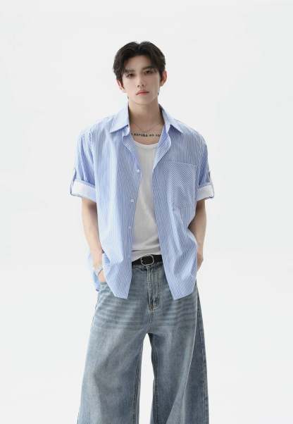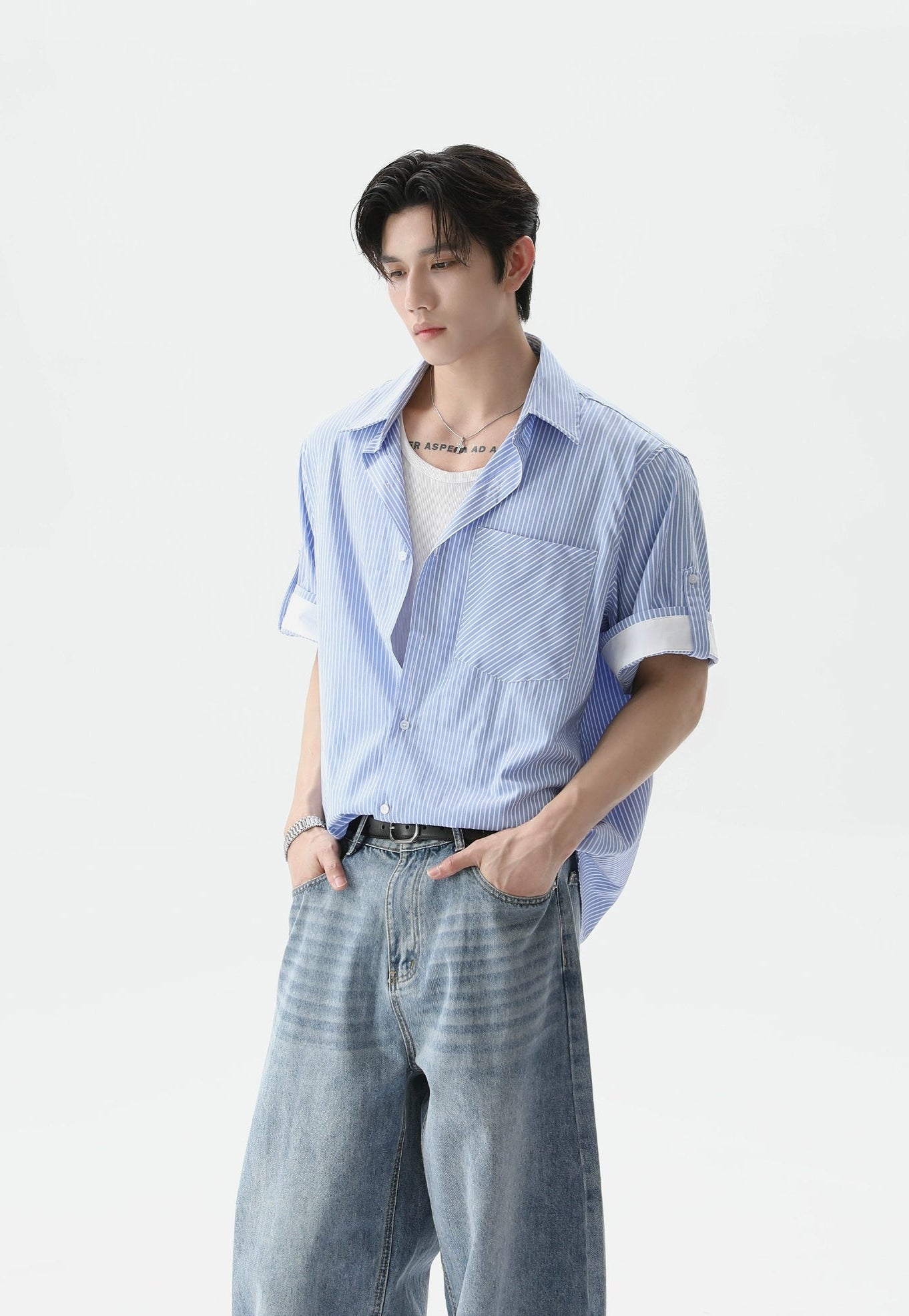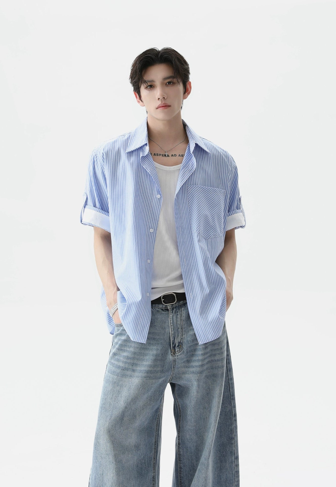 The Pinstripe Contrast Short Sleeve Trim Button Shirt brings a relaxed structure to your wardrobe, making it an easy statement piece without trying too hard.