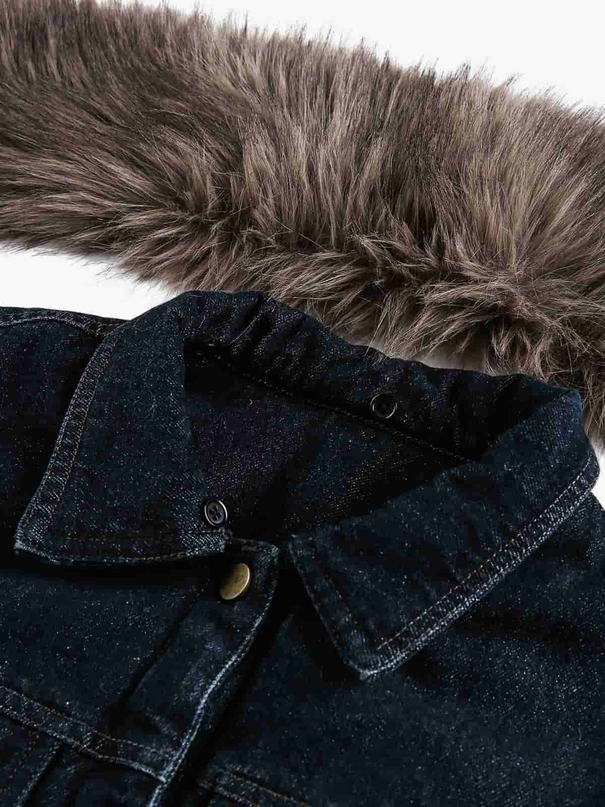 • Design Elements: Faux fur collar and cuffs, button closures, patch pockets