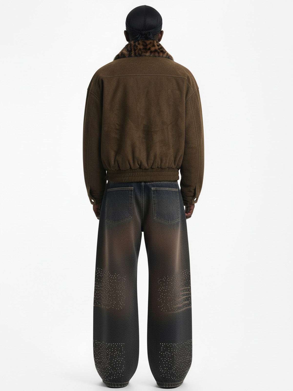 • Design Elements: Leopard print collar, buttoned chest pockets, ribbed cuffs