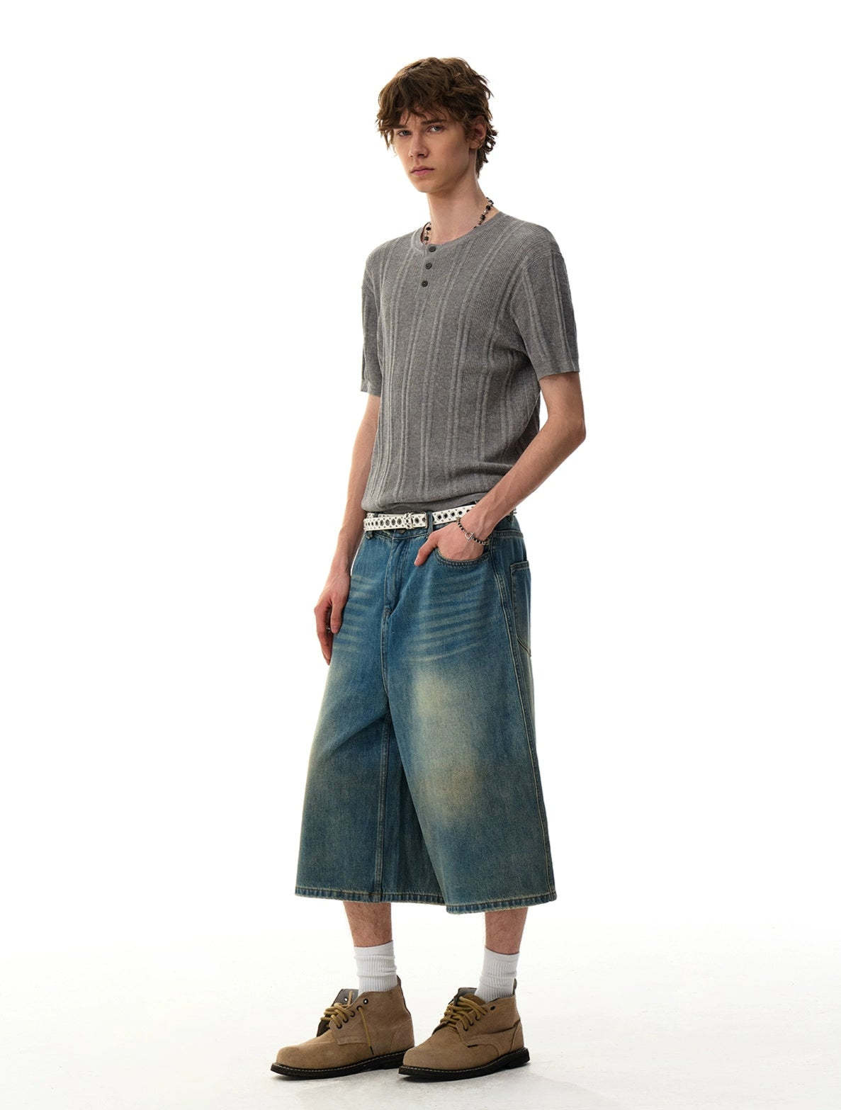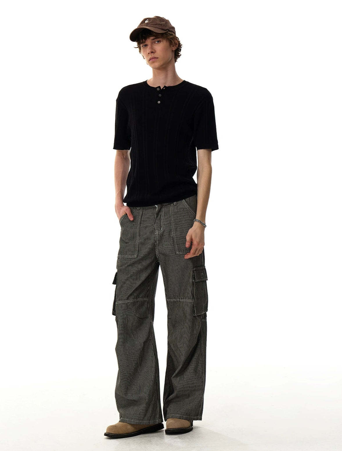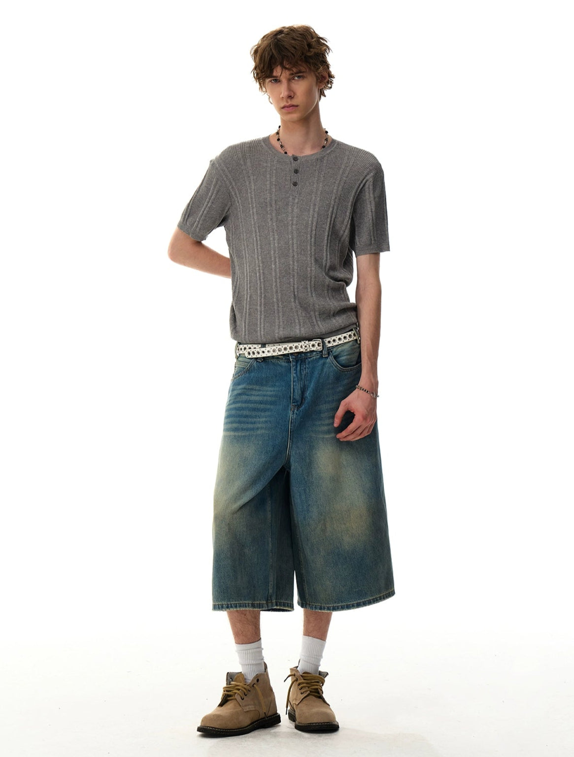 The Ribbed Knit Half Button Short Sleeve Shirt stands out with its subtly structured texture and laid-back finish, offering a clean look with just enough edge to stay interesting.