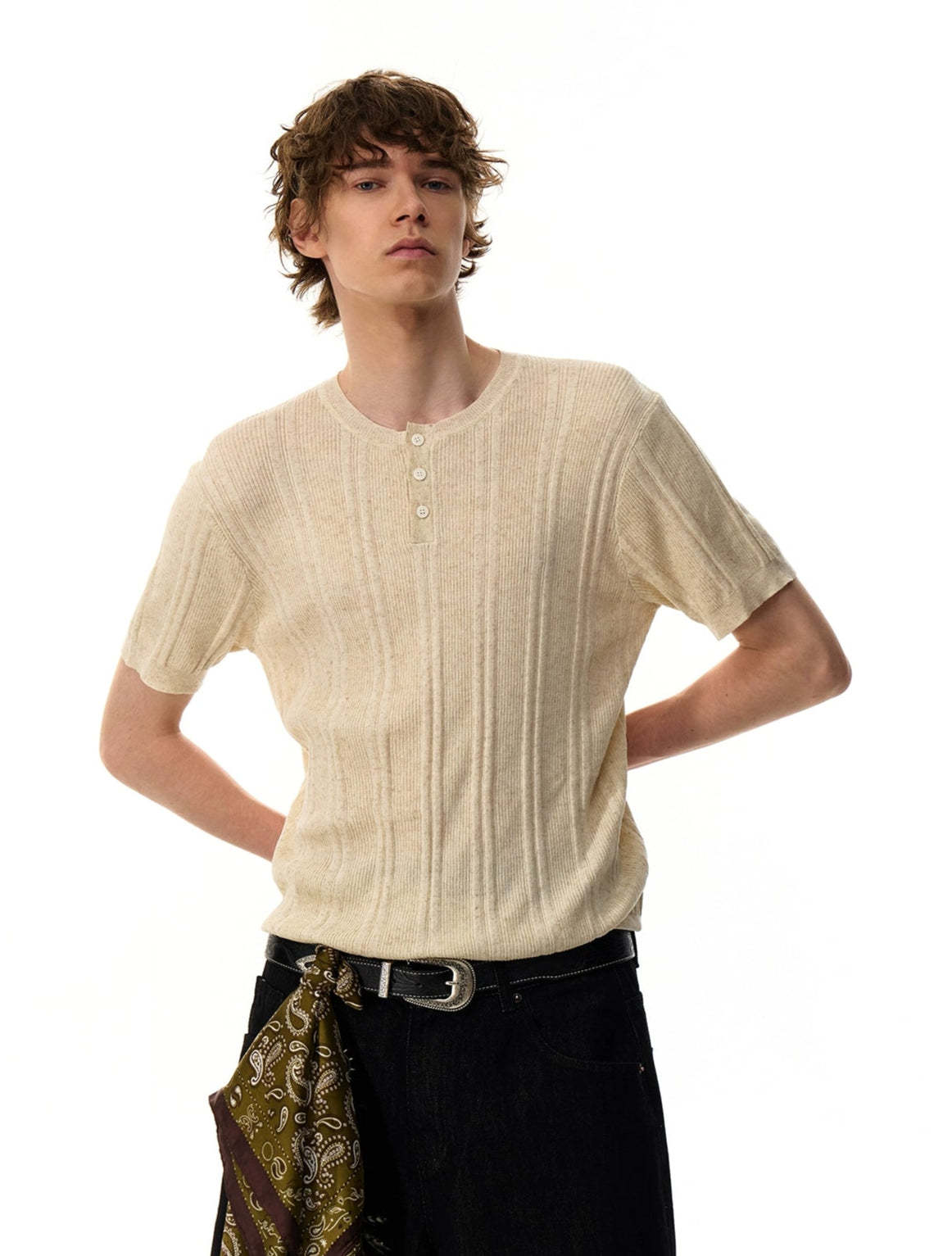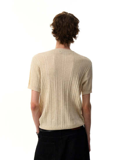 Made from a soft, breathable blend that includes linen, Tencel, acrylic, and nylon, this knit shirt features vertical ribbing and a fixed-button half placket for quiet detail. Its relaxed fit and midweight feel give it a natural drape that hangs just right without feeling oversized or boxy.