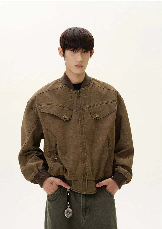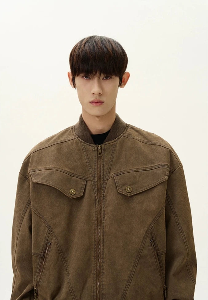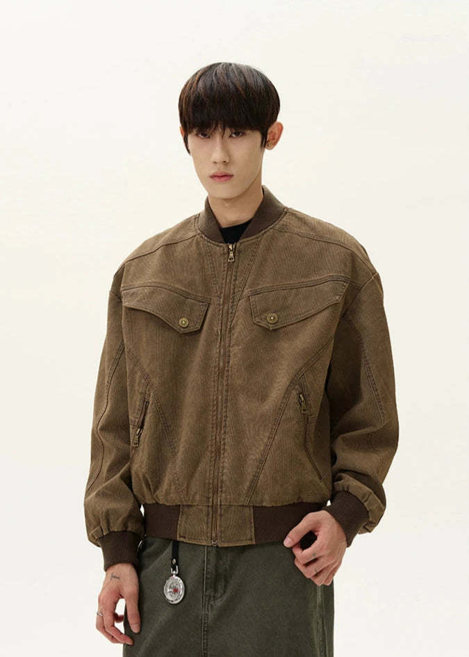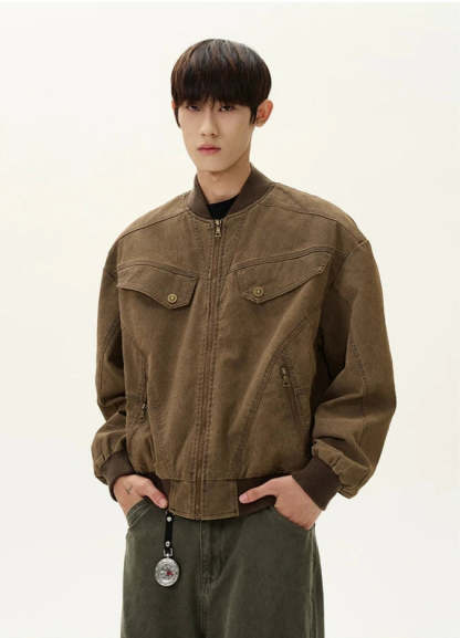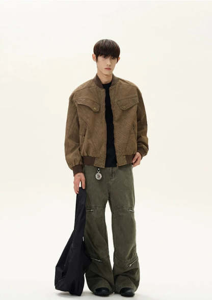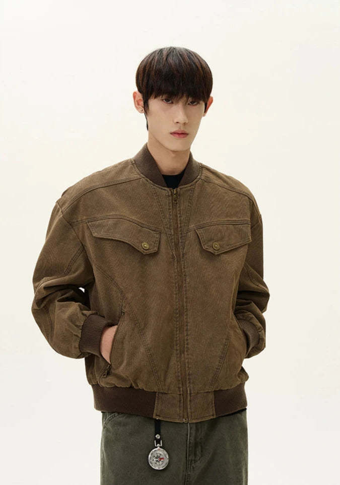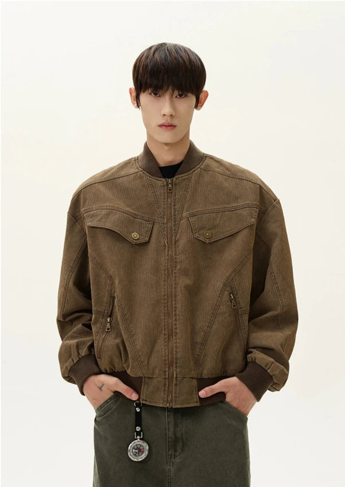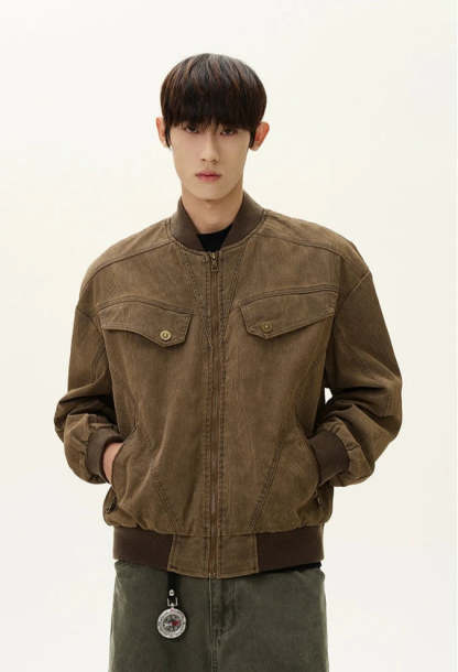 Crafted for the modern urbanite, our Ribbed Trim Bomber Jacket with Zip Pockets merges timeless style with a contemporary edge.