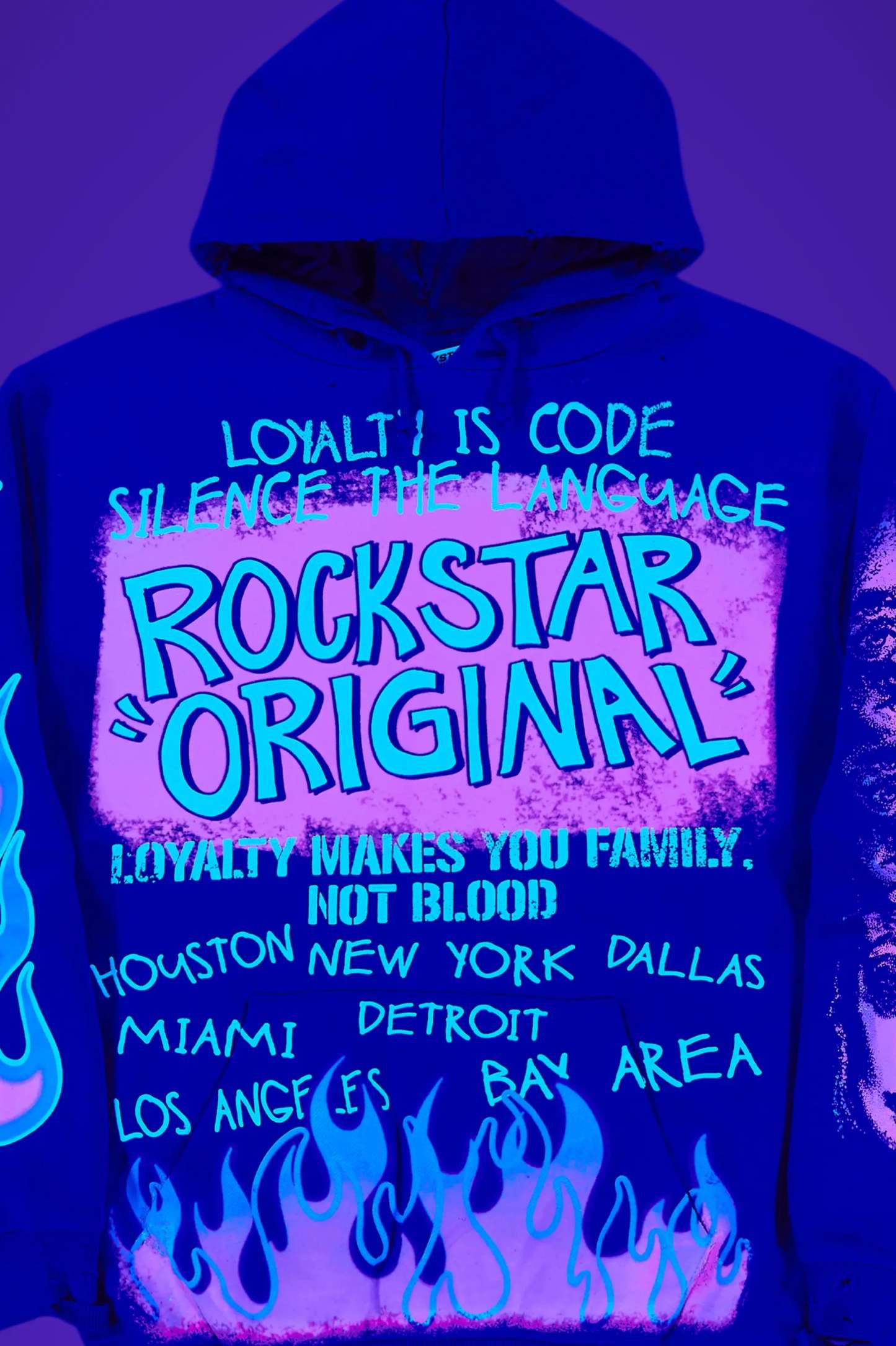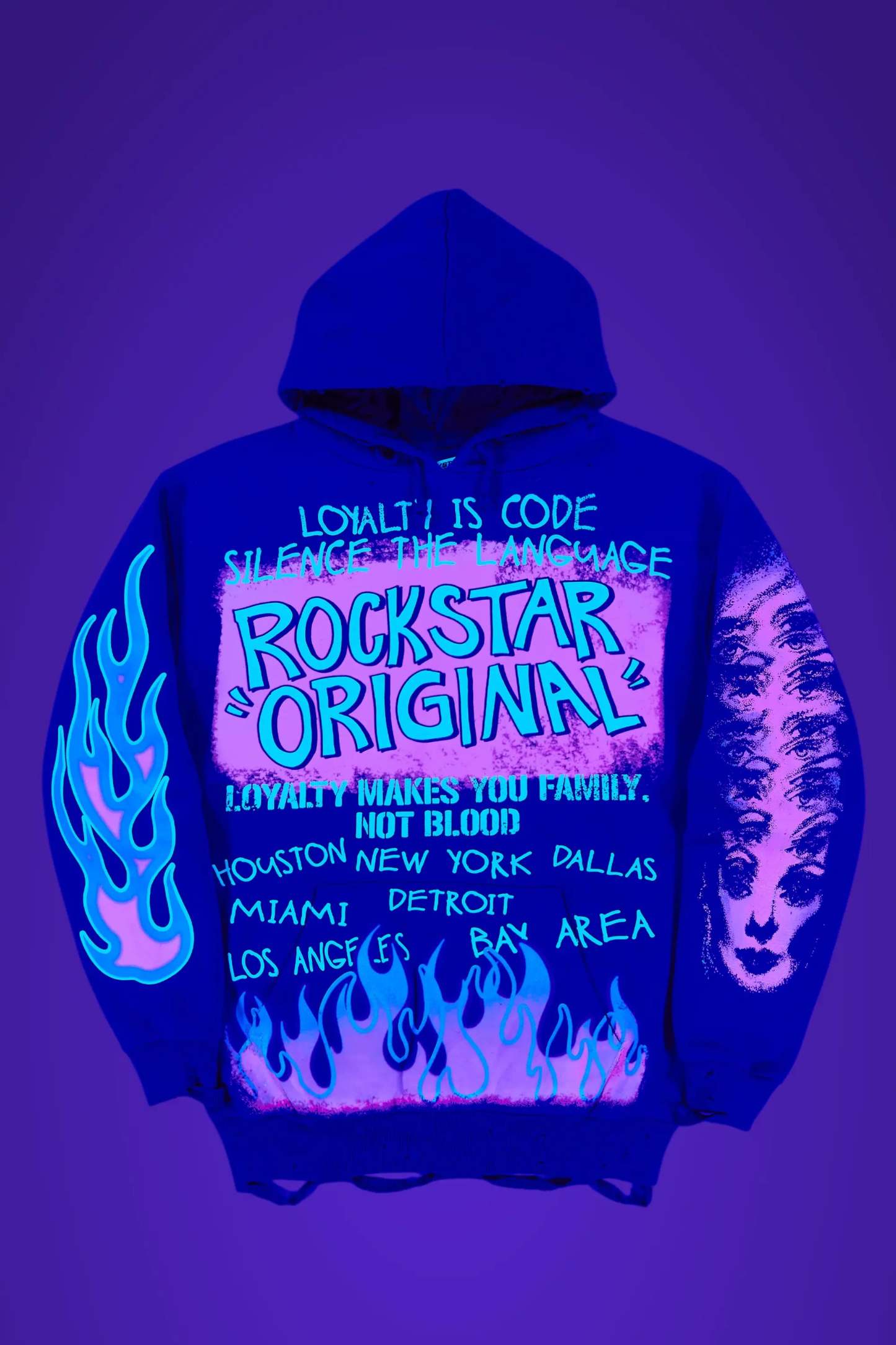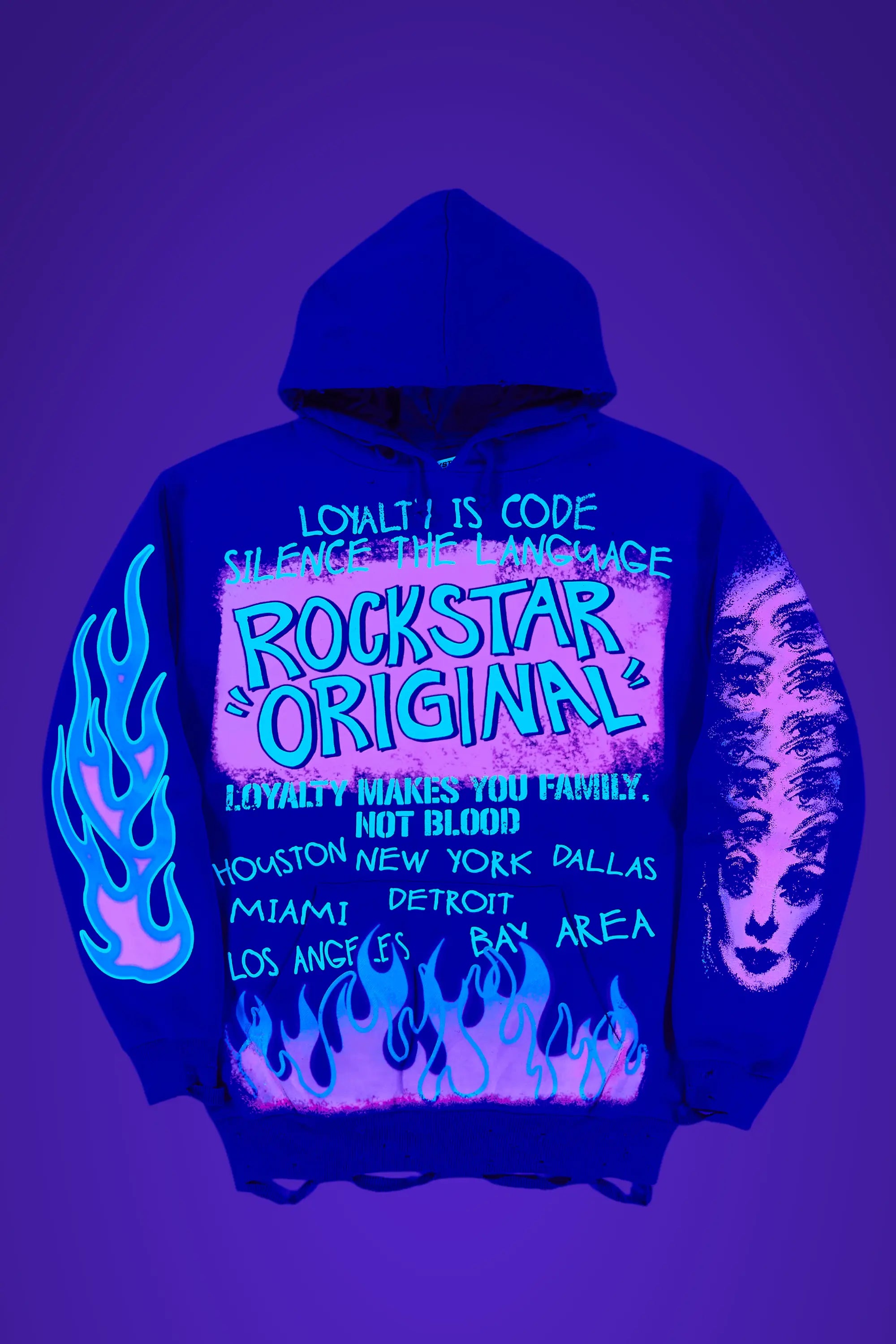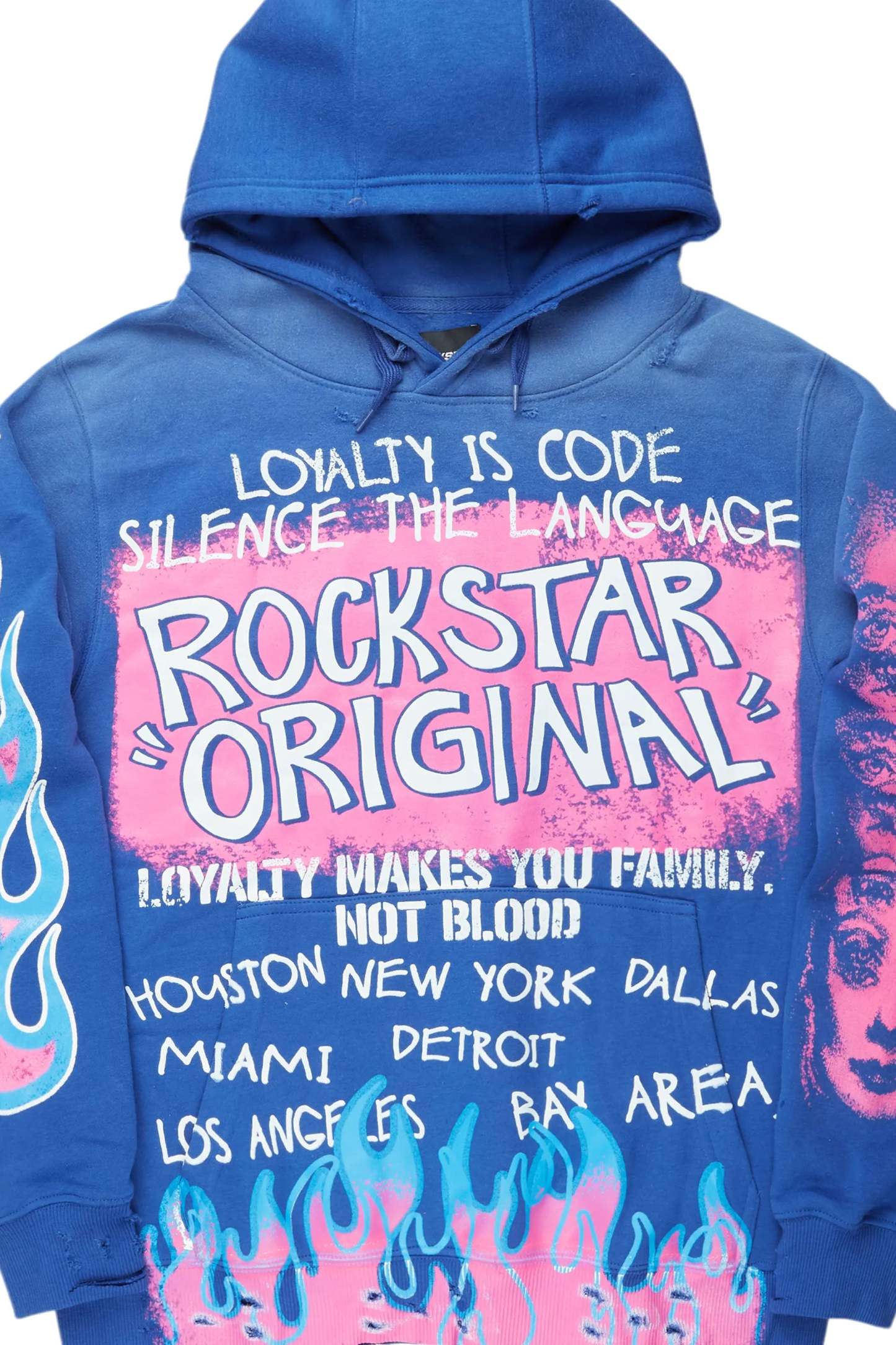 An urban streetwear hoodie for men in royal blue. Designed with organic cotton and custom detailing for a dope everyday style.