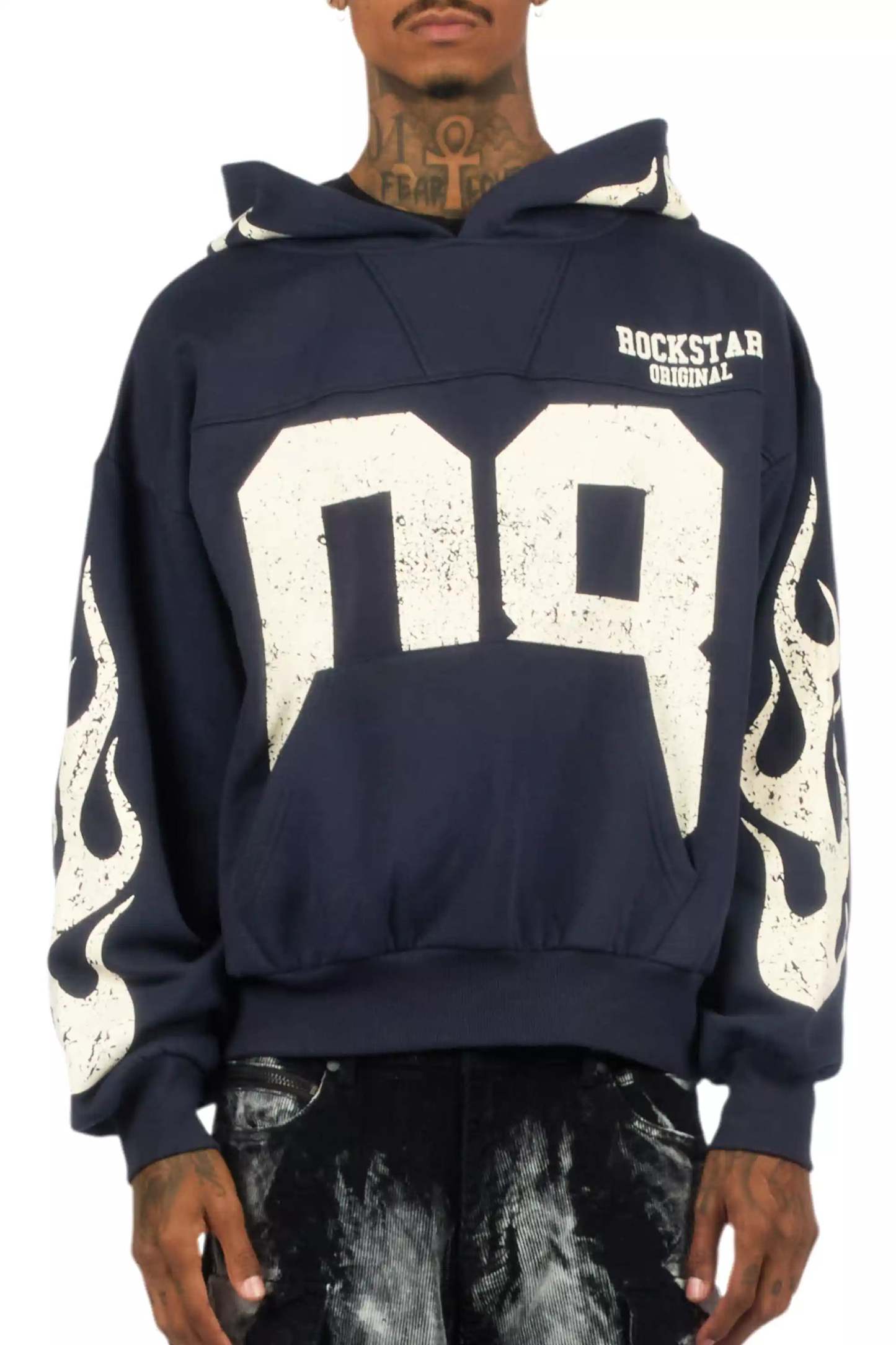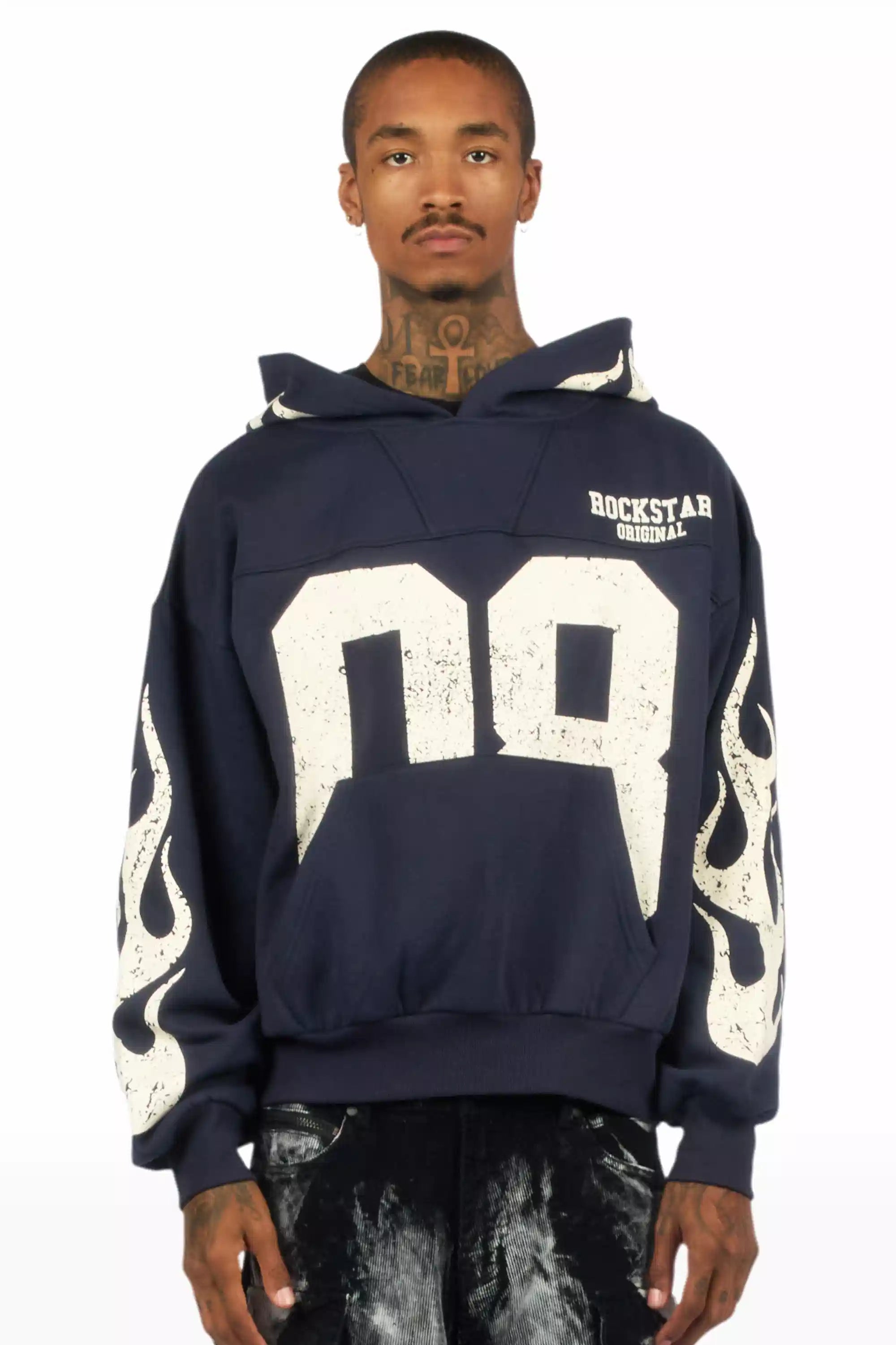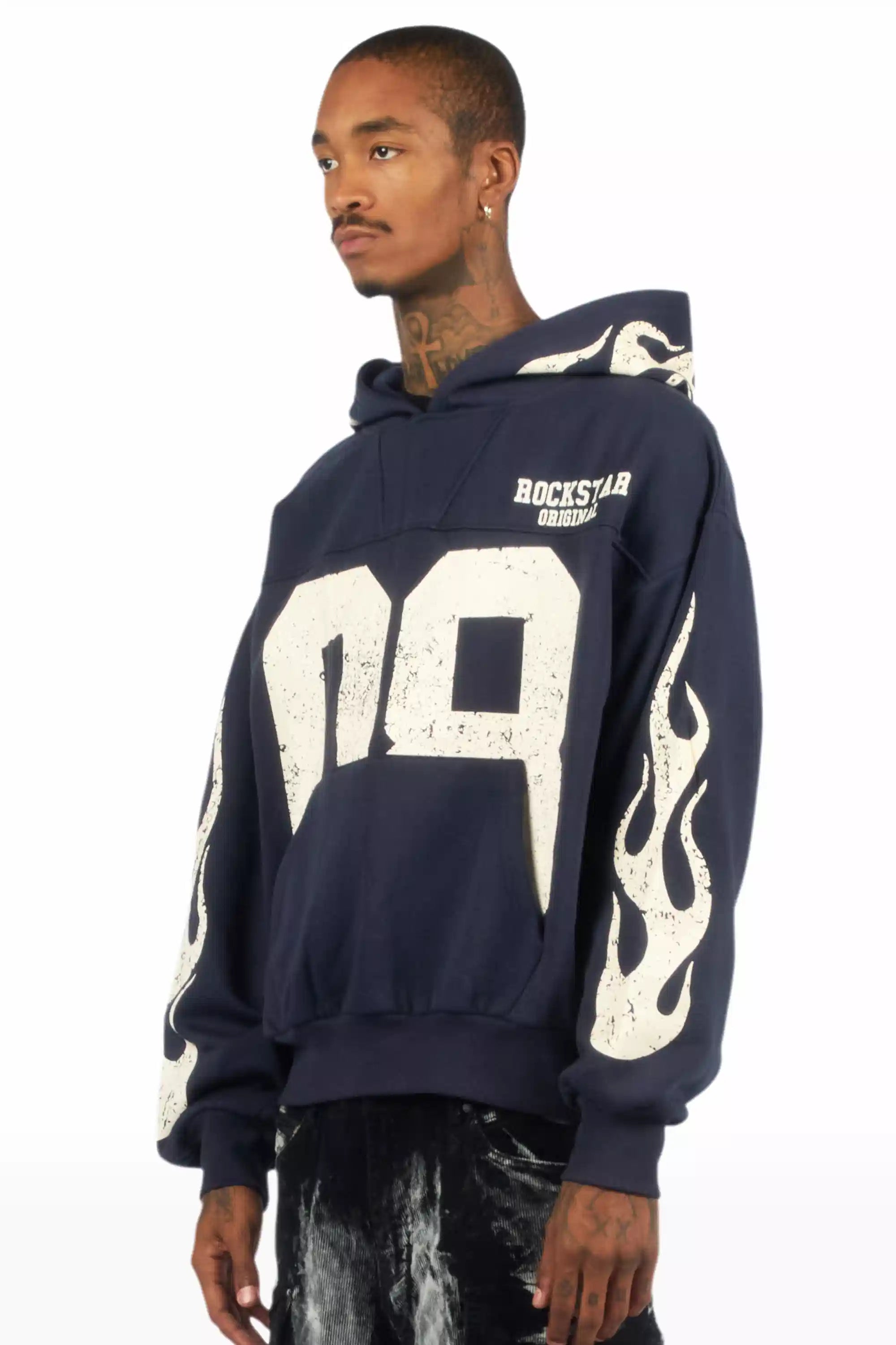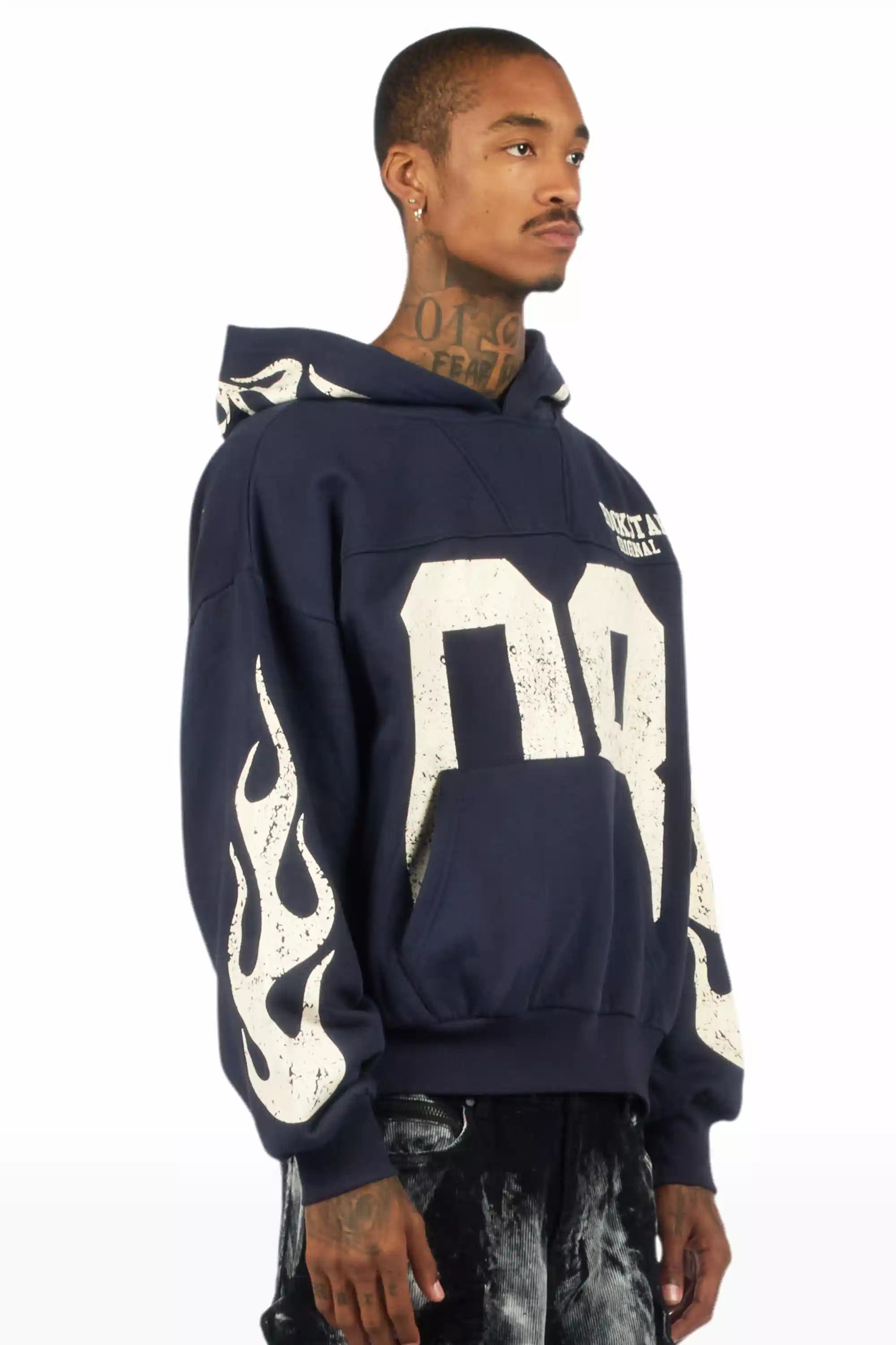 Aubin Navy Boxy Crop Hoodie