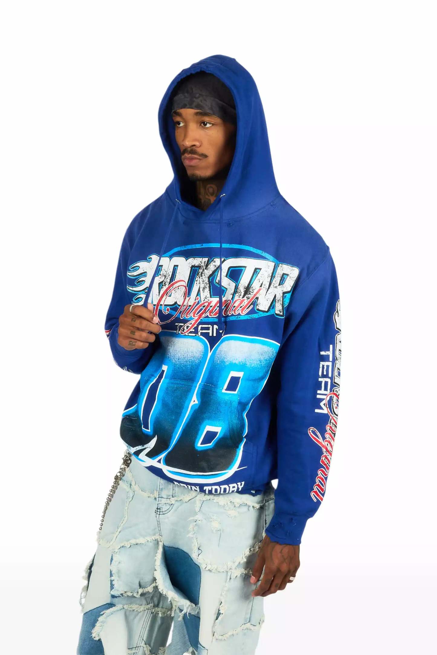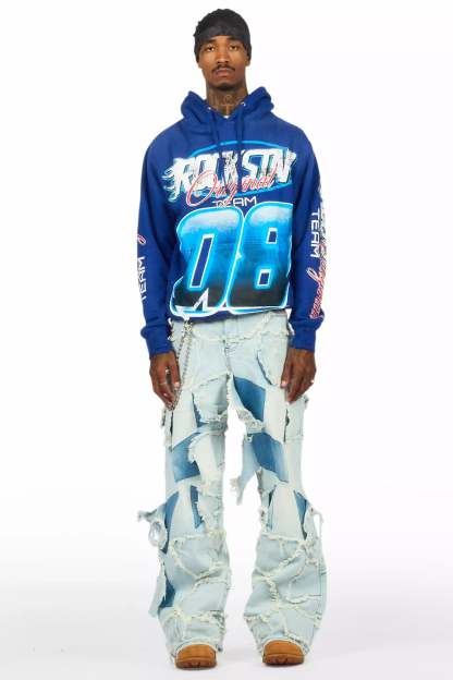 An urban streetwear hoodie for men in royal blue. Designed with organic cotton and custom detailing for a must-cop staple layer.