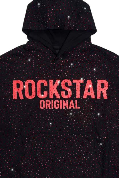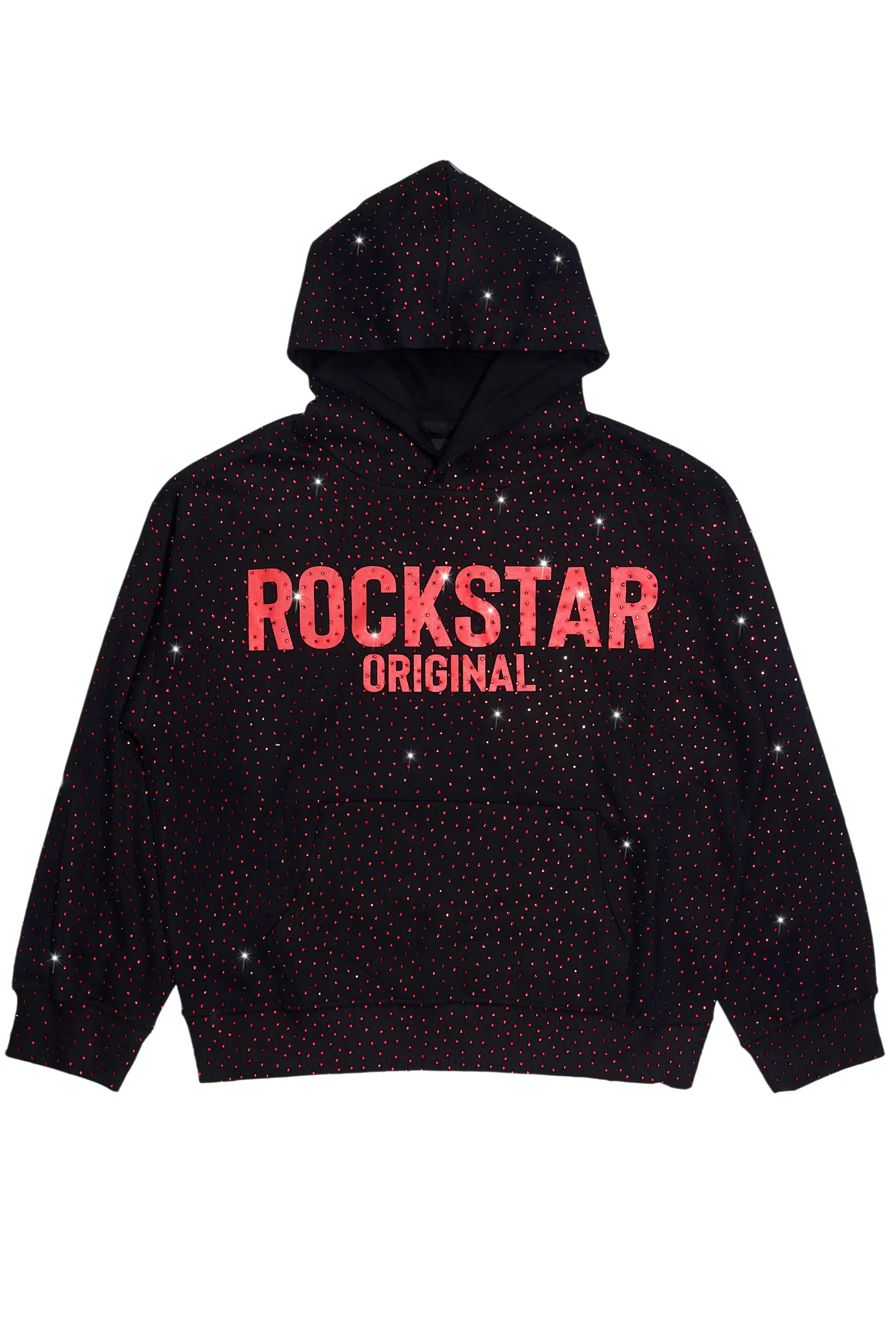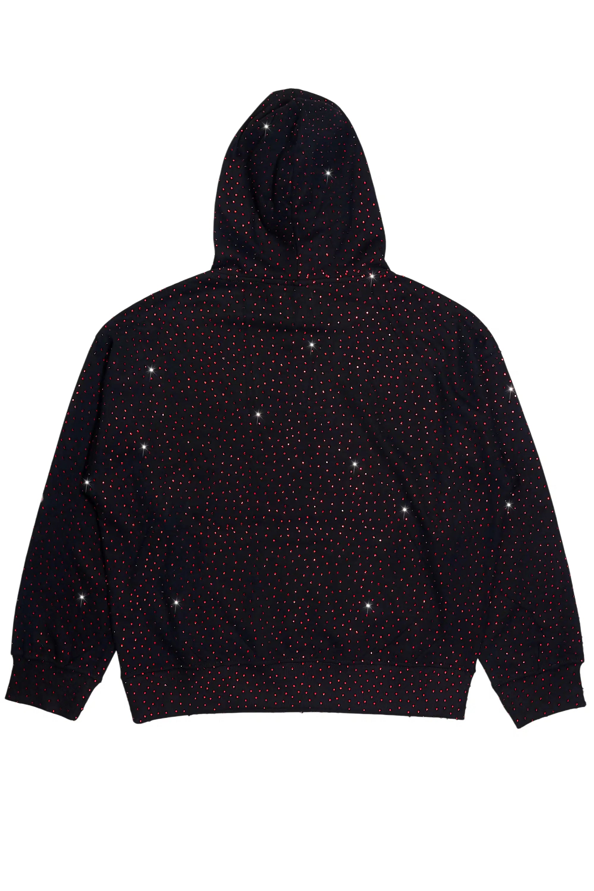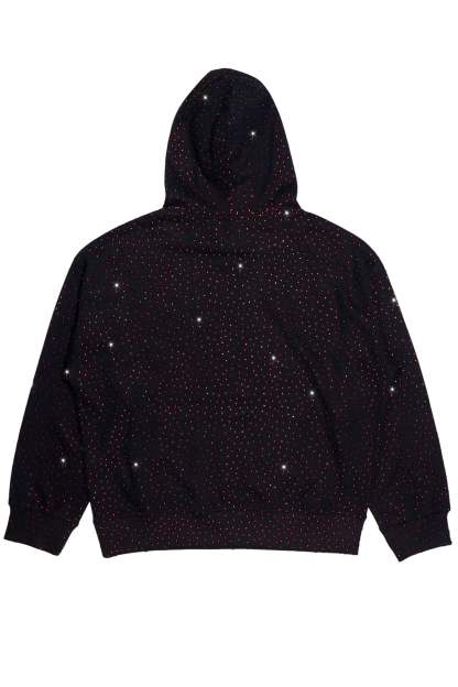 An urban hoodie for men in black. Designed with ultra soft organic cotton and custom rhinestone detailing for a must-cop streetwear style.
