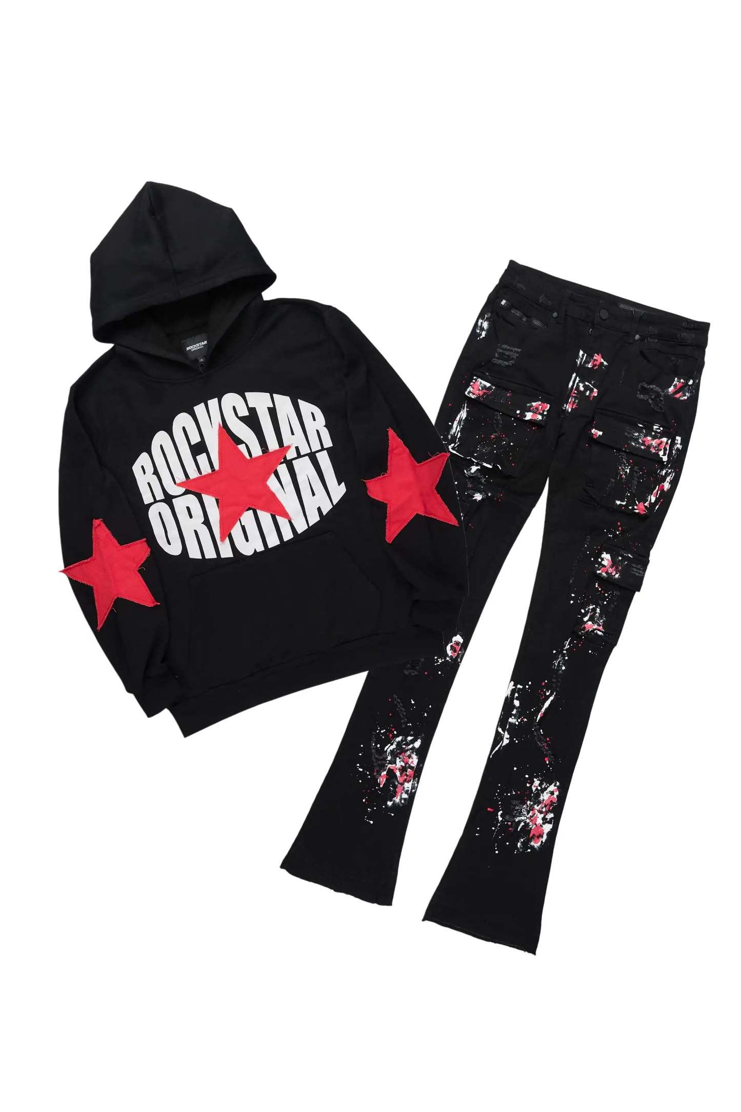 States 2.0 Black/Black Hoodie/Stacked Flare Jean Set