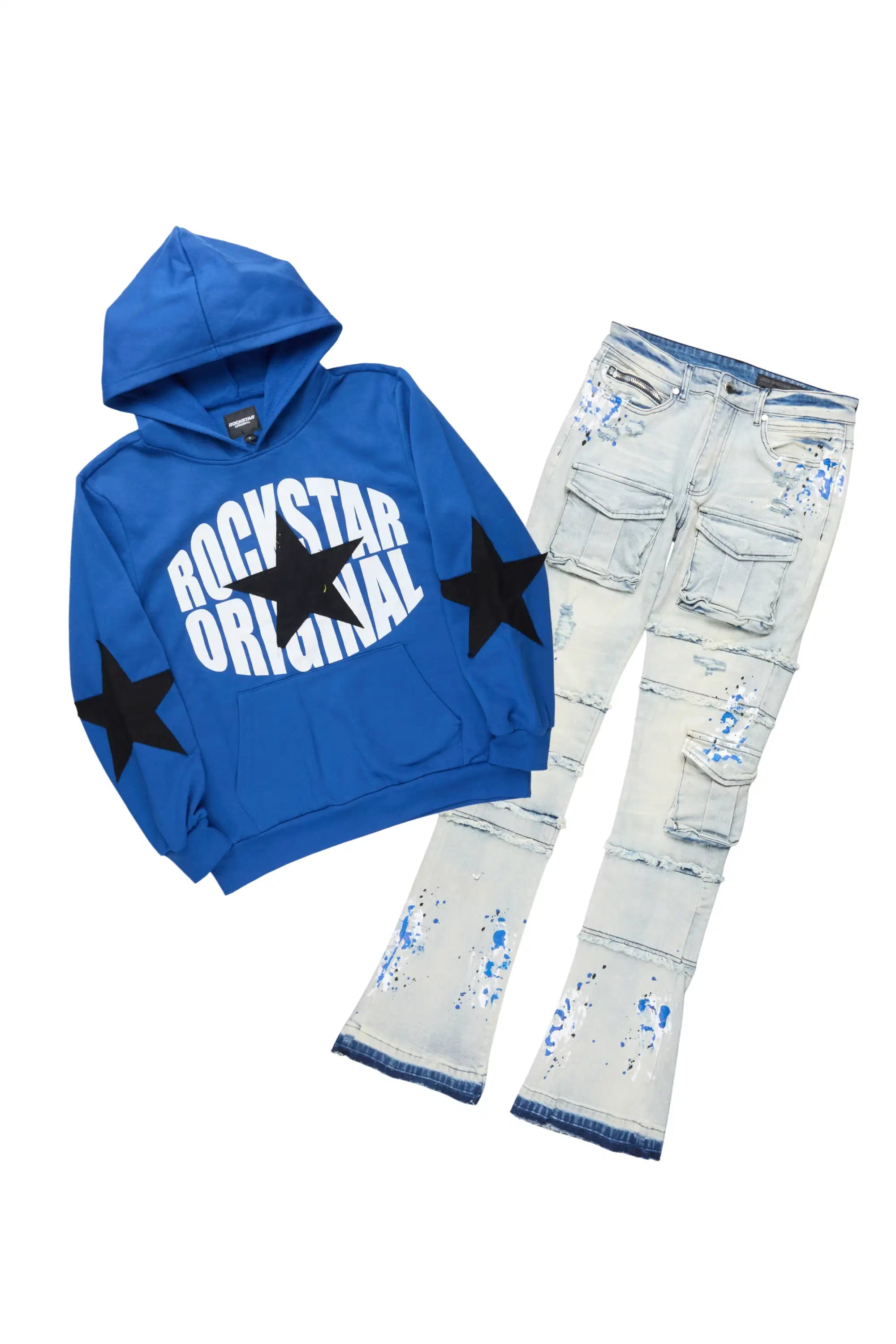 States 2.0 Royal/Light Blue Hoodie/Stacked Flare Jean Set