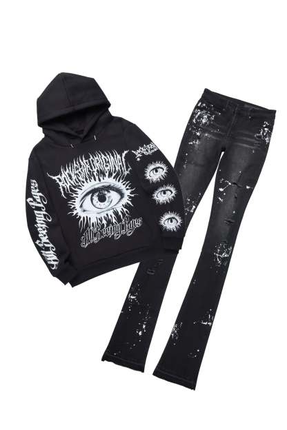 All Seeing Eyes Black/Black Hoodie/Super Stacked Flare Jean Set