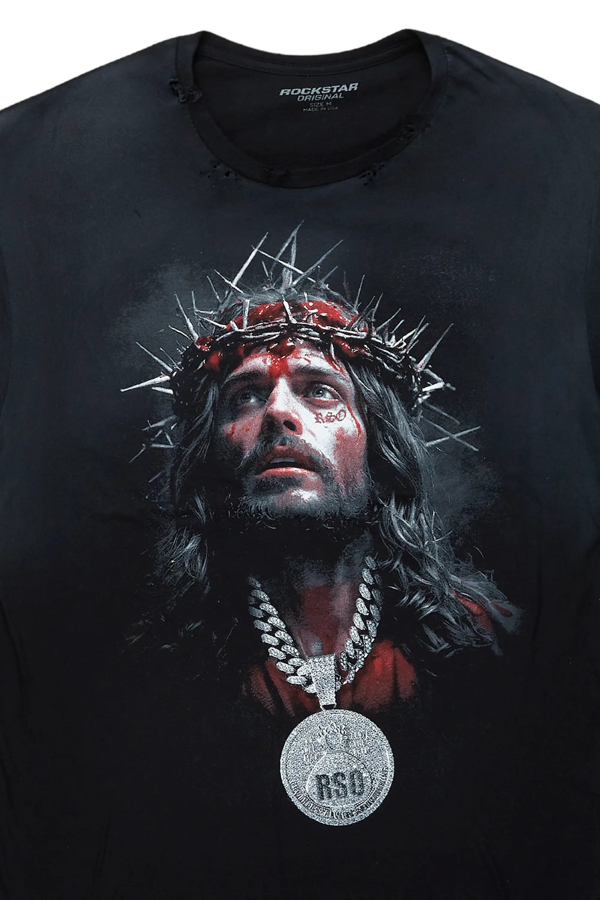 An urban streetwear t-shirt for men in black. Designed with organic cotton and custom detailing for a must-cop staple tee.