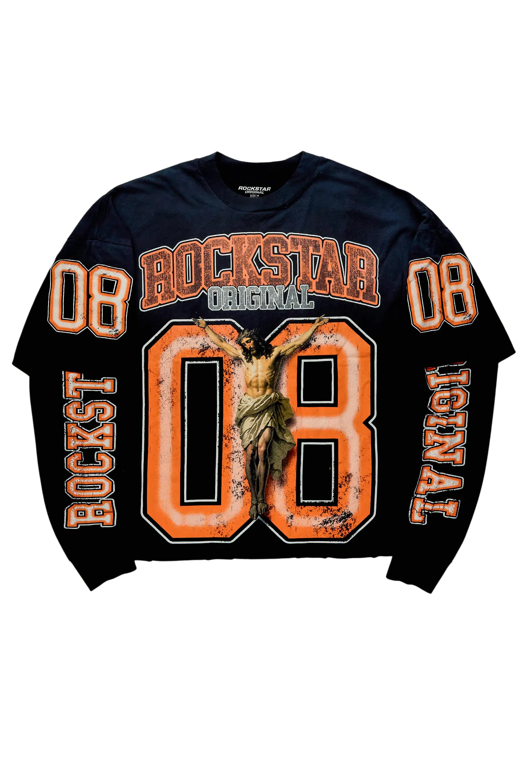 An urban streetwear Double Layer long sleeve tee for men in black. Designed with a worn-in wash and custom detailing for a must-cop staple piece tee.