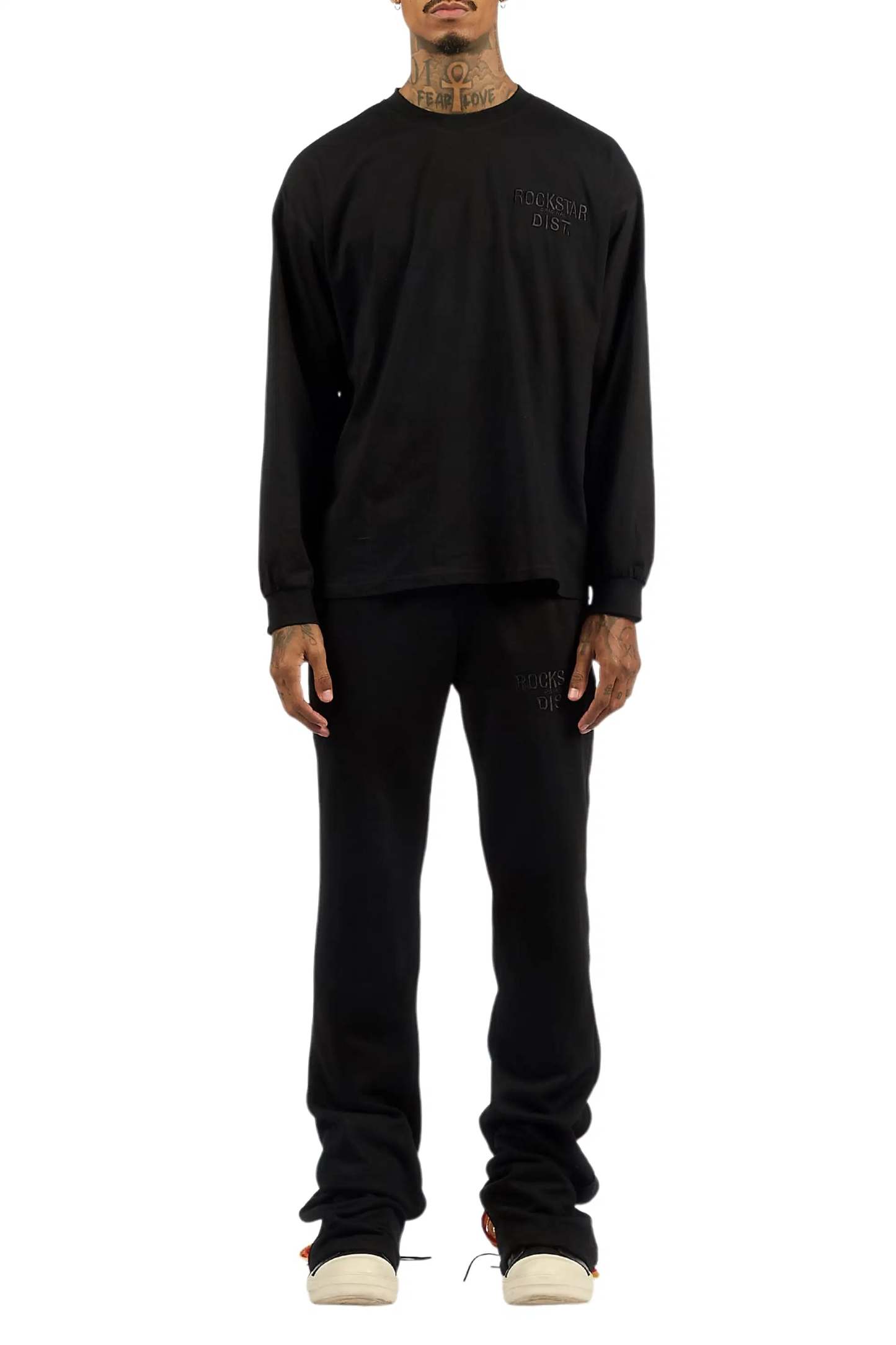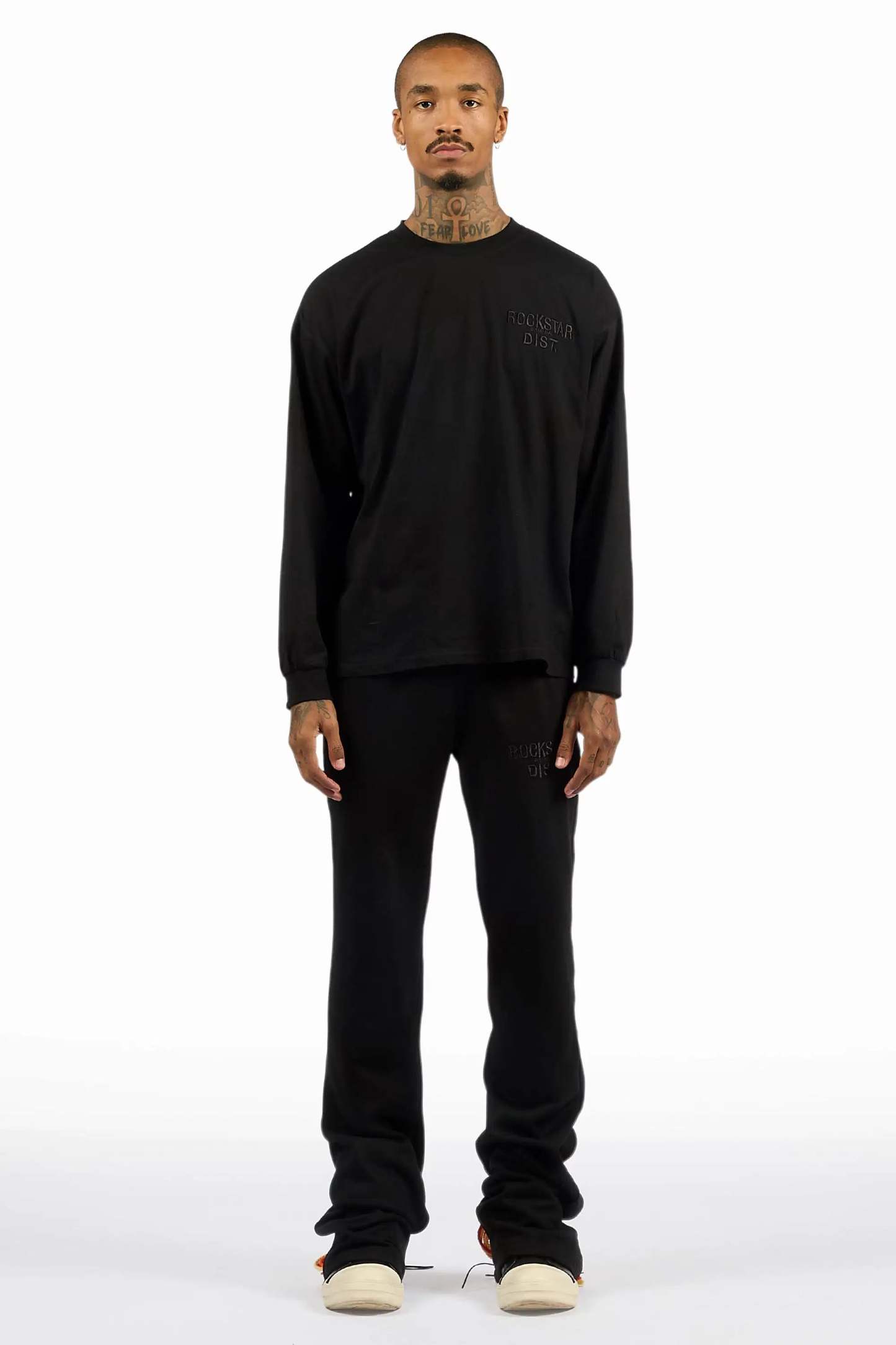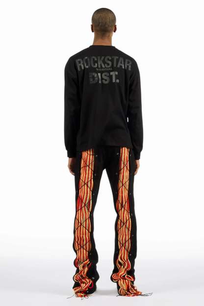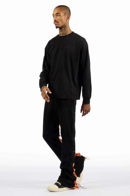 Antal Black Long Sleeve T-Shirt/Baggy Stacked Track Set
