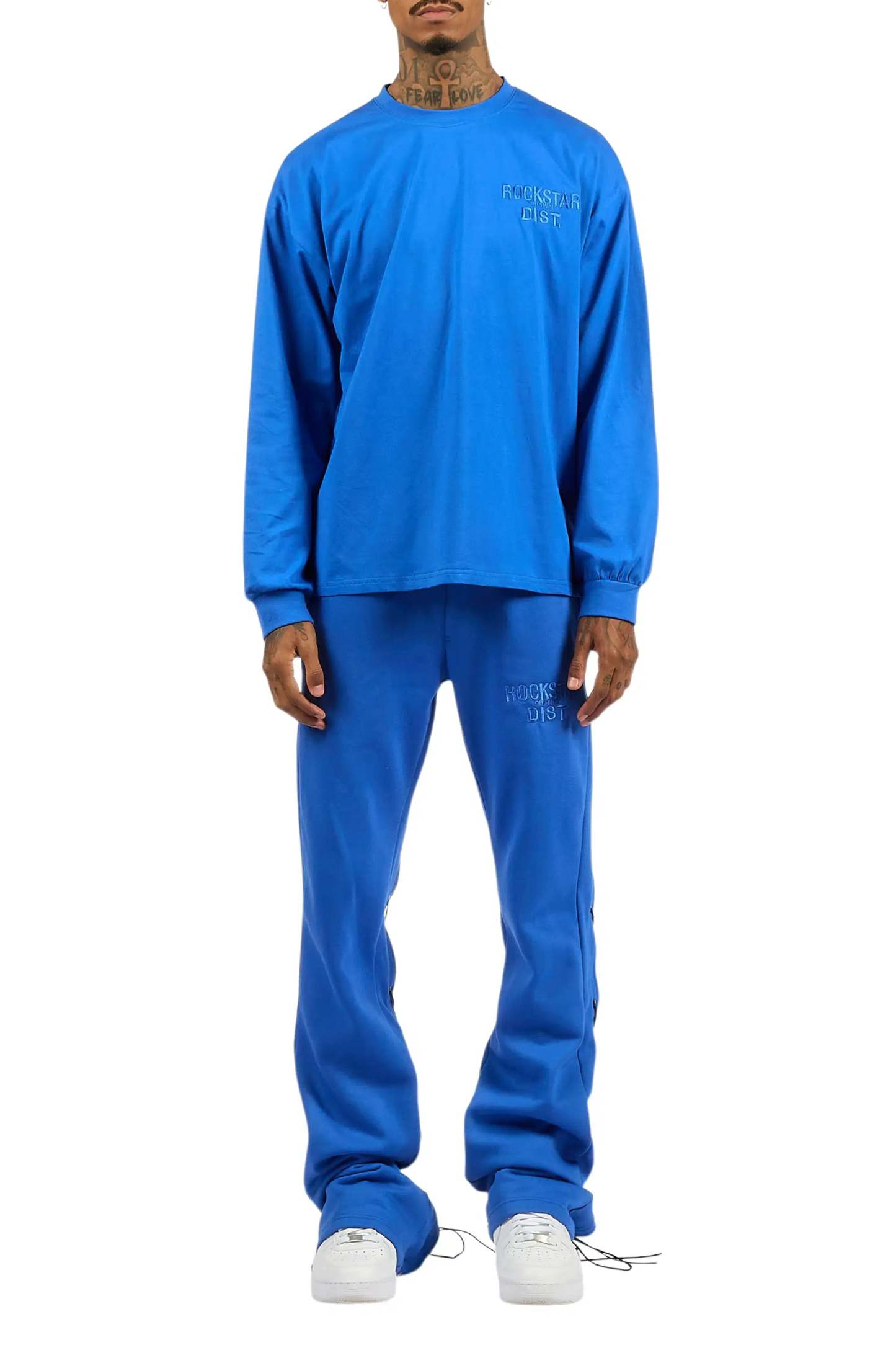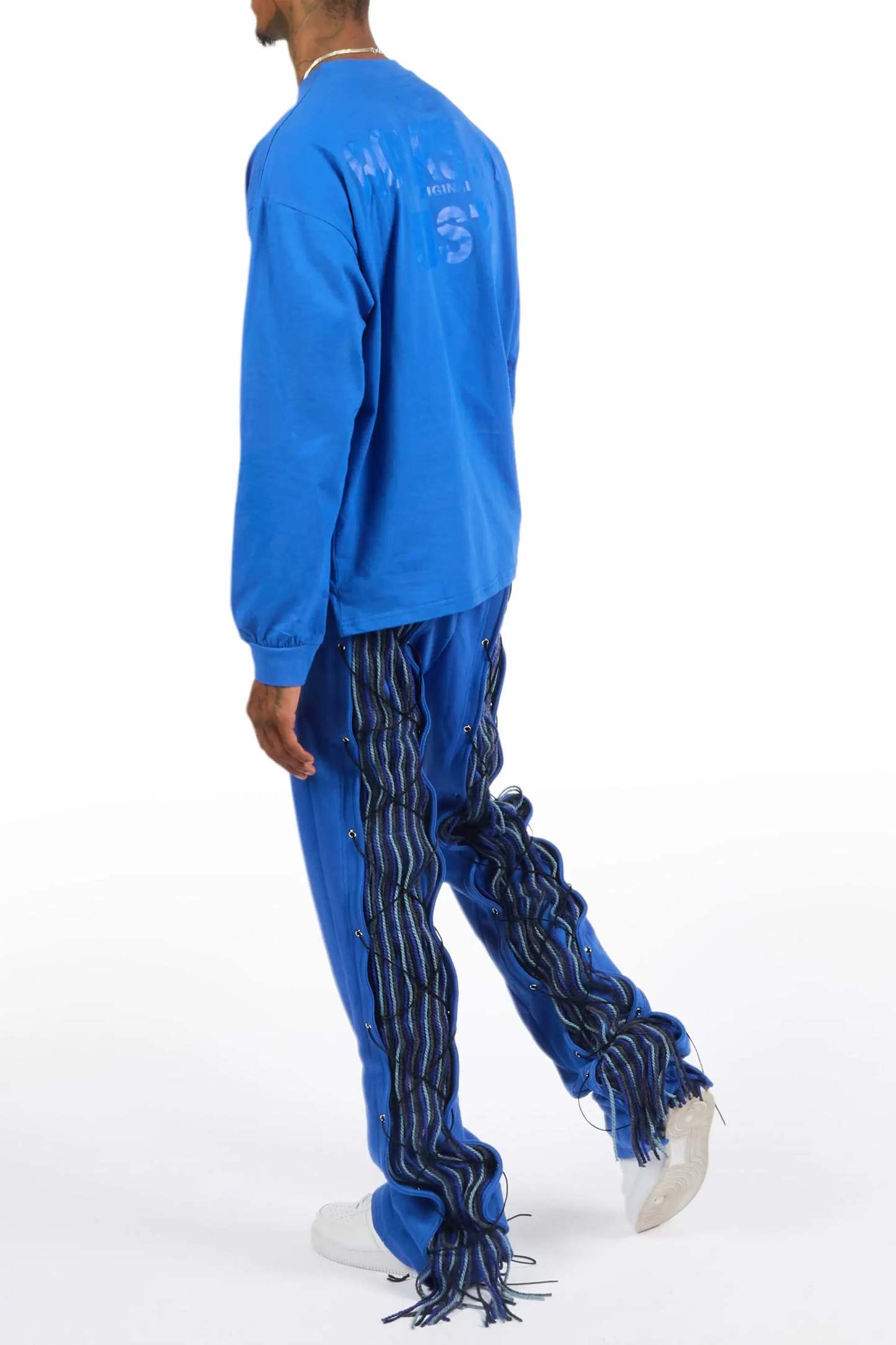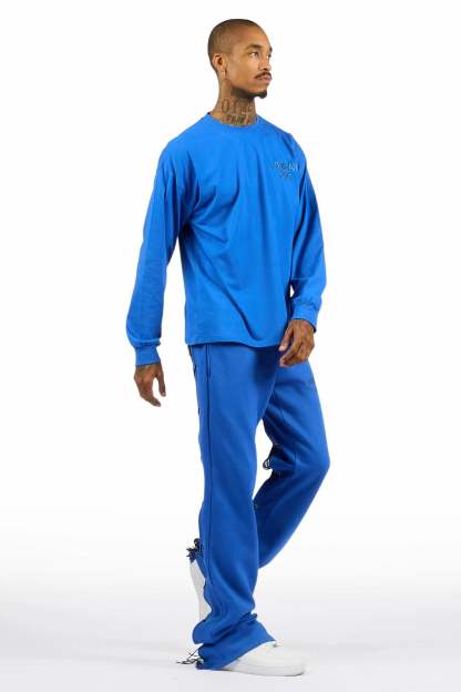 Antal Royal Blue Long Sleeve T-Shirt/Baggy Stacked Track Set